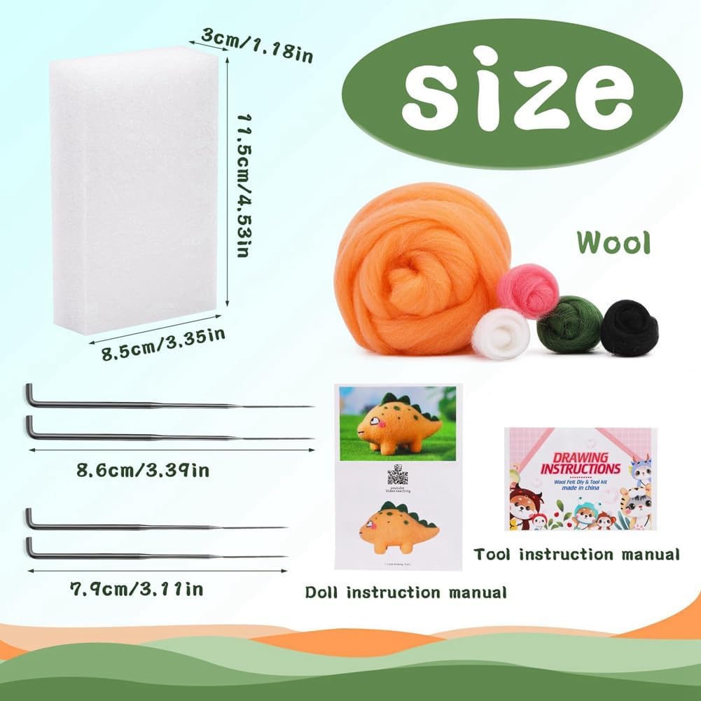 Materiali premium: scegliamo lana naturale di alta qualità, che non crea grumi, sicura ed ecologica, adatta a tutti. I feltrini in lana sono costituiti da tre strati di spugna, che sono meno soggetti a collassare rispetto ai normali feltrini. Riutilizzabile, ecologico e facile da usare e trasportare. Adatto ai principianti: lo Kit Needle Punch contiene abbastanza lana per seguire i passaggi per realizzare una simpatica bambola di dinosauro. La bambola ha un manuale specifico con di produzione complete, semplice da utilizzare e l'introduzione è e dettagliata. Ottimo per principianti e amanti del DIY. Forniture sicure per l'infeltrimento: gli strumenti in feltro di lana includono tutti gli accessori necessari per realizzare bambole, come cuscinetti in spugna o quantità di , quindi non devi preoccuparti di rimanere . Il cuscinetto in spugna aiuta a proteggere l'ago viene punto. Il kit in feltro di lana include: abbastanza lana, manuale di istruzioni x 1, sottili x 1, x 1, cuscinetto in schiuma bianca (11,5 cm x 8,5 cm) x 1, x 1, diviso x 1, a 9 punte x 1. Attività artigianali interessanti: la partecipazione ad attività artigianali in feltro di lana è un buon modo per rafforzare il rapporto tra amici e parenti e alleviare lo stress. Adatto agli amanti del DIY di tutte le età, il feltro di lana è un per e gli amici.