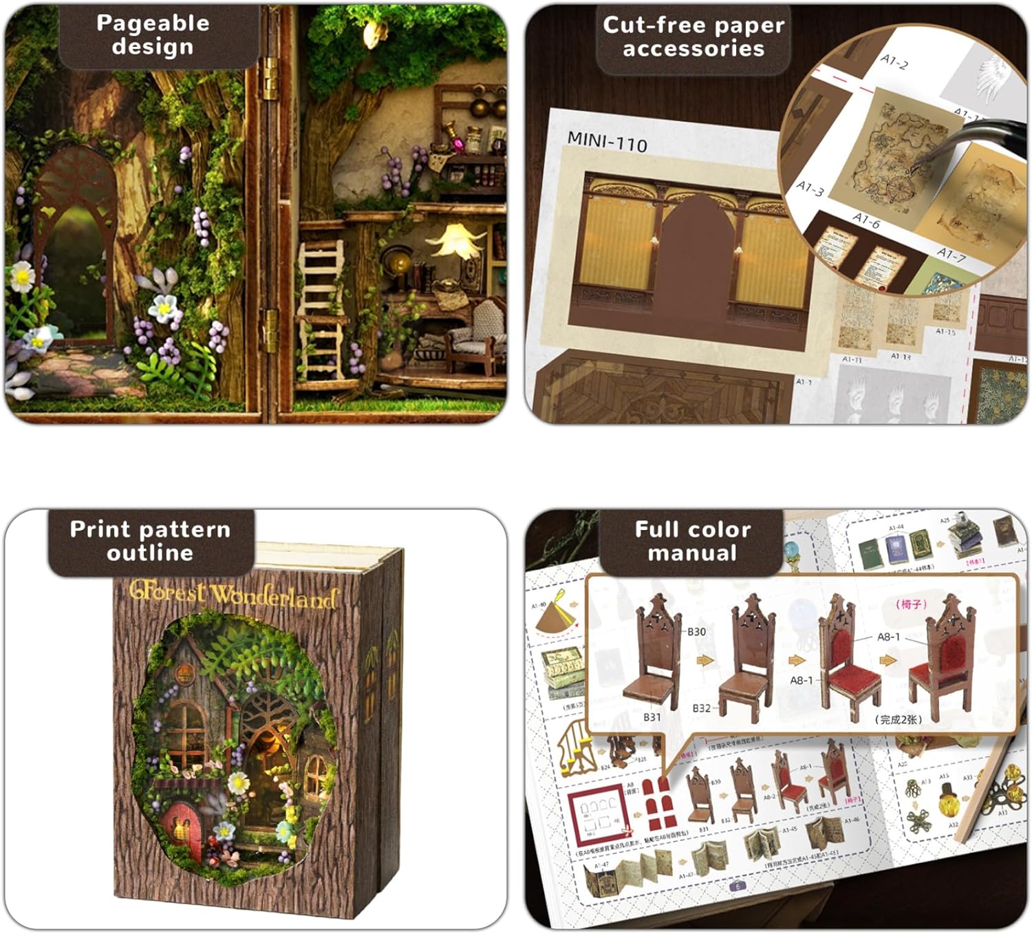 Oggetto da collezione: questo kit di costruzione Mini House è un oggetto da collezione che costituisce una fantastica aggiunta a qualsiasi collezione di case in miniatura. È un pezzo unico e affascinante che si distinguerà tra gli altri tuoi oggetti da collezione. Funzione di illuminazione: questo kit di costruzione Mini House è dotato di una funzione di illuminazione che aggiunge un ulteriore tocco di mistero alla tua creazione. Le luci a LED creano un'atmosfera calda e accogliente, rendendola un'aggiunta perfetta alla decorazione del tavolo o della libreria. DIVERTIMENTO FAI DA TE: la natura fai-da-te di questo minuscolo kit di costruzione di case offre un'attività divertente e coinvolgente per bambini e adulti. Il kit non è assemblabile e ti consente di costruire e personalizzare la tua casa in miniatura. È un ottimo modo per esercitare la tua creatività e immaginazione mentre ti godi un hobby rilassante e gratificante. Regalo perfetto: questo mini kit di costruzione di case è un regalo perfetto per bambini e adulti che amano i progetti fai-da-te e le case in miniatura. È un regalo premuroso e unico che fornirà ore di divertimento e creatività. Il Paese delle Meraviglie della Foresta: questo mini kit di costruzione di una casa presenta un tema del paese delle meraviglie della foresta, con dettagli intricati ed elementi stravaganti. Il kit ti permette di creare un mondo in miniatura magico e incantevole che ti trasporterà in una foresta da favola.