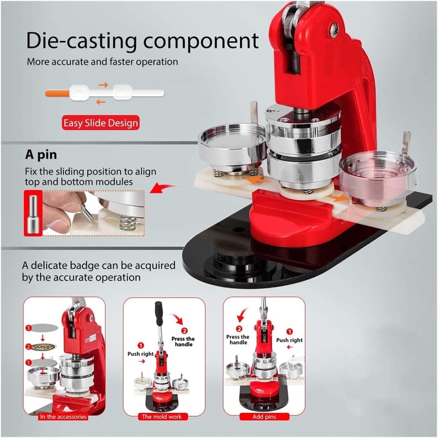 Materiale principale: Metallo Colore: Rosso Peso: 4 kg Materiale dello stampo per bottoni: Metallo + piastra di base in ABS Colore dello stampo per bottoni: Stampo argento + piastra di base bianca