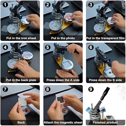 Scatena la creatività con il nostro creatore di magneti per frigo fai-da-te, ideale per realizzare regali di Natale e compleanno unici. Trasforma le tue foto preferite in calamite da frigo personalizzate o in qualsiasi superficie magnetica per catturare i momenti più belli della vita. Realizzato in acciaio di alta qualità e lega di alluminio, il nostro porta badge in metallo è dotato di una robusta piastra di base e binari di guida migliorati per una maggiore stabilità e un tasso di successo più elevato durante la creazione di badge. Progettato con un'impugnatura ergonomica, il nostro produttore di badge garantisce una presa comoda, rendendo il processo di creazione dei badge più efficiente e riducendo l'affaticamento della mano, per un'esperienza creativa più fluida. Il kit della macchina per magneti fotografici include tutto l'essenziale: 1 macchina per magneti da frigorifero, 1 tagliacarte e 100 materiali, fornendo tutto il necessario per iniziare a creare senza preoccuparsi di rimanere senza scorte. Scopri infinite possibilità creative con la nostra macchina per badge rotativa personalizzata, perfetta per conservare foto, decorazioni, badge nuziali e lavori manuali in classe per promuovere la presentazione dei tuoi design unici.