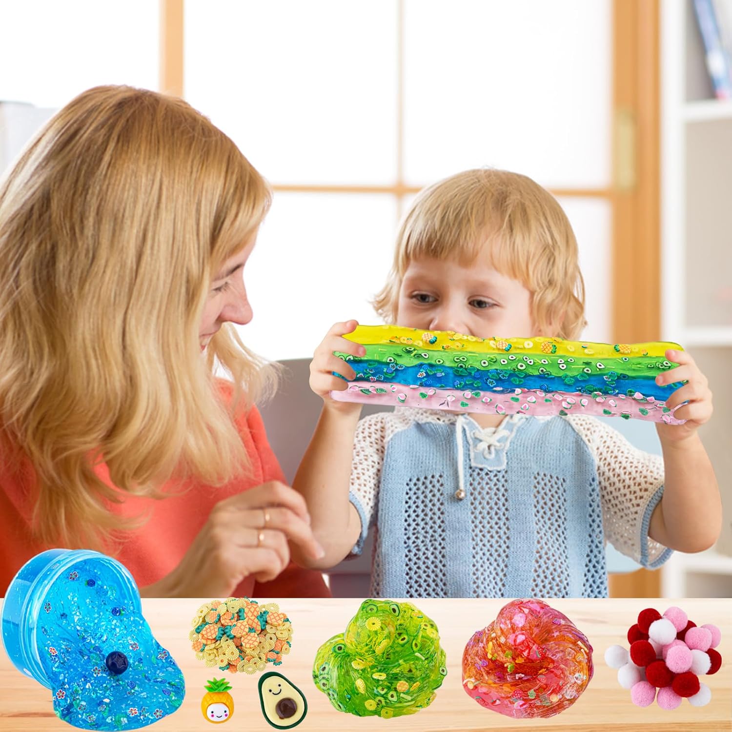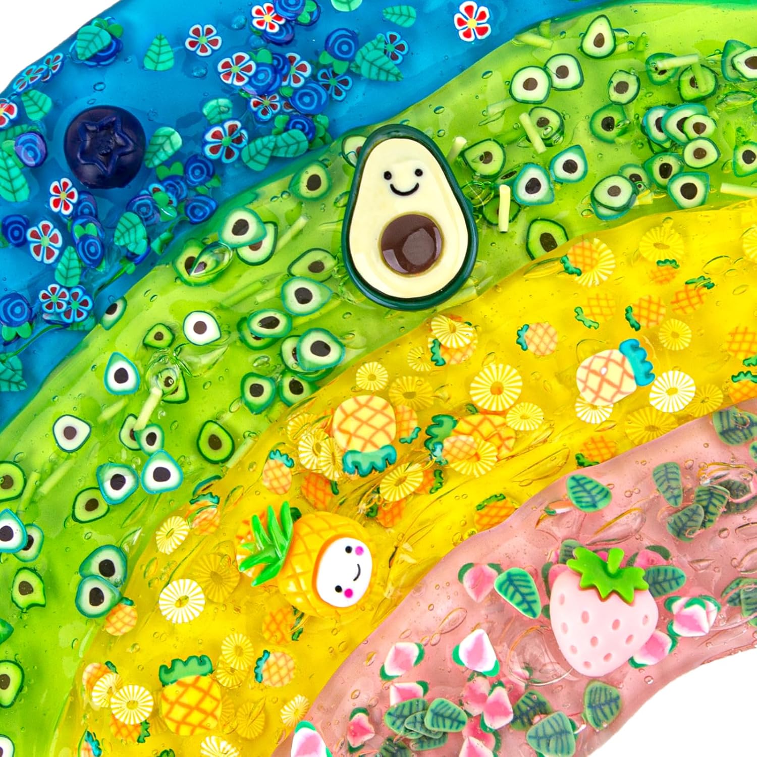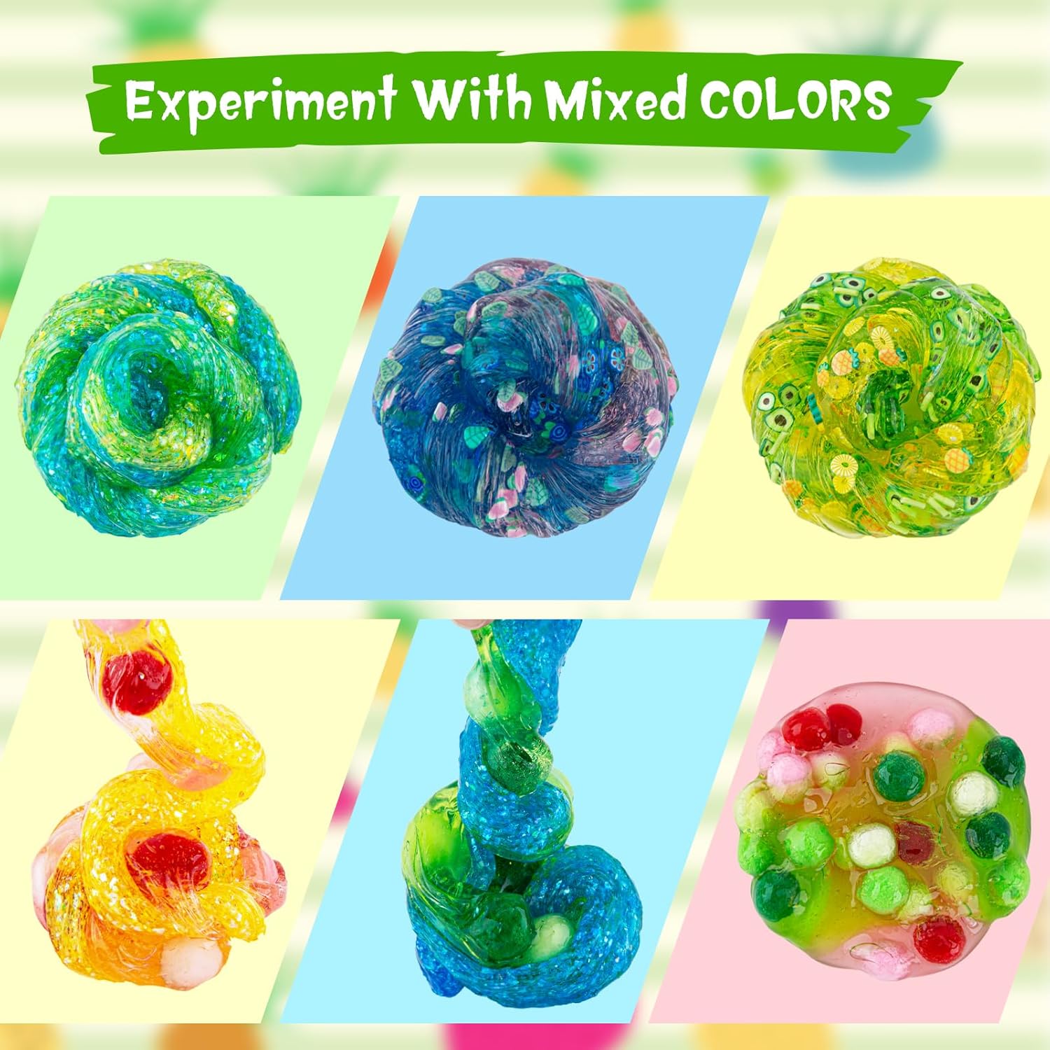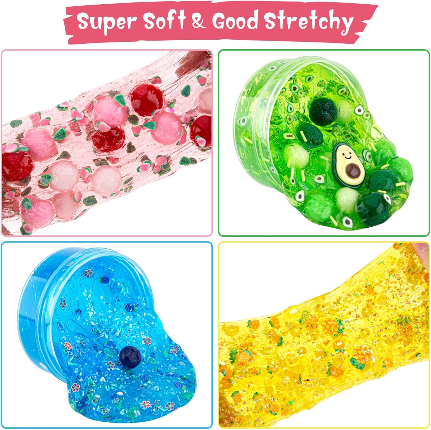 Colori vivaci e vari componenti aggiuntivi: questo kit di melma alla frutta include 4 colori di slime trasparente e 12 tipi di componenti aggiuntivi per melma. Ogni barattolo contiene 100 ml di melma, per un totale di 400 ml. Sia che tu voglia fare uno slime croccante o sperimentare con diversi colori, questo kit ha tutto il necessario per creare le tue creazioni uniche di melma. Slime adatto ai bambini: realizzato con ingredienti di alta qualità, questo kit trasparente per slime è sicuro per bambini e adulti. Nota: si raccomanda la supervisione di un adulto per bambini sotto i 3 anni. NON mangiare! Super morbida e buona elasticità: lo slime prefabbricato di Okaybee offre una consistenza unica super morbida al tatto. Con la sua natura facile da usare, puoi immergerti subito e iniziare a goderti la bontà morbida ed elastica. Giocattoli sensoriali perfetti: se stai cercando di alleviare lo stress o migliorare il tuo gioco sensoriale, questo kit per slime è perfetto per te. Guarda come la melma si allunga, squishes e trasuda attraverso le dita, fornendo infinite ore di intrattenimento. Ottimo regalo per bambini: questo kit da 4 pezzi per melma alla frutta è un ottimo regalo di compleanno per ragazze e ragazzi di età compresa tra 6, 7, 8, 9, 10, 11, 12 anni. Bomboniere melma, scuola o hallowmas anche calza di Natale.