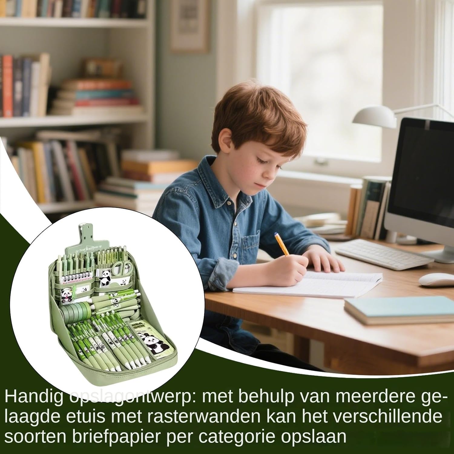 Vari articoli di cancelleria: progettati per soddisfare le esigenze di studio e creative, offre una gamma di strumenti come Panda Penne e Corrections Tapes in una configurazione meticolosamente funzionale Cerniere e passanti lisci: progettato con cerniere lisce e robusti passanti in cotone per una maggiore resistenza e comfort, completato da un layout a più scomparti con partizioni in rete che si trovano sulla conservazione della cancelleria, pur mantenendo un aspetto attraente e funzionale Ispira la personalizzazione: gli adesivi con design panda partecipano agli utenti a decorare quaderni e articoli di cancelleria, promuovendo la creatività artistica attraverso il divertimento interattivo Design di scrittura funzionale: ideale per prendere appunti, journaling e progetti artistici, include penne panda con un flusso di inchiostro fluido, oltre agli evidenziatori, per ispirare divertimento e produttività in più scenari Presente festosa e memorabile: una collezione di articoli scolastici eleganti e portatili, creata per trasmettere auguri calorosi in momenti festivi come compleanni o feste dei bambini, rendendolo sia pratico che delizioso per i bambini di tutte le età