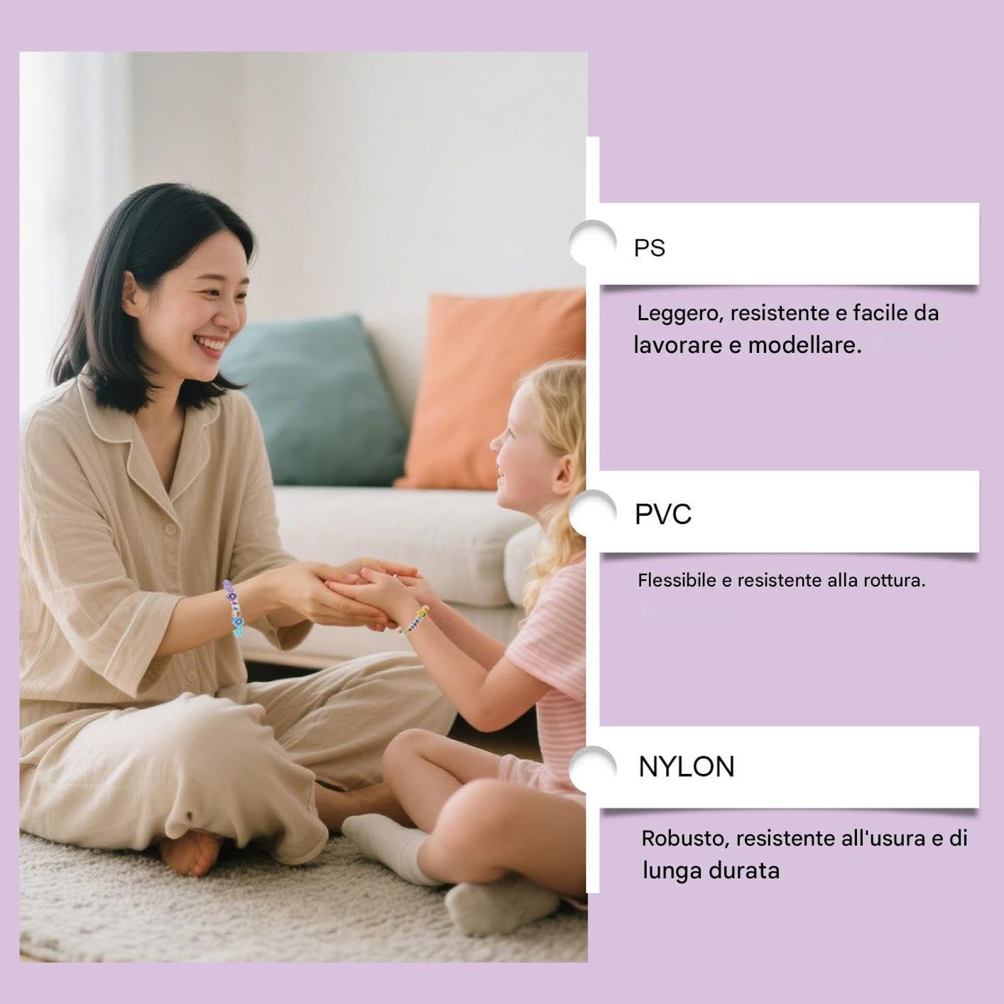 Varietà Creativa: Con 16 motivi artistici di perle, questo kit supporta l'esplorazione immaginativa di schemi cromatici, consentendo la creazione di braccialetti artigianali perfetti come regali o aggiunte stilistiche agli outfit quotidiani utilizzando 8 tonalità di filo radianti e decorativi assortiti Istruzioni passo-passo: Questo kit fornisce un'esperienza interattiva che potenzia le capacità motorie e intrattiene i bambini per ore, ideale per giochi creativi in ambienti interni o riunioni familiari Attività senza Rischi: La struttura liscia e i materiali atossici garantiscono un inserimento flessibile delle perline senza causare , ideale per famiglie che desiderano condividere momenti creativi con fiducia e serenità Design ordinato: Grazie ai suoi scomparti stratificati, il kit fornisce una soluzione di storage portatile che mantiene tutti i materiali ben suddivisi e accessibili, promuovendo ordine e convenienza ovunque nasca l'ispirazione creativa Momenti Creativi in Famiglia: Il kit per braccialetti con perline favorisce la comunicazione familiare incoraggiando la creazione collaborativa di , creando momenti indimenticabili e rafforzando le relazioni genitore-figlio durante la combinazione di colori e forme nel processo creativo condiviso