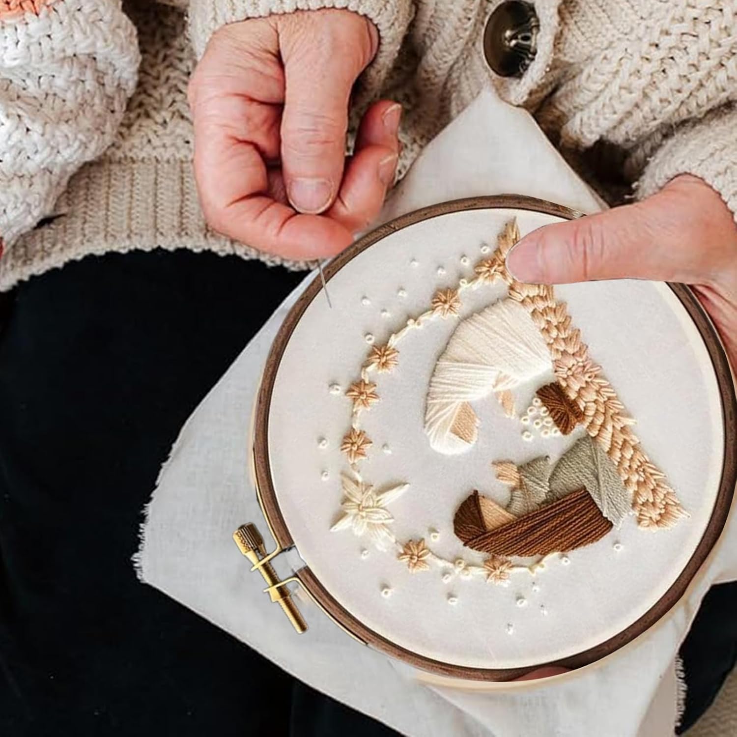 Incorpora Sviluppo di Abilità Creative: Questo kit di ricamo cristiano stimola l'acquisizione di competenze attraverso attività che potenziano il coordinamento occhio-mano e la motricità fine, offrendo un'esperienza artigianale appagante e formativa Qualità senza : La struttura in legno massello contribuisce a un design longevo, mentre tessuto e filati premium assicurano durabilità resistente in ogni kit ricamo con il nostro kit ricamo natale Disegni Natalizi Iconici: Questo kit ricamo cristiano cattura magnificamente lo spirito festivo con personaggi natalizi iconici e figure a tema Gesù, per progetti artigianali celebrativi natalizi che ispirano fede e gioia durante la stagione delle festività Decorazione Flessibile: Eccellente per diverse stanze inclusa la nursery, la cameretta dei bambini o il soggiorno, funziona come arte wall per pareti, abbellimento per scaffali oppure come speciale calza natalizia tematica cristiana per o ingresso per Principianti: Kit ricamo facile include modelli semplici e istruzioni chiare, assicurando un'esperienza creativa senza intoppi, ottimo per chi è nuovo al ricamo
