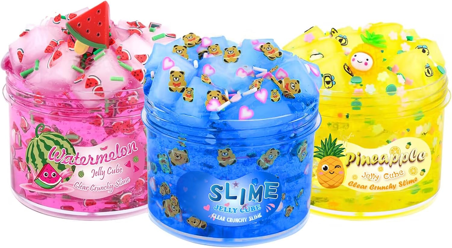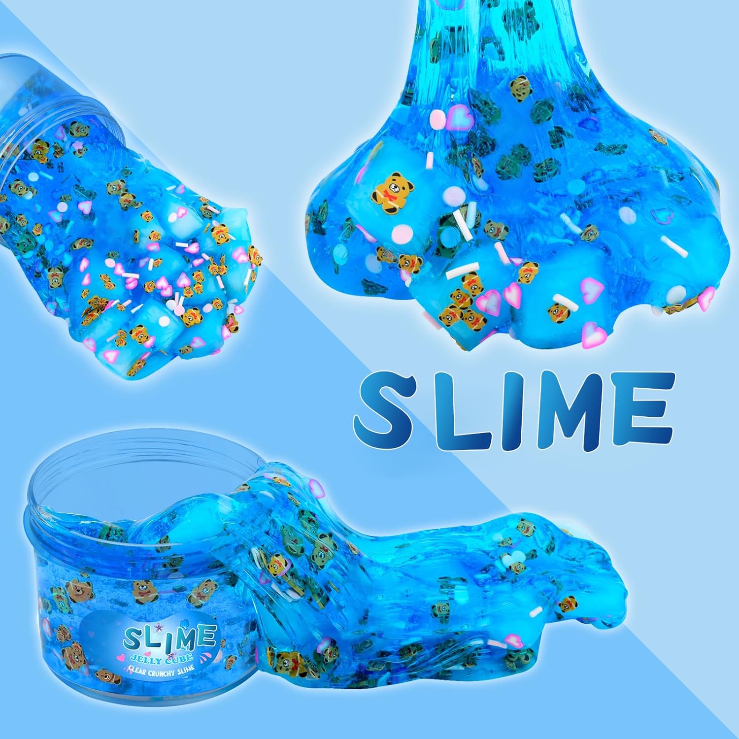 TEXTURA UNICA E SENSAZIONE DIVERTENTE: Con particelle squishy simili a cubetti di gelatina, il Keemanman Clear Slime Kit offre una texture più interessante e stimolante rispetto allo slime tradizionale. Quando lo tieni, puoi sentire una sensazione fresca, morbida ed elastica, simile a schiacciare delicatamente un pezzo di gelatina. Inoltre, questo slime ha una leggera adesività, rendendolo facile da afferrare e modellare, perfetto per attività rilassanti come schiacciare, impastare, pizzicare e tirare. SICURO E AFFIDABILE: Il nostro kit di slime è realizzato con la sicurezza come priorità, utilizzando materiali non tossici e ipoallergenici che sono stati ampiamente testati e conformi agli standard di sicurezza. Questo assicura un'esperienza di gioco senza preoccupazioni per bambini e genitori, rendendolo adatto a tutte le età, mentre offre tranquillità ai genitori sapendo che i loro bambini stanno utilizzando un prodotto sicuro e affidabile. LIBERA LA TUA CREATIVITÀ: Questo kit incoraggia i bambini a creare e progettare liberamente, migliorando non solo le loro capacità manuali, ma anche permettendo loro di esprimere la loro immaginazione e creatività infinita. Con il Keemanman Slime Kit, i bambini possono creare le proprie opere uniche e personalizzate di slime, garantendo ore di divertimento e intrattenimento, stimolando la loro creatività e curiosità. REGALO PERFETTO: Il Keemanman Slime Kit è una scelta regalo eccellente per i bambini che amano i giocattoli tattili e adorano creare qualcosa di nuovo. È perfetto per feste di compleanno, Natale, Pasqua o qualsiasi altra occasione speciale. Questo giocattolo non è solo divertente ma anche educativo, il che significa che è un regalo che anche i genitori apprezzeranno. COME CURARE IL TUO SLIME: Il slime può diventare particolarmente rigido a causa del freddo o se non si scioglie abbastanza con il caldo. Puoi usare lotion, gel igienizzante per mani, gel per capelli, o riscaldarlo nel microonde per qualche secondo per risolvere questo problema. E non dimenticare di chiuderlo di nuovo nel barattolo o in un contenitore ermetico per evitare che si secchi. Se il slime diventa appiccicoso, basta aggiungere un po' di bicarbonato di sodio per recuperarlo.