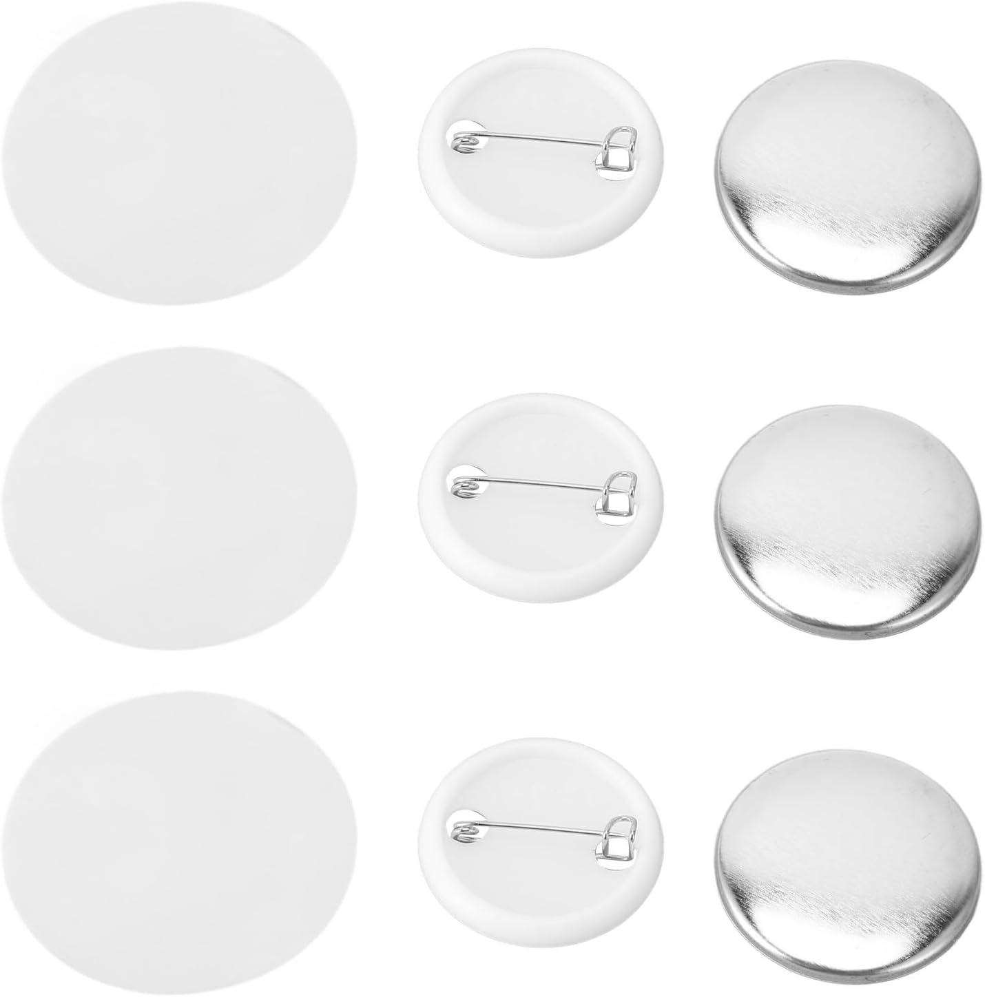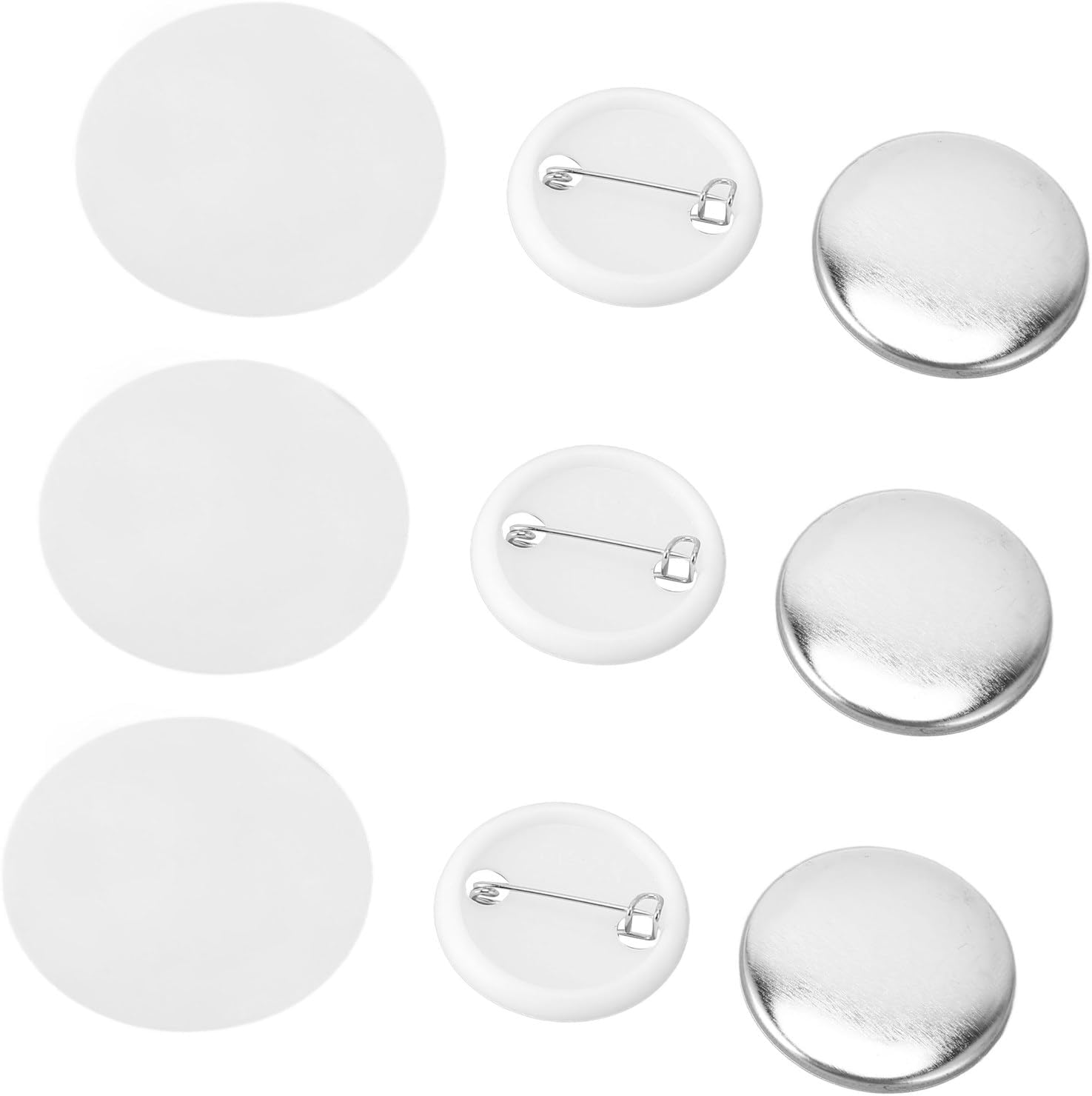 Fai da te: queste parti di bottoni rotondi per badge sono adatte per macchine per la produzione di bottoni, puoi fare il fai-da-te con la tua creatività e immaginazione. Applicazioni: il kit badge con spilla è molto adatto per eventi scolastici, badge nominativi, souvenir, regali di compleanno personalizzati, regali di Natale. Può essere utilizzato per abbigliamento, zaini, cappelli, ecc. Perno posteriore in metallo: la parte posteriore è progettata con un perno metallico che può essere fissato a vestiti o borse e utilizzato ripetutamente. Protezione dalla ruggine: la base in lamiera stagnata e in plastica può prevenire efficacemente la formazione di ruggine e garantire l'uso e la conservazione a lungo termine del tuo lavoro. 100 set: riceverai 100 set di accessori per la creazione di bottoni, comprese coperture in metallo, basi in plastica e pellicole protettive trasparenti.