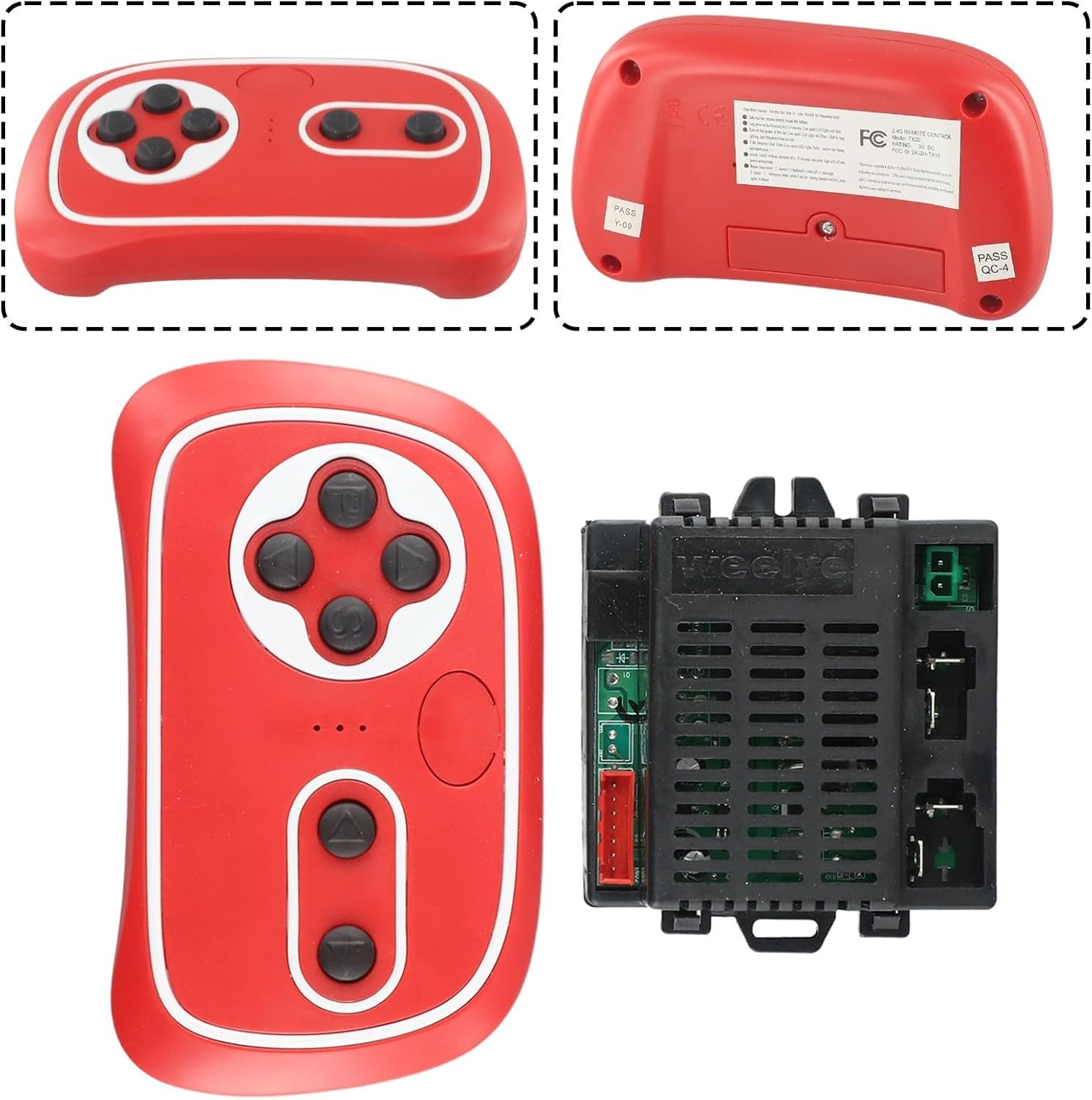 Trasmettitore per auto elettriche: il ricevitore Weelye RX57 6 V 12 V CE/FCC è progettato specificamente per veicoli elettrici. È dotato di un trasmettitore 4G che consente un facile controllo e navigazione. Compatibile con vari modelli: questa scatola di controllo è compatibile con più modelli, tra cui TX10 RC, TX20 RC, ricevitore RX57 6V, ricevitore RX57 12V, TX10 e RX57 6V, TX20 e RX57 6V, TX10 e RX57 12V, TX20 e RX57 12V. Offre versatilità e flessibilità di utilizzo. Ampia gamma di tensione: con una gamma di tensione di 6-12 V, questa scatola di controllo è adatta per diverse auto elettriche. Fornisce prestazioni stabili e affidabili in un'ampia gamma di requisiti di tensione. Facile installazione e configurazione: installare la scatola di controllo Weelye RX57 è un gioco da ragazzi. aprire l'auto elettrica e controllare la casella di controllo. Se corrisponde all'aspetto della tua scatola di controllo, è compatibile. Il controllo 4G garantisce una connessione senza soluzione di continuità tra trasmettitore e ricevitore. Materiale: realizzata con materiali di alta qualità, questa scatola di controllo garantisce durata e longevità. È costruito per resistere ai rigori dell'uso quotidiano e fornisce prestazioni affidabili che durano.