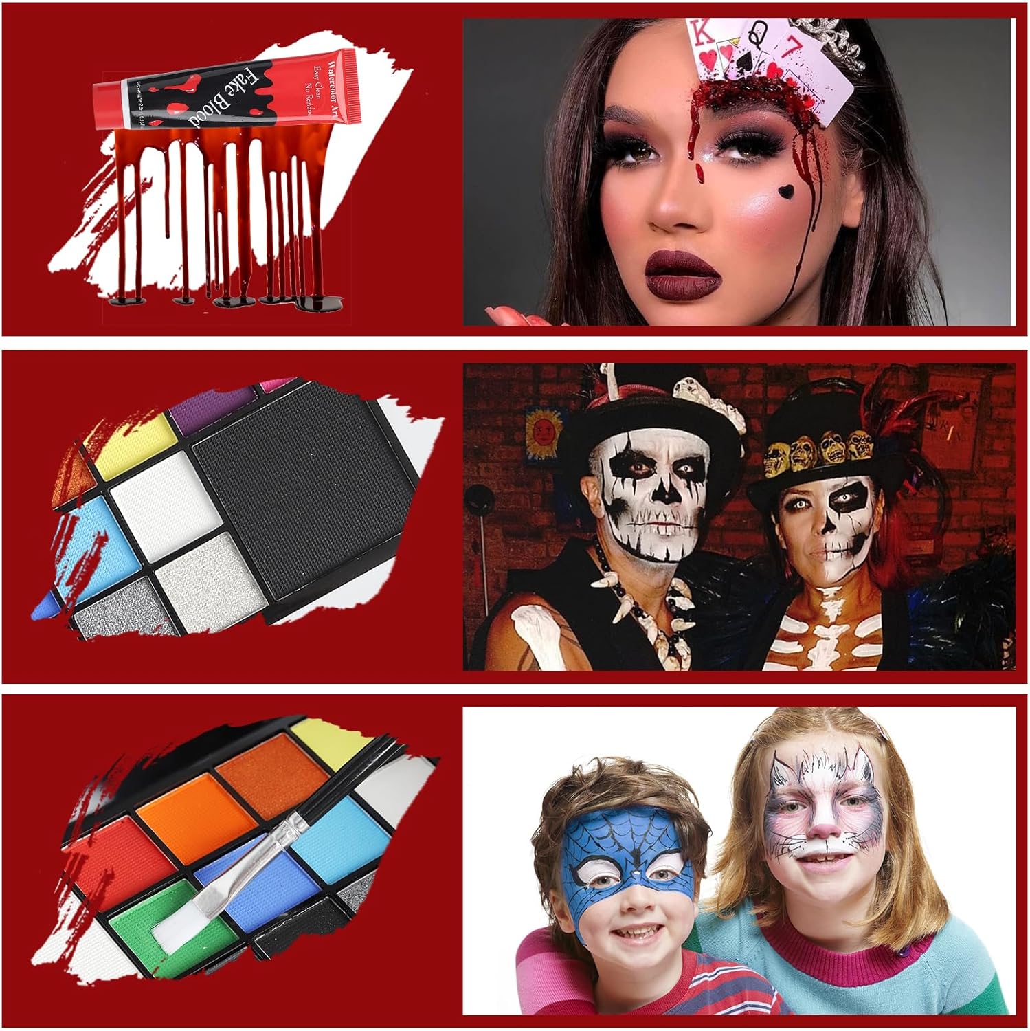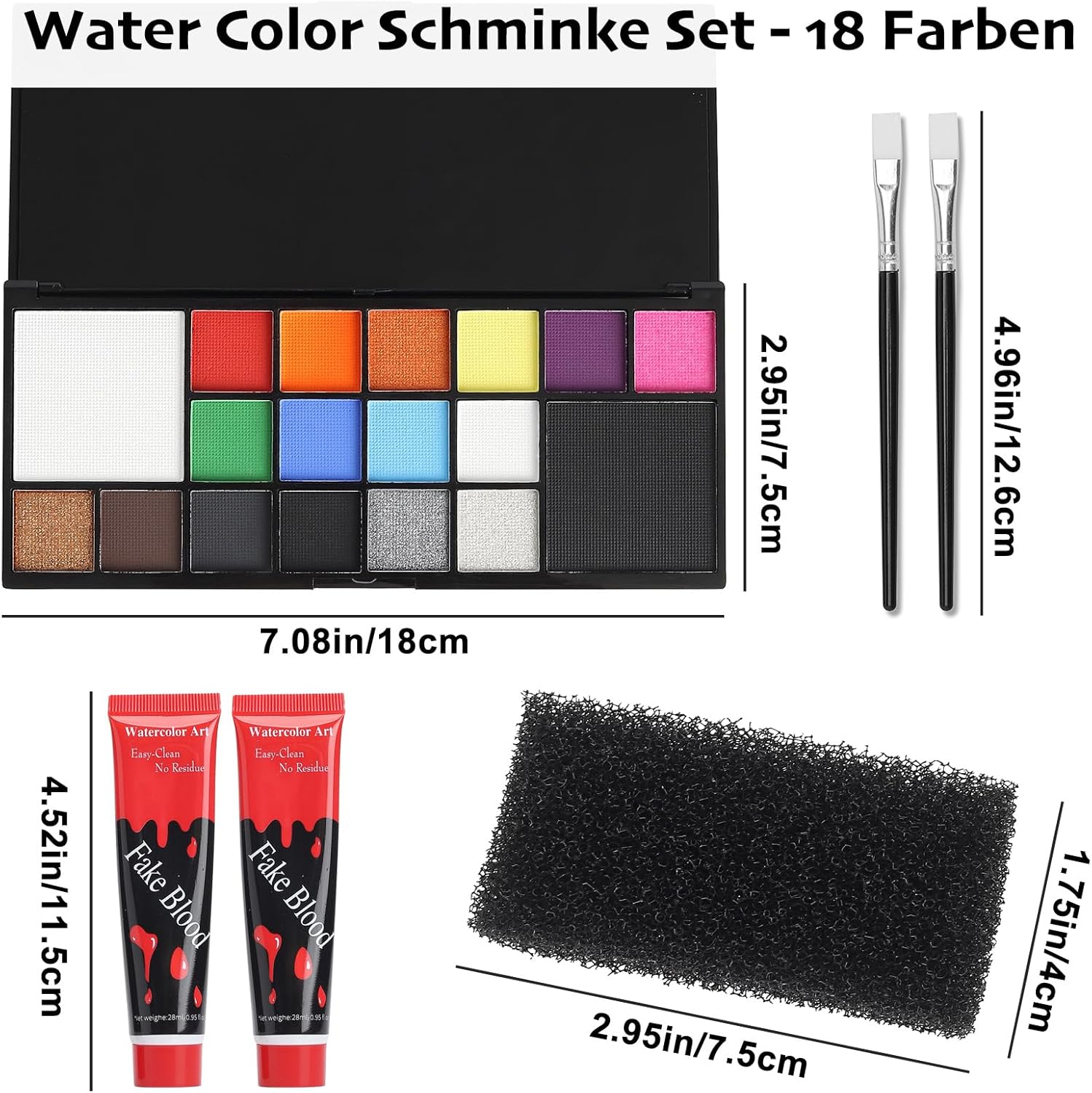 🎨 Kit trucco Halloween: kit trucco Halloween Include 1 tavolozza di 16 trucchi colorati con acqua, 2 tubi di sangue finto, 2 matite precise per il trucco e 1 spugna speciale, tutto ciò di cui hai bisogno per l'effetto spettrale definitivo. 🩸 Ferite realistiche e convincenti: il sangue finto e una speciale spugna con struttura perforata creano schizzi di sangue professionali e ferite spaventose per Halloween, oltre al trucco da vampiro per il perfetto look horror. 🎃 Delicato sulla pelle e facile da rimuovere: il kit per il trucco a base d'acqua è ideale per la pelle sensibile. Il trucco di Halloween per bambini e adulti si rimuove senza lasciare aloni dopo la festa con acqua e sapone. ✅ Trucco a base d'acqua: il trucco di Halloween è composto da componenti di origine vegetale, è sicuro e non tossico. Trucco Halloween: basta applicare da 2 a 3 strati per ottenere una copertura perfetta e intensa. 💀 Perfetto per tutti i fan dell'horror: trasformati in uno zombie, un vampiro, un serial killer o una vittima! Il kit per il trucco di Halloween è l'attrezzatura di base ideale per Halloween, feste horror, club teatrali o eventi spettrali.
