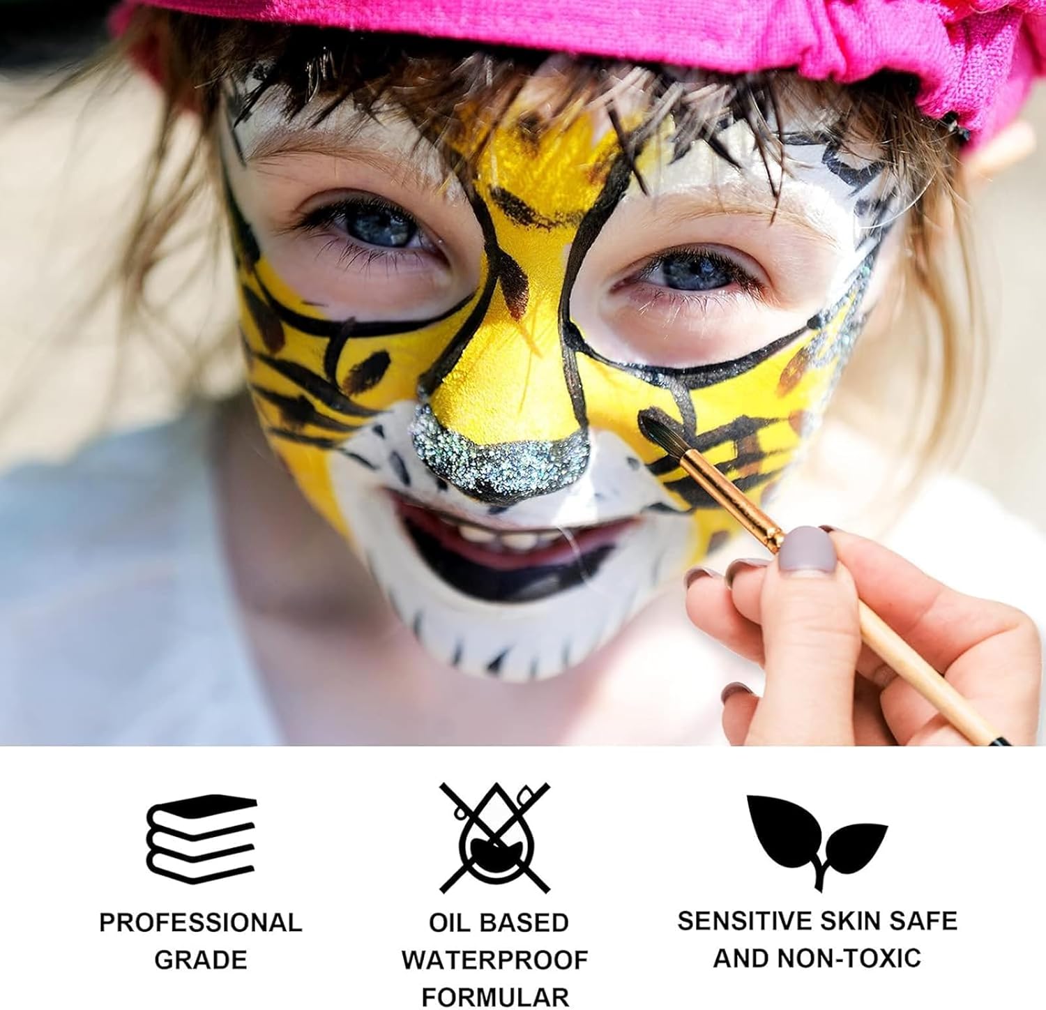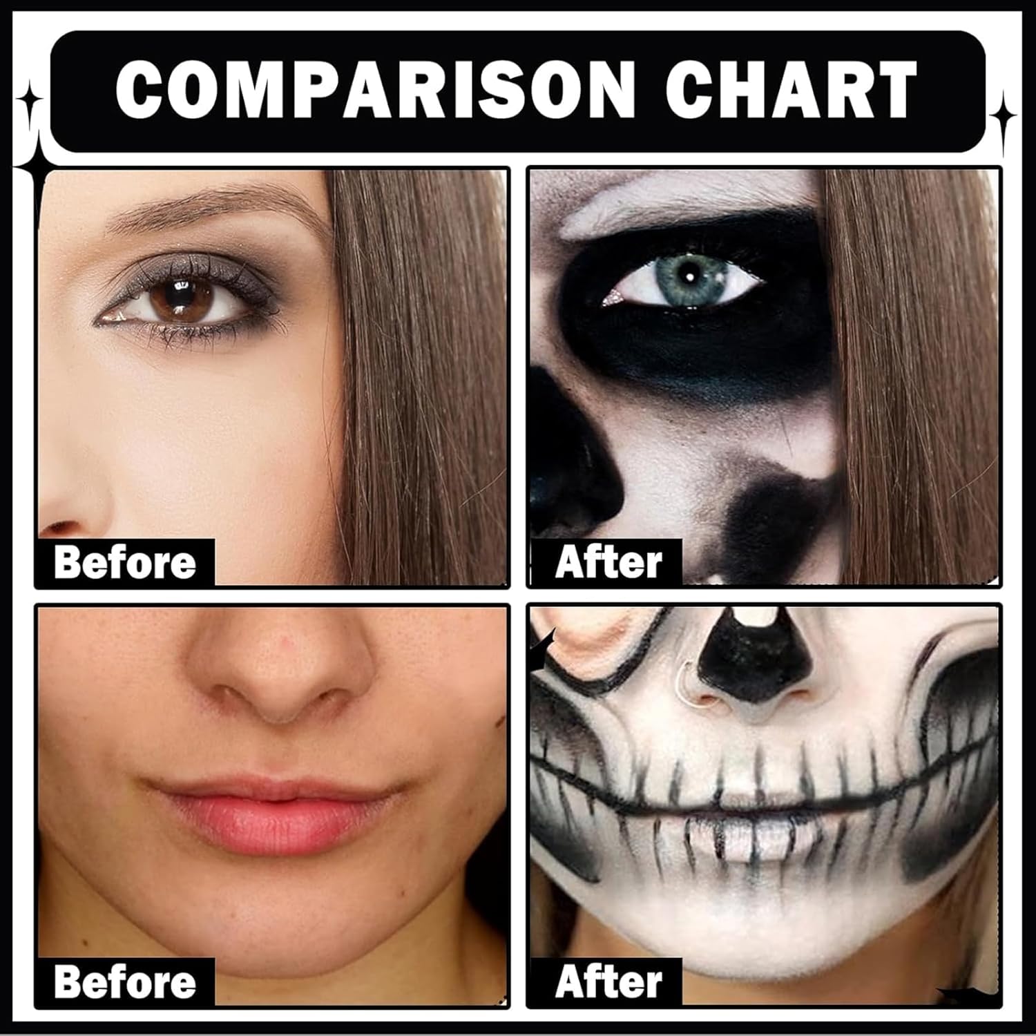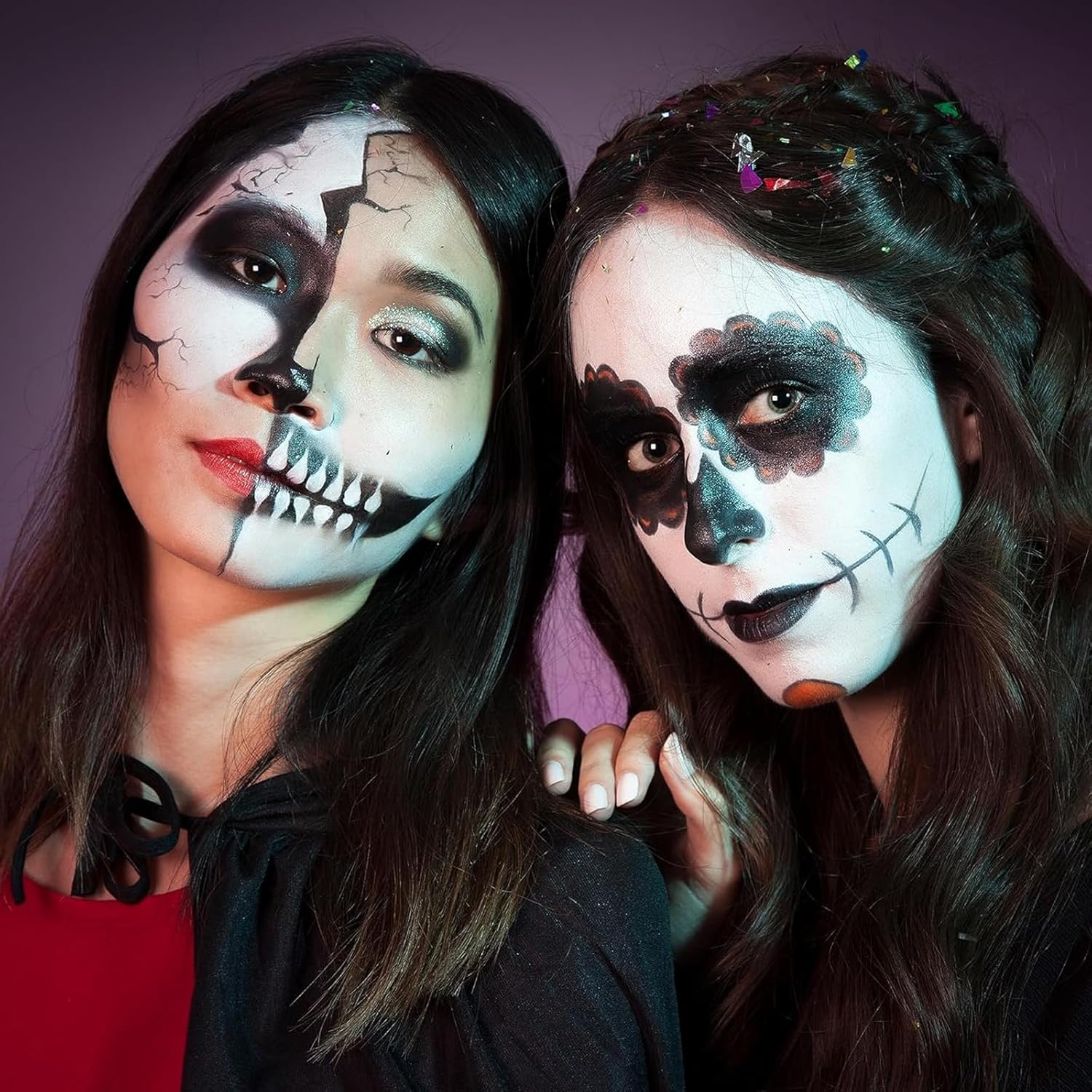 Pittura per il viso bianca e nera: il kit di pittura per il viso oleosa contiene bianco e nero. Ogni pezzo ha un peso netto di 50 g e la grande capacità può soddisfare le tue esigenze aggiuntive, adatta per l'uso su viso e corpo. Crema bianca per il trucco: è la prima scelta per il trucco professionale a lungo termine di vari cosmetici. Questa crema per il viso super liscia e super bianca può coprire efficacemente il viso senza seccarsi o screpolarsi. Utilizzato in combinazione con maschere nere, è particolarmente adatto per clown, vampiri, zombie, facce di teschi, ragnatele e trucco da fantasma. Facile da applicare e lavare: applicare sulla pelle con una spugna, un pennello o con la punta delle dita. Questa vernice per il corpo e il viso è facile da usare; Utilizzare uno struccante professionale a base di olio/olio d'oliva per rimuovere il trucco, asciugarlo con un panno e risciacquare con detergente viso e acqua. Pigmentazione ricca di olio: questa è una vernice per il trucco del viso e del corpo a basso contenuto di allergeni e priva di conservanti, adatta a tutti i tipi di pelle. Poiché la sua consistenza oleosa e cremosa non è completamente asciutta come altri cosmetici professionali in crema, consigliamo vivamente di utilizzare la polvere fissante dopo la verniciatura. Nota: non è necessario aggiungere acqua. Pittura per il viso nera di Halloween: la formula altamente pigmentata e adatta agli strati è perfetta per diverse applicazioni di pittura su viso e corpo, adatta per divertenti feste a tema, carnevale, balli insoliti, Halloween e altre occasioni, per trucco artistico o effetti speciali sul palco.
