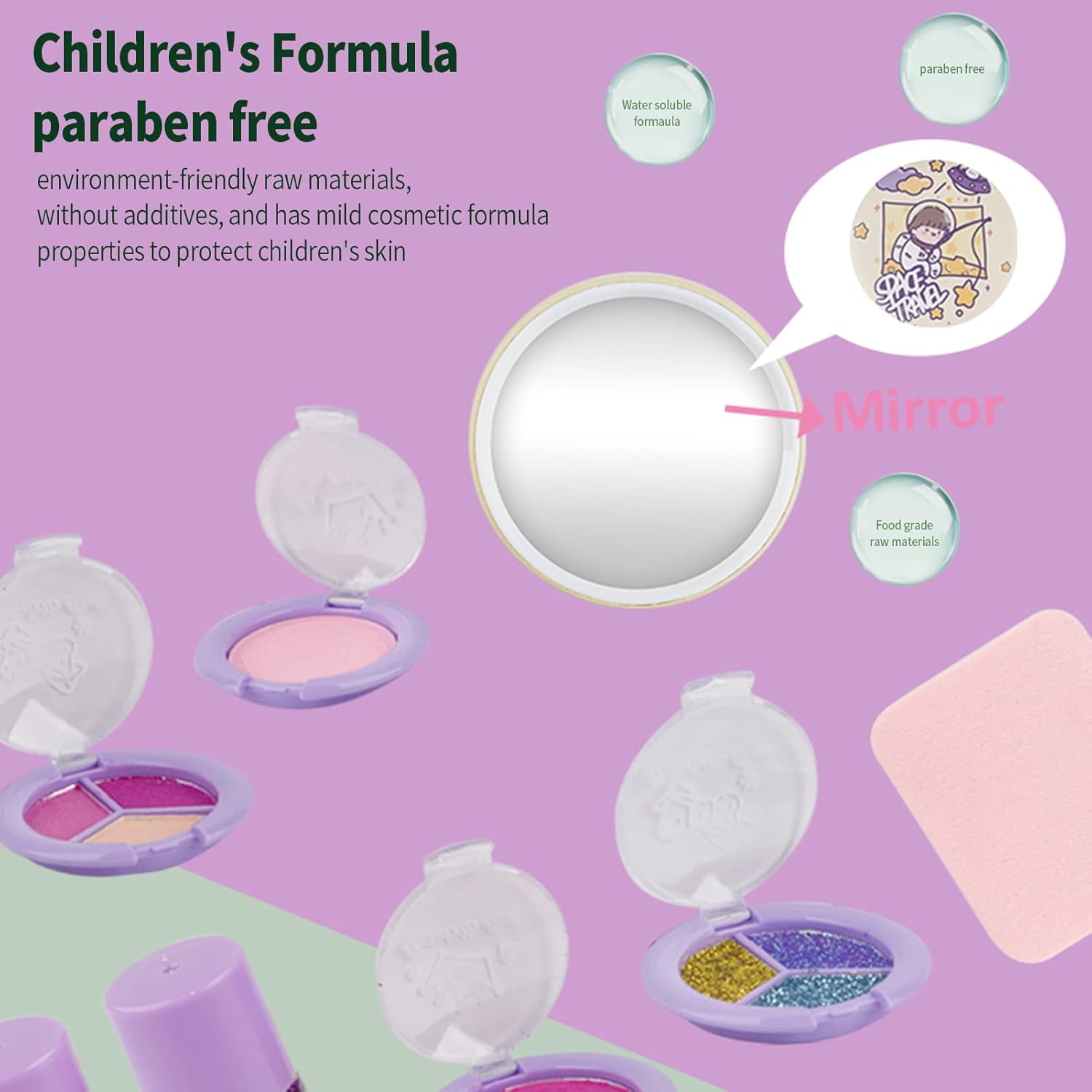 [Kit completo per il trucco] Questo set include tutto ciò di cui una piccola principessa ha bisogno per il gioco creativo, dai pennelli allo smalto, per i giochi di ruolo. [Immaginazione] Incoraggia la creatività e la fiducia nelle ragazze con questo vero kit di trucco progettato per vestire divertimento ed eleganza coltivazione. [Ideale] Rendi speciale ogni occasione con questo set completo di trucco per bambini, un regalo per compleanni, Natale o qualsiasi celebrazione. [Sicuro e non onico] Realizzato con materiali ecologici, questo set di trucco è delicato sulla pelle dei bambini e facile da lavare, garantendo che non ci siano vestiti o mobili. [Divertimento con gli amici] per appuntamenti di gioco, le ragazze possono divertirsi a sperimentare diversi look, creando ricordi indimenticabili con amici e familiari.