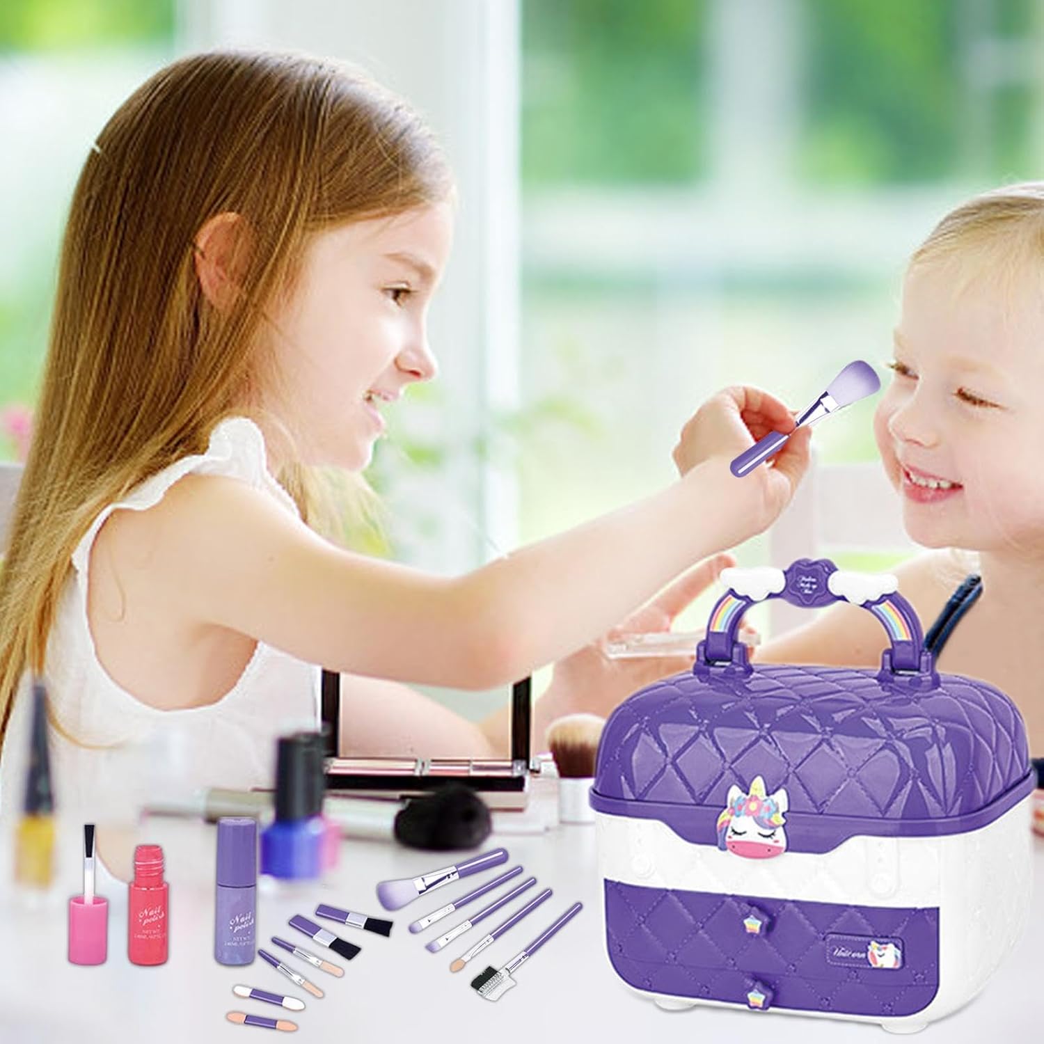 Incoraggia i giovani talenti: libera il potenziale di tuo figlio fornendogli un set di trucchi per bambini che incoraggia la creatività e l'intrattenimento mentre sviluppa i suoi interessi e le sue abilità. Questo set non solo migliora le capacità motorie, ma permette anche loro di esprimere il loro fascino e valore unici attraverso il gioco fantasioso. Avvicina la tua famiglia: il set di trucchi per bambini può aiutarti a promuovere l'interazione genitore-figlio, trascorrere del tempo di qualità in famiglia e instillare valori per te. Allevare hobby tra genitori ed è stato così divertente e significativo Facile da pulire: il set per il trucco per bambini è realizzato con materiali sicuri e delicati sulla pelle che garantiscono sicurezza e rendono il trucco del viso facile da rimuovere, basta sciacquare con acqua. Facile da trasportare: con una custodia portatile dal design accattivante che consente di risparmiare spazio; viene fornito con uno specchio e una maniglia, quindi puoi usarlo facilmente o applicare il trucco in qualsiasi momento. Regalo perfetto: il set per il trucco per i più piccoli non è solo un gioco divertente e sicuro, ma anche un regalo adatto per le ragazze interessate al trucco. È l'introduzione perfetta per sperimentare il trucco e liberare la tua creatività. Perfetto per compleanni, Natale e altre occasioni speciali