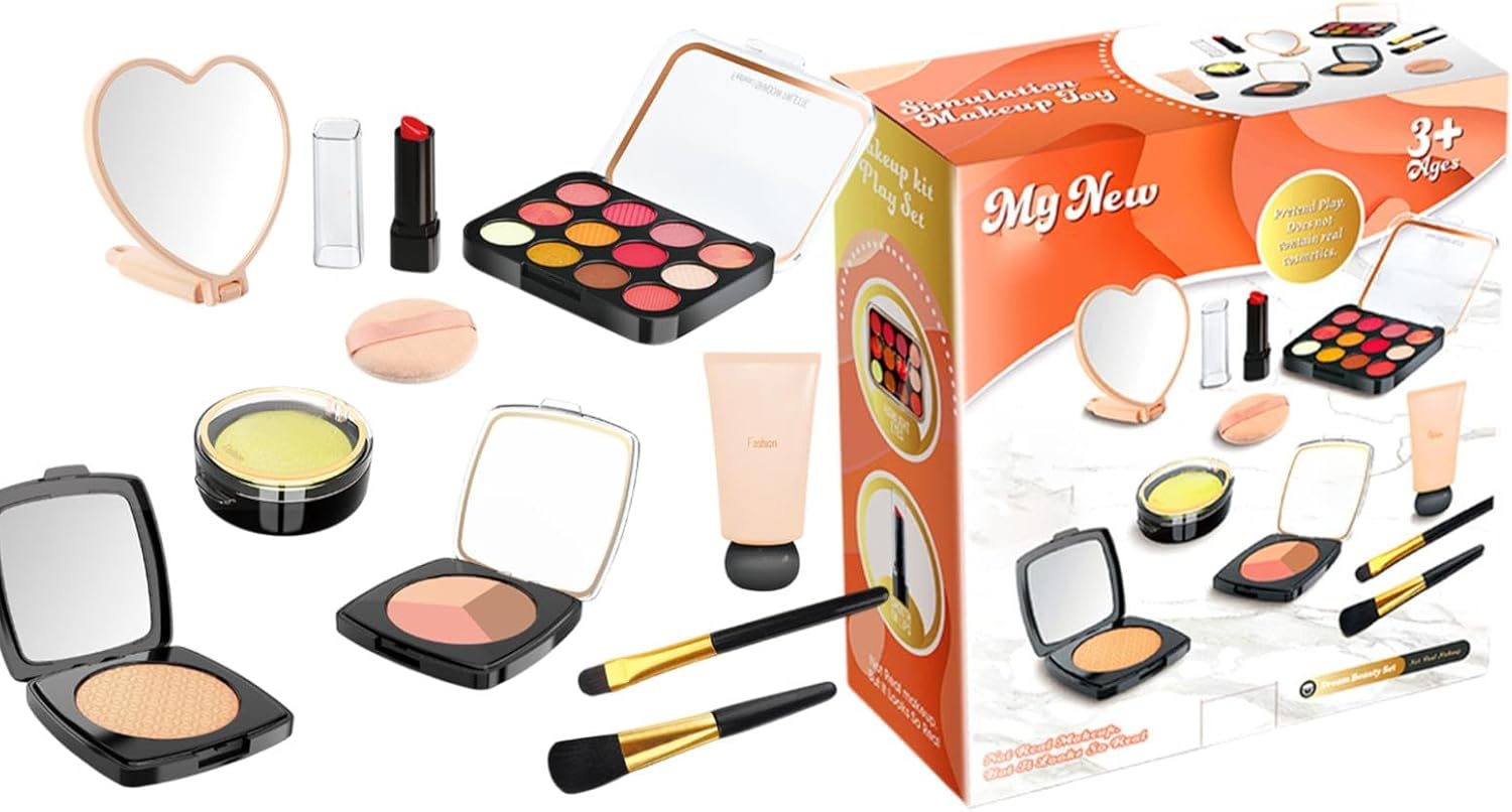 Ottima fattura: unisciti al divertimento del gioco di ruolo assomigliando a veri cosmetici, come la tavolozza di ombretti e il pennello per fard. La pregevole fattura consente ai bambini di coltivare abilità estetiche. Uso sicuro: i genitori possono lasciare che i propri figli giochino e sperimentino il trucco senza preoccuparsi della deglutizione accidentale per garantire la loro salute e sicurezza. Il nostro giocattolo anti-macchia appositamente progettato garantisce un utilizzo sicuro, soddisfa la curiosità dei bambini e incoraggia la creatività. Facile da usare: i nostri set per il trucco per ragazze promuovono anche l'immaginazione e le abilità pratiche dei bambini. I bambini possono giocare a giochi interattivi con la famiglia o gli amici e migliorare le loro abilità sociali. Il set contiene una varietà di strumenti e decorazioni per il trucco che consentono ai bambini di creare una varietà di look diversi e di semplificare l'applicazione. Molteplici funzioni: con un manuale di istruzioni allegato, questo set di trucchi per ragazze aiuta le ragazze a comprendere le conoscenze estetiche di base, a migliorare le capacità di risoluzione dei problemi e a imparare a prendersi cura di se stesse e degli altri. I bambini possono anche apprendere conoscenze pratiche durante il processo di gioco e il manuale garantisce bellezza semplice, buon senso e cura della pelle. Bellissimo regalo: questo regalo unico porterà gioia e incoraggerà il gioco fantasioso trasmettendo i tuoi auguri per il tuo sviluppo futuro. È un bel regalo per amici e parenti per mostrare quanto ci tieni.