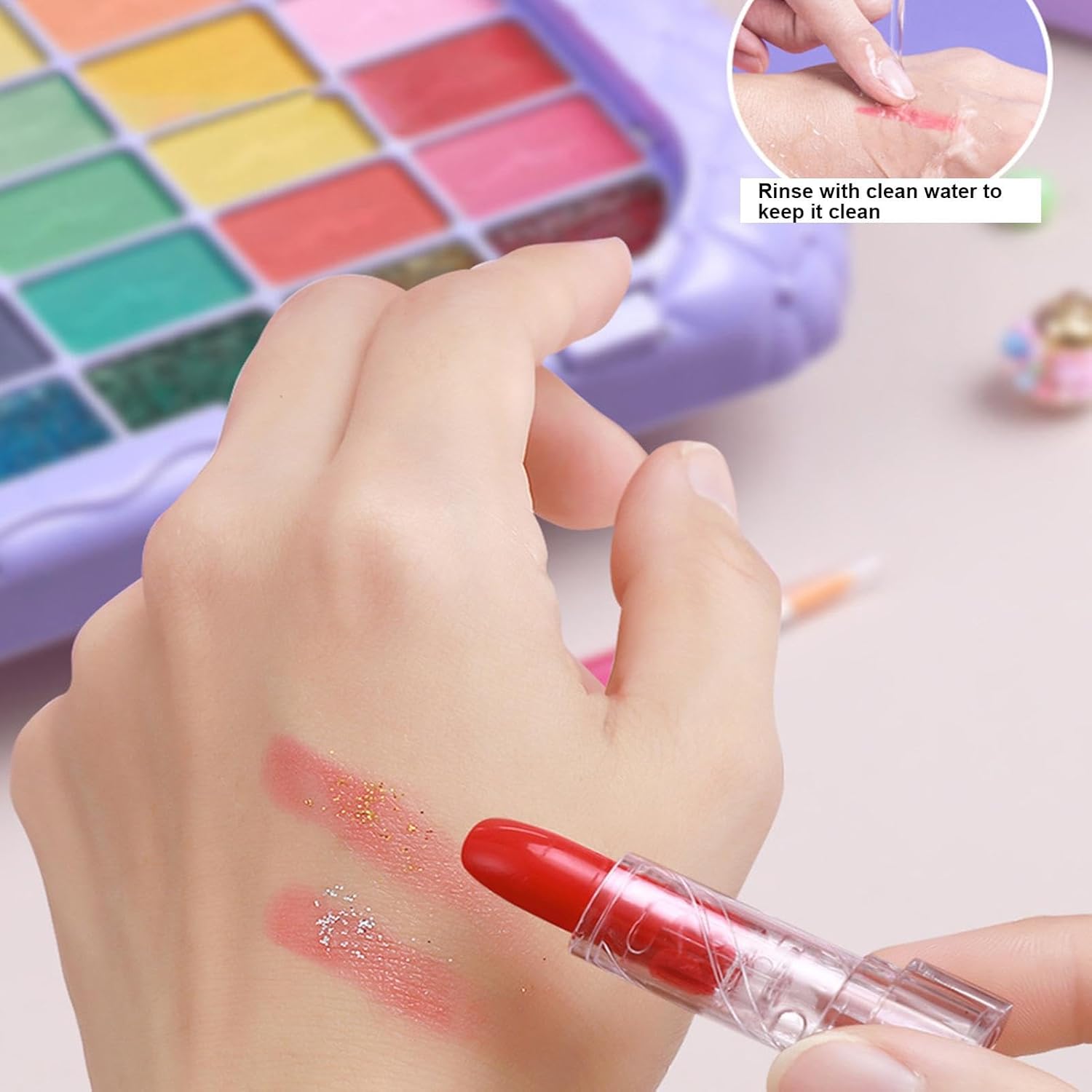 Miglioramento del tempo di gioco per il trucco: con un'ampia gamma di accessori per il trucco, questo kit per il trucco offre maggiori opportunità ai bambini di sperimentare e stimolare la loro creatività attraverso giochi di trucco divertenti e fantasiosi. Morbido e delicato sulla pelle: realizzato in materiale sicuro, questo set di trucchi per bambini non danneggerà i bambini, offrendo un'esperienza di gioco divertente e senza preoccupazioni PORTABILITÀ GARANTITA: porta questo set di trucchi per bambini ovunque perché è dotato di una maniglia per un facile trasporto. Dai a tuo figlio la libertà di divertirsi truccandosi all'aperto durante i viaggi o i festival. Usi multipli: concediti il fascino del trucco da favola con il set trucco perfetto per i bambini. Perfetto per feste da principesse, compleanni e qualsiasi attività divertente per bambini, aggiungerà sicuramente un tocco di brillantezza a qualsiasi gioco. Regalo premuroso: regala alle ragazze che amano i giochi di trucco, questo set di trucchi per bambini è perfetto per le feste di compleanno o la giornata dei bambini, che porta più divertimento e creatività