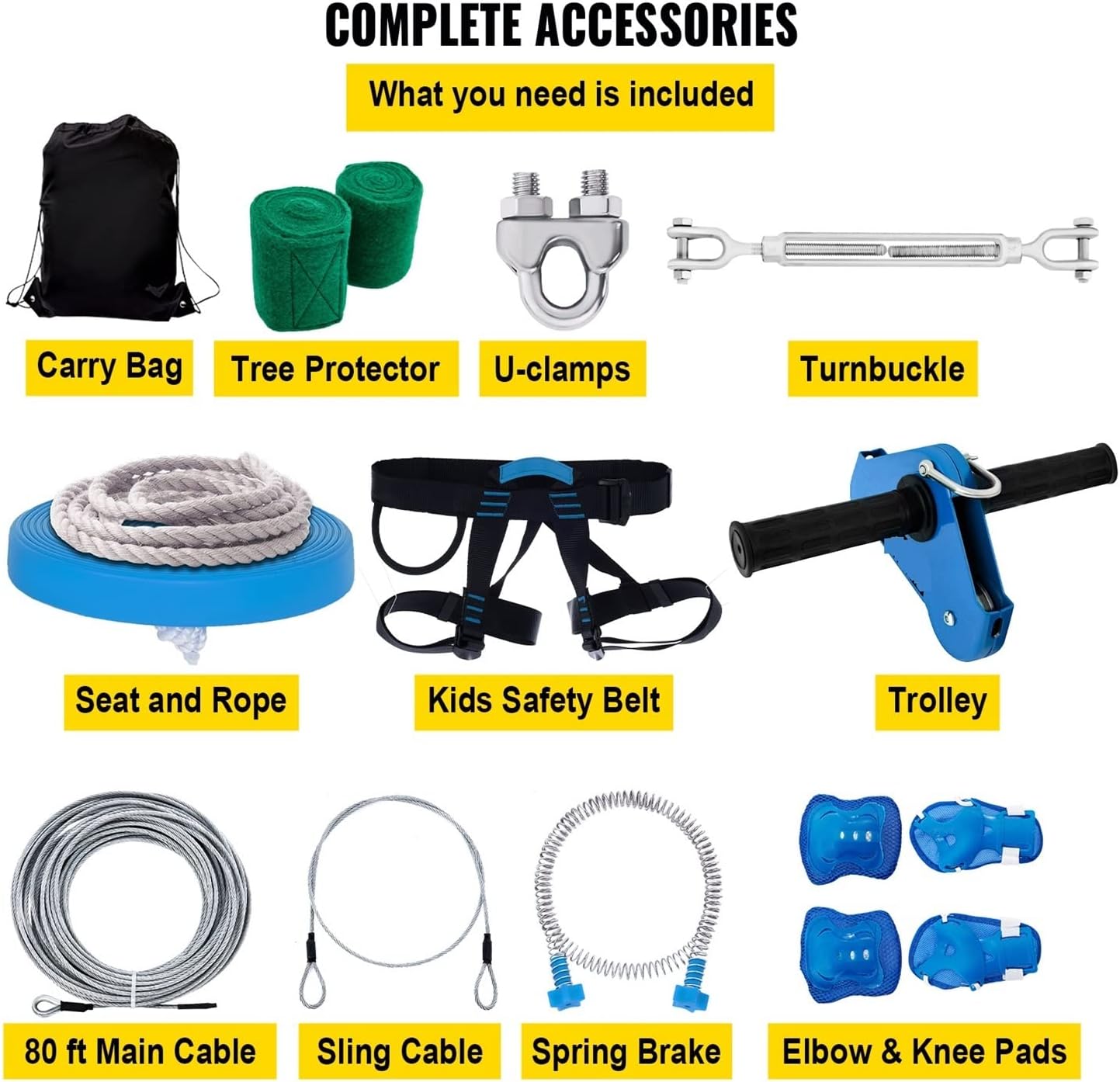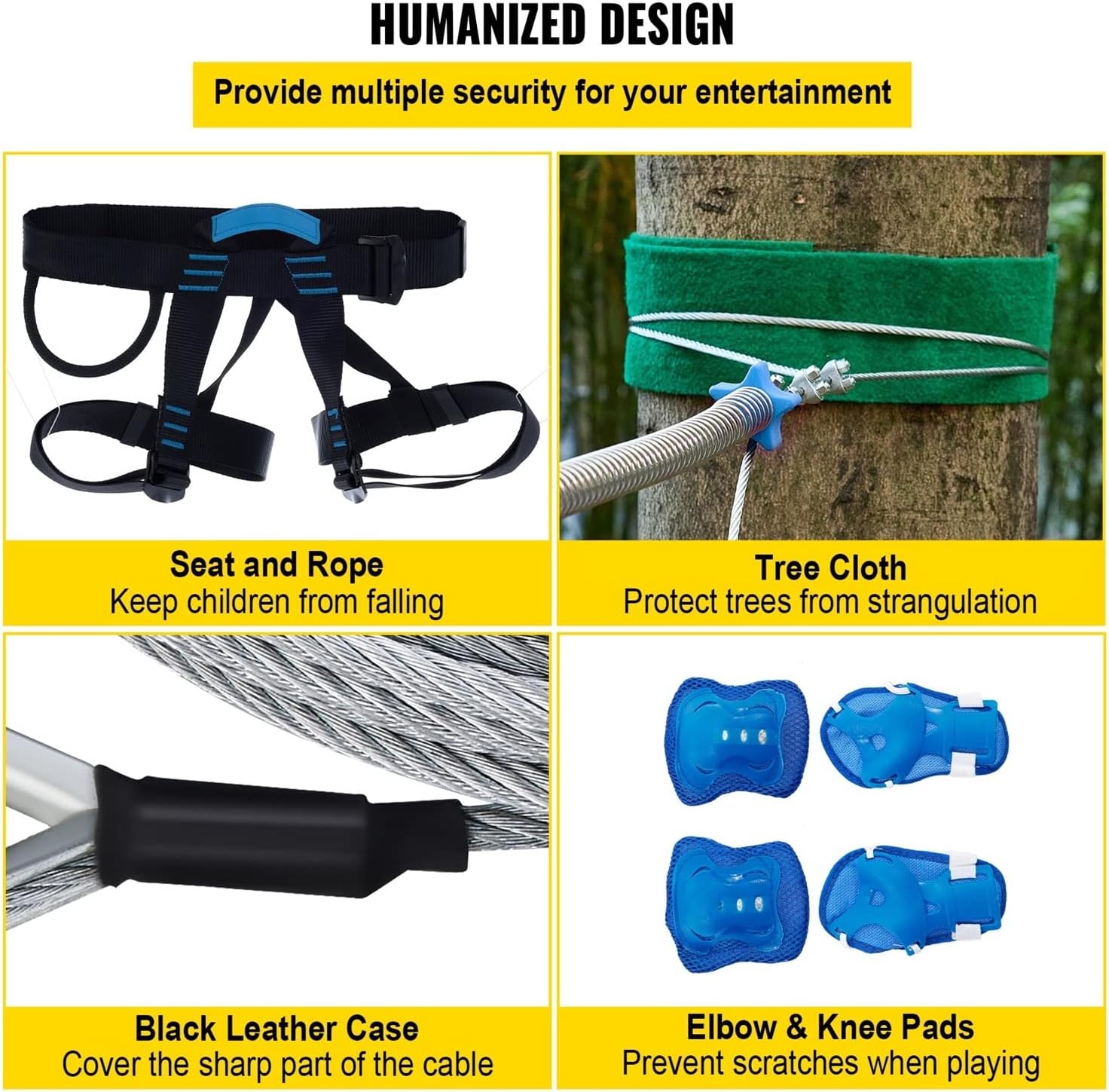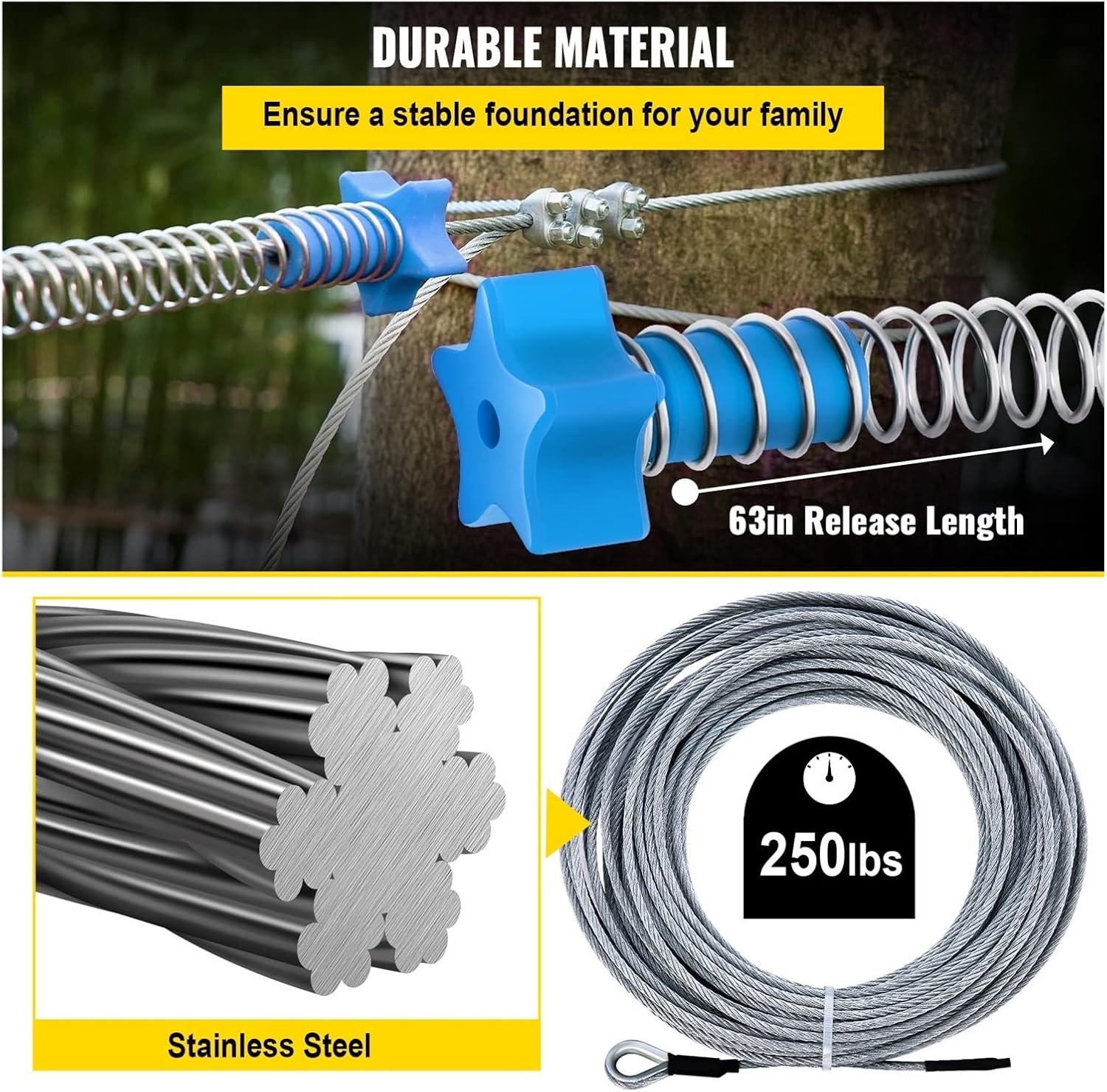Il nostro frenante a molla è realizzato in acciaio inossidabile, che ha una maggiore tenacità e durata. Di conseguenza, un freno a molla può garantire efficacemente una distanza tra bambini e alberi e garantire la sicurezza. I nostri sedili di sicurezza, vestiti per alberi, prepuzio affilato, ginocchiere e gomitiere sono migliori per i bambini durante l'esercizio o l'intrattenimento, riducono la possibilità di lesioni in molti modi e garantiscono prima la sicurezza. Il nostro set di teleferiche da cortile è facile da installare. La parte che spinge deve solo installare la fune dall'inizio. Forniamo lo schema di installazione per semplificare il funzionamento. Puoi ottenere un set completo di kit zipline, che include corda principale, corda extra, sedile, carrello, cintura di sicurezza per bambini, vestiti per l'albero, custodia, protezione per i gomiti, protezione per le ginocchia e una serie di accessori. Il nostro set zip line è il miglior partner per far giocare i bambini in giardino e un regalo ideale per loro. Può aiutare efficacemente i bambini a fare esercizio e giocare e avvicinare i sentimenti tra famiglia e bambini. Sarà la tua scelta eccellente. Benvenuto e ti auguro una vita felice, amico mio