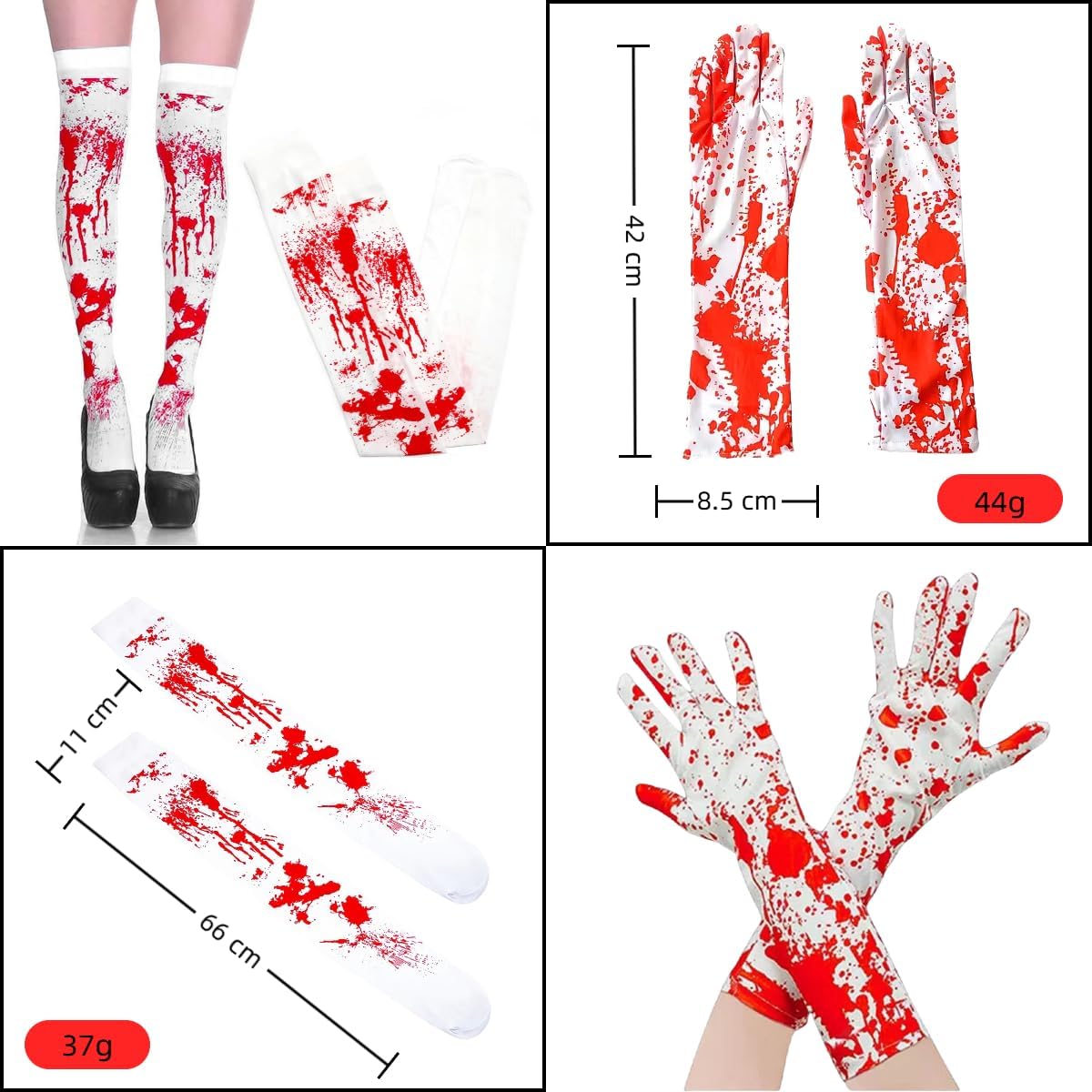 Descrizione del prodotto Guanti e calzini macchiati di sangue più adesivi con tatuaggio di ragno: un look horror istantaneo, realistico ed emozionante, un must per Halloween! Specifiche Nome: Guanti e calzini di Halloween macchiati di sangue Materiale: Poliestere Dimensioni: Guanti: 42 x 8,5 cm, Calzini: 66 x 11 cm Contenuto della confezione 1 paio di guanti macchiati di sangue 1 paio di calzini macchiati di sangue 30 adesivi con tatuaggio di ragno