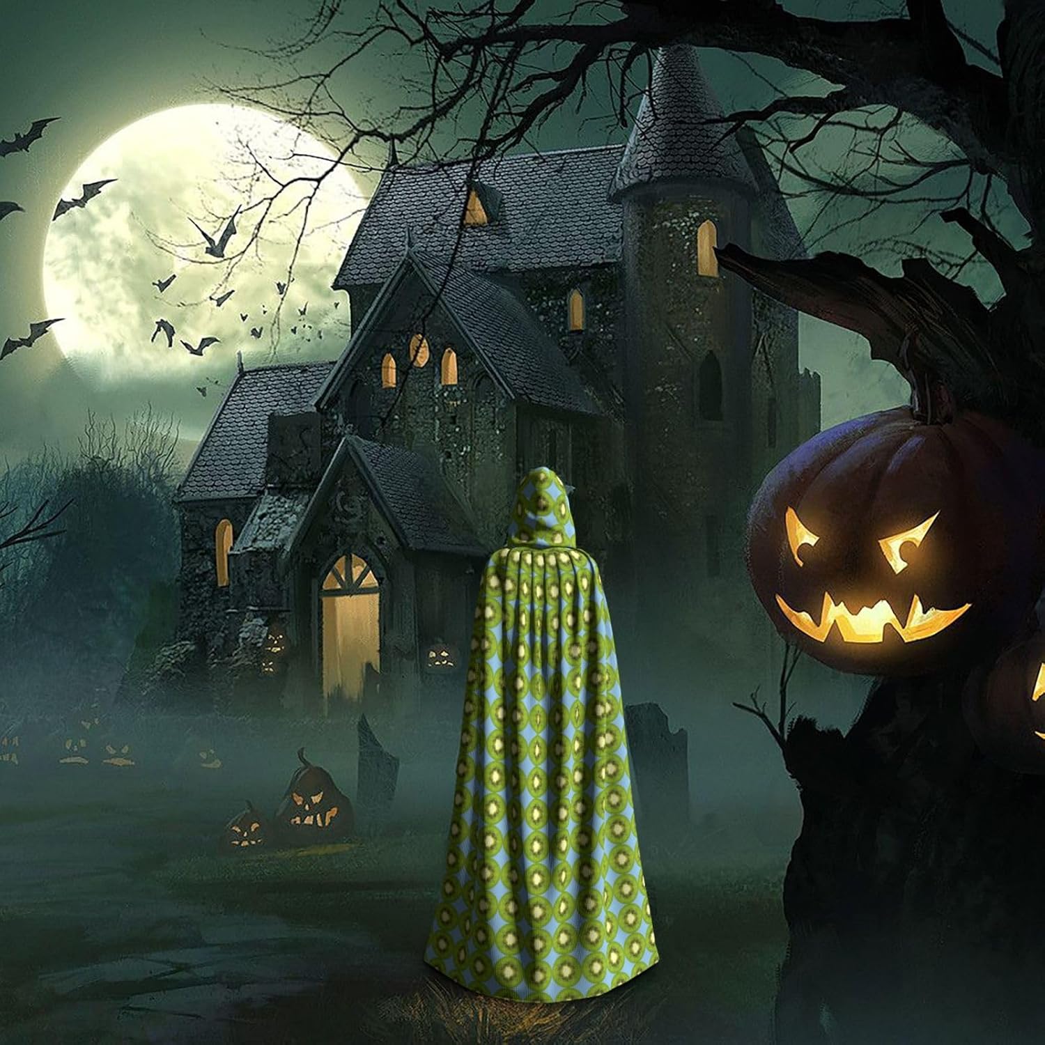 Kiwi - Mantello con cappuccio per Halloween, per adulti, elegante, per carnevale, feste a tema, cosplay