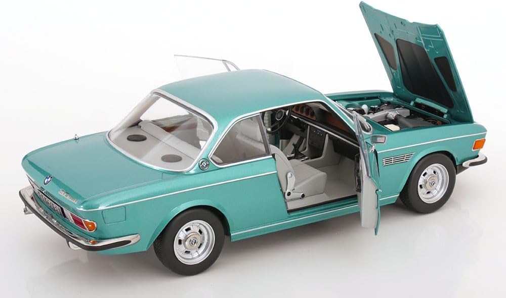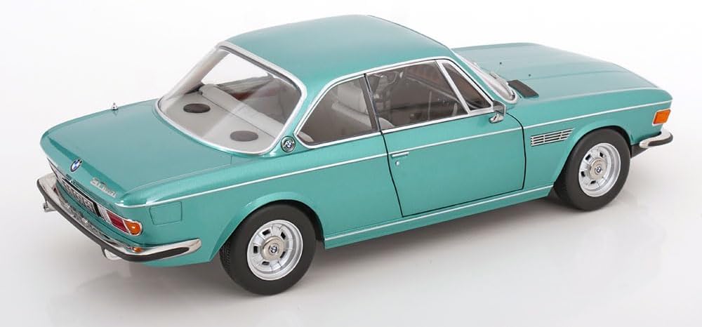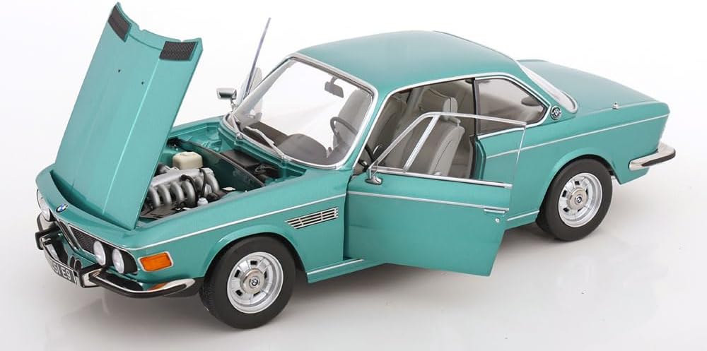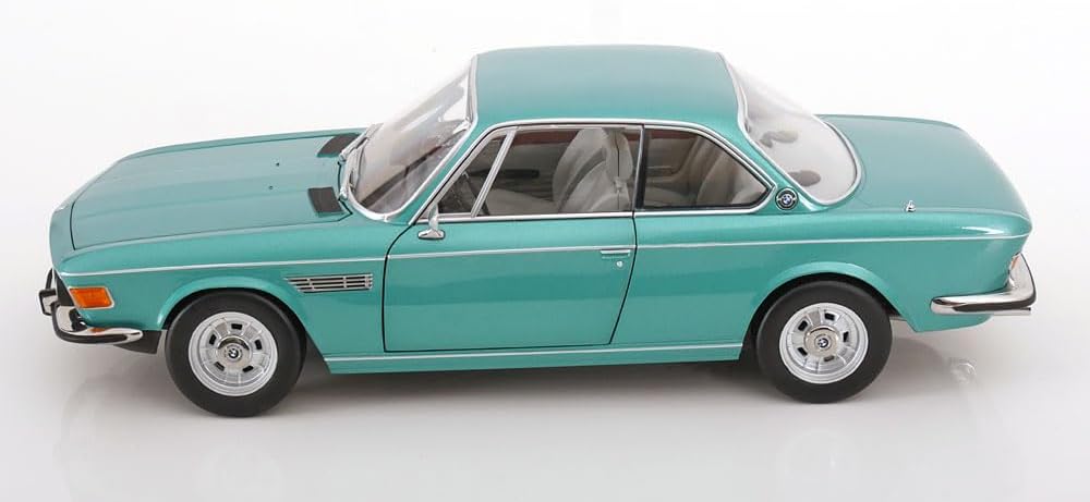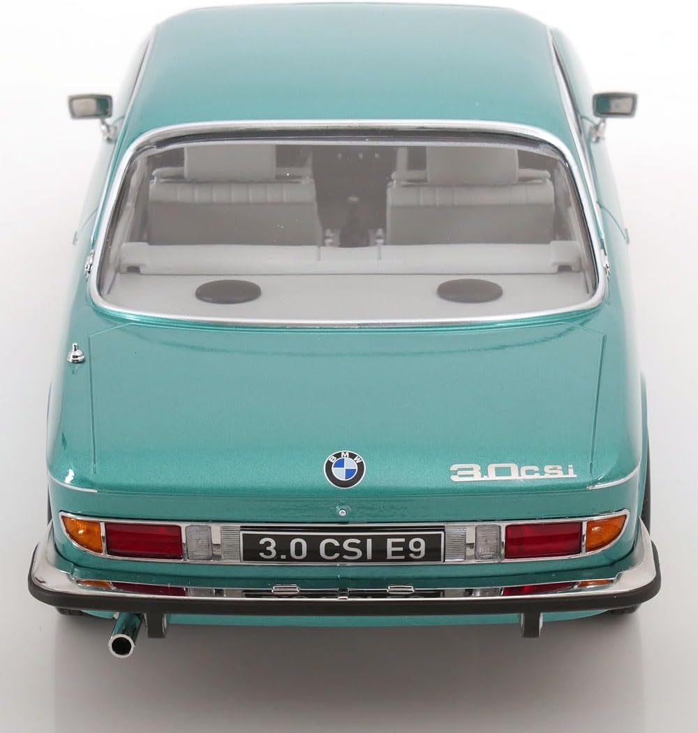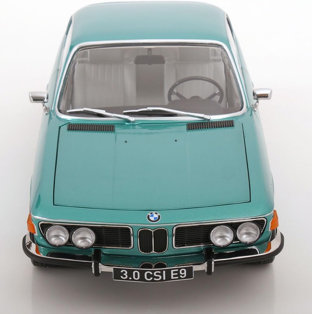 Scala: 1/12 Modello: 3.0 Csi E9 Turquoise Metallic With Aluminium Rims 1971 Materiale: Metallo Modello da collezione in miniatura altamente dettagliato, montato e verniciato Fabbricante: KK Scale