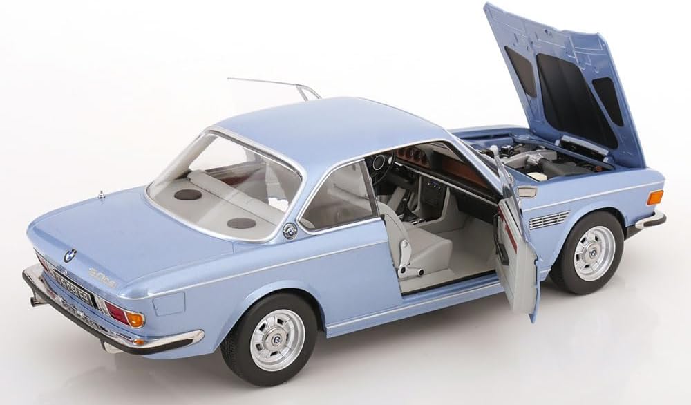 Scala: 1/12 Modello: 3.0 Csi E9 Light Blue Metallic With Aluminium Rims 1971 Materiale: Metallo Modello da collezione in miniatura altamente dettagliato, montato e verniciato Fabbricante: KK Scale