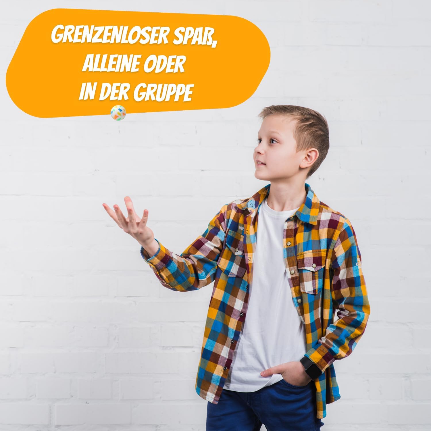 Set di palline di alta qualità: i nostri peluche entusiasmeranno i bambini! Con fantastiche idee di gioco, in bellissimi colori, confezione di alta qualità. Ideale per piccoli regali per bambini e come regalino di compleanno per bambini Con idee per i giochi: cosa fare con una palla da salto? Nel set è inclusa una guida per i giochi con i flummies per bambini! Sarai stupito delle fantastiche idee di gioco che il nostro set di palline da salto offre. Alta qualità: gommini di alta qualità per bambini, inodore. 9 palline in gomma da 35 mm. Colori e motivi molto belli. Ogni palla di gomma è unica! Provare per credere! Per un maggiore movimento dei bambini: giocattolo per abilità motorie, ideale sia per giochi al chiuso che come giochi all'aperto per bambini. Ideale anche per giochi di pausa e giochi da giardino Flummis compleanno per bambini: perfetto come regalo di compleanno per bambini, ma anche come regalo di Natale per bambini, regali di Pasqua per bambini o come regalo per l'inizio della scuola!