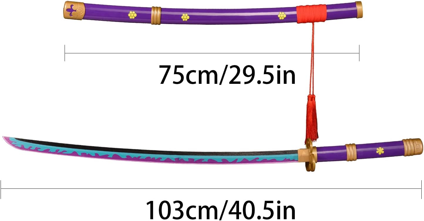 1. Roronoa Zoros Katana-Ame no Habakiri Spada 2. La katana leggera lavorata con cura, la lama è realizzata in bambù, ha una buona tenacità e il resto del materiale è plastica. 3. Lunghezza totale 103 cm, lunghezza lama 70 cm, lunghezza manico 28 cm, lunghezza fodero 75 cm, peso 0,5 kg 4. Questa Katana è una replica perfetta del Roronoa Zoro Katana nell'animazione. L'aspetto, la lama e il manico sono stati tutti creati secondo l'animazione originale 5. Utilizzato per giochi di ruolo, decorazione, collezione, formazione di arti marziali e anche il miglior regalo per amici e parenti.