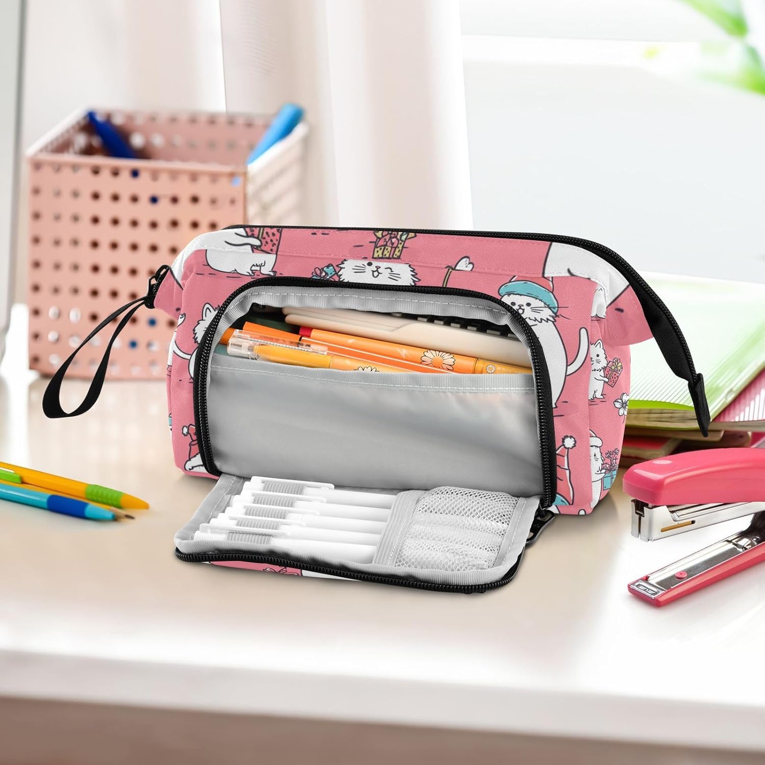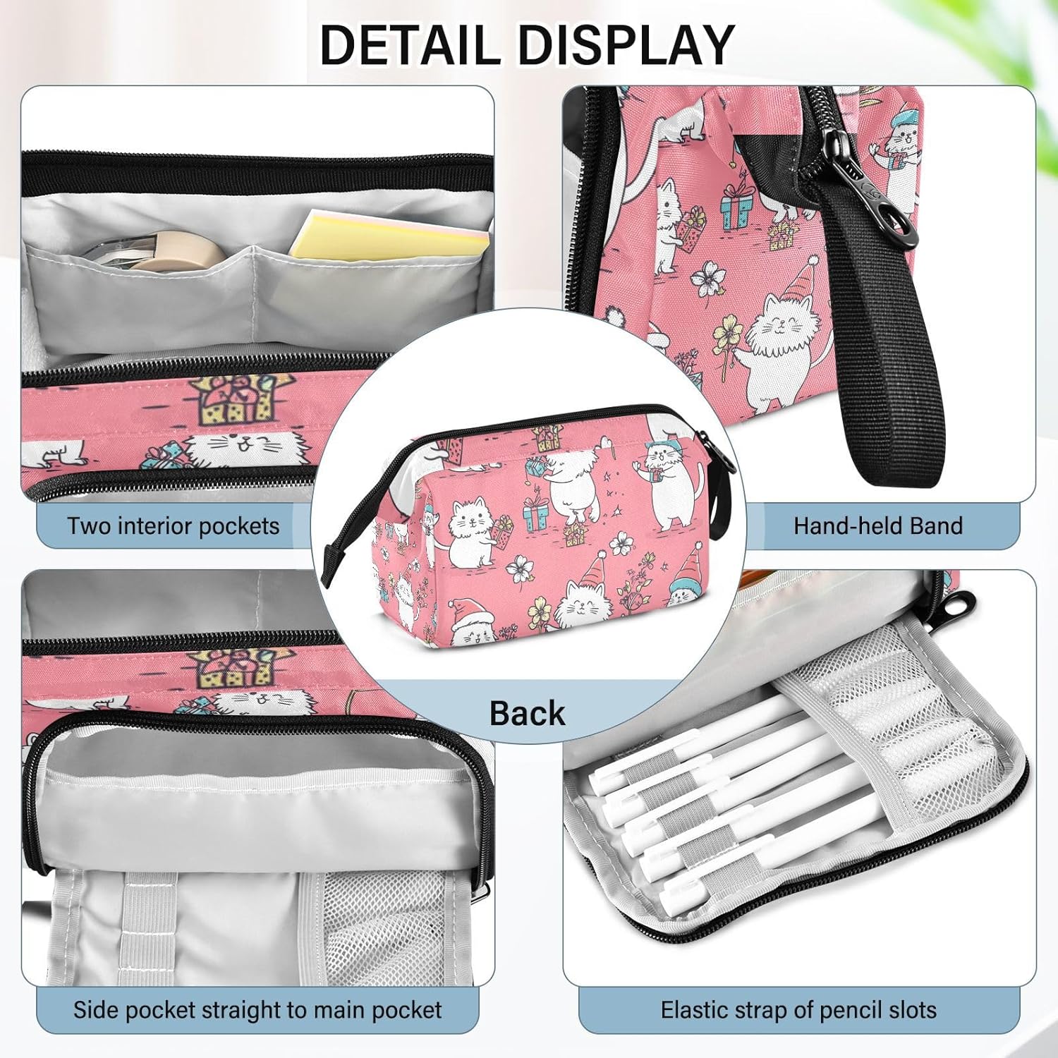 Materiale: realizzato in tessuto di nylon, resistente e con cerniera. Più leggero, resistente ai graffi, facile da pulire. (Non adatto a bambini di età inferiore ai 3 anni!) Grande capacità: misura 24 x 9,5 x 15 cm. L'organizer per matite può facilmente contenere 40-60 penne o matite nel suo ampio scomparto, fornendo abbastanza spazio per i tuoi oggetti essenziali di cancelleria. Due tasche interne sono spazio per le piccole necessità quotidiane o materiale scolastico, come carte, contanti, chiavi, gomme, nastri, foglietti adesivi per trovarli facilmente e rapidamente. Design portatile e confortevole: con una caratteristica leggera e un'ampia fascia da tenere in mano, la custodia può essere messa facilmente nello zaino o tenuta in mano senza sforzo. L'apertura superiore e laterale aggiunge più comodità nella tua vita. Puoi controllare o prendere la tua cancelleria molto chiaramente dall'alto e raccogliere le tue matite preferite dagli slot fissi laterali. Scenario applicabile: gli astucci non sono solo un astuccio, ma possono anche essere utilizzati per altri scopi. Perfetto per occasioni come studio, ufficio, gite, viaggi, uscite e così via. Può essere utilizzato come astuccio per penne, matite o pennelli, trousse per il trucco, per l'ufficio personale e per la scuola. Regalo perfetto: questo astuccio è un regalo per amici e bambini per compleanno, laurea, apertura scolastica, festa dei bambini, Natale/Capodanno, Ringraziamento, Halloween, San Valentino, Pasqua, San Patrizio e altre feste.
