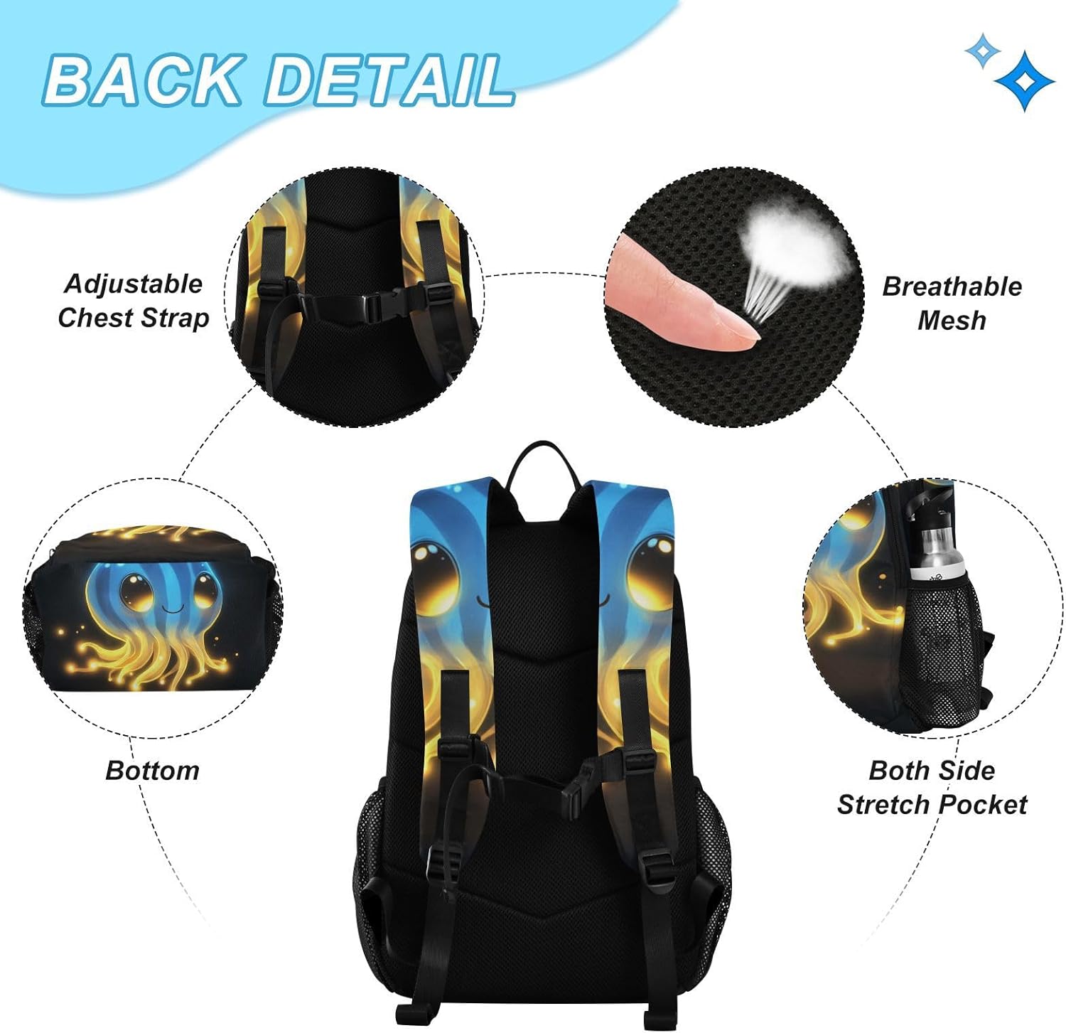 Dimensioni ombrello per bambini 35,5 '' in baldacchino, stand 65 cm quando chiuso, pesa 10,5 once. Adatto per bambini. Anti-UV. Rimani protetto dai dannosi raggi UV aggiungendo un tocco di dolcezza al tuo ensemble di giorni di pioggia. Striscia riflettente a 360°. Zaino con portapranzo per ragazzi La striscia riflettente a 360° può fornire una luce ad alta visibilità durante la notte buia o nei giorni di pioggia per ricordare agli altri di evitare di ferire i tuoi bambini. Top di sicurezza Lo zaino per ragazzi con la parte superiore della scatola per il pranzo è liscio senza bordi taglienti, garantendo la sicurezza del bambino durante il gioco. Manico facile da impugnare. Zaino con manico curvo in plastica è progettato specificamente per i bambini, consente ai bambini di controllare facilmente l'ombrello anche in condizioni meteorologiche difficili. Coperture extra a coste Questo zaino con portapranzo per ragazzi ha un design con angoli arrotondati, impedisce ai bambini di essere pugnalati. Perfetto per rimanere preparati in viaggio, questo ombrello compatto e portatile è un accessorio indispensabile!