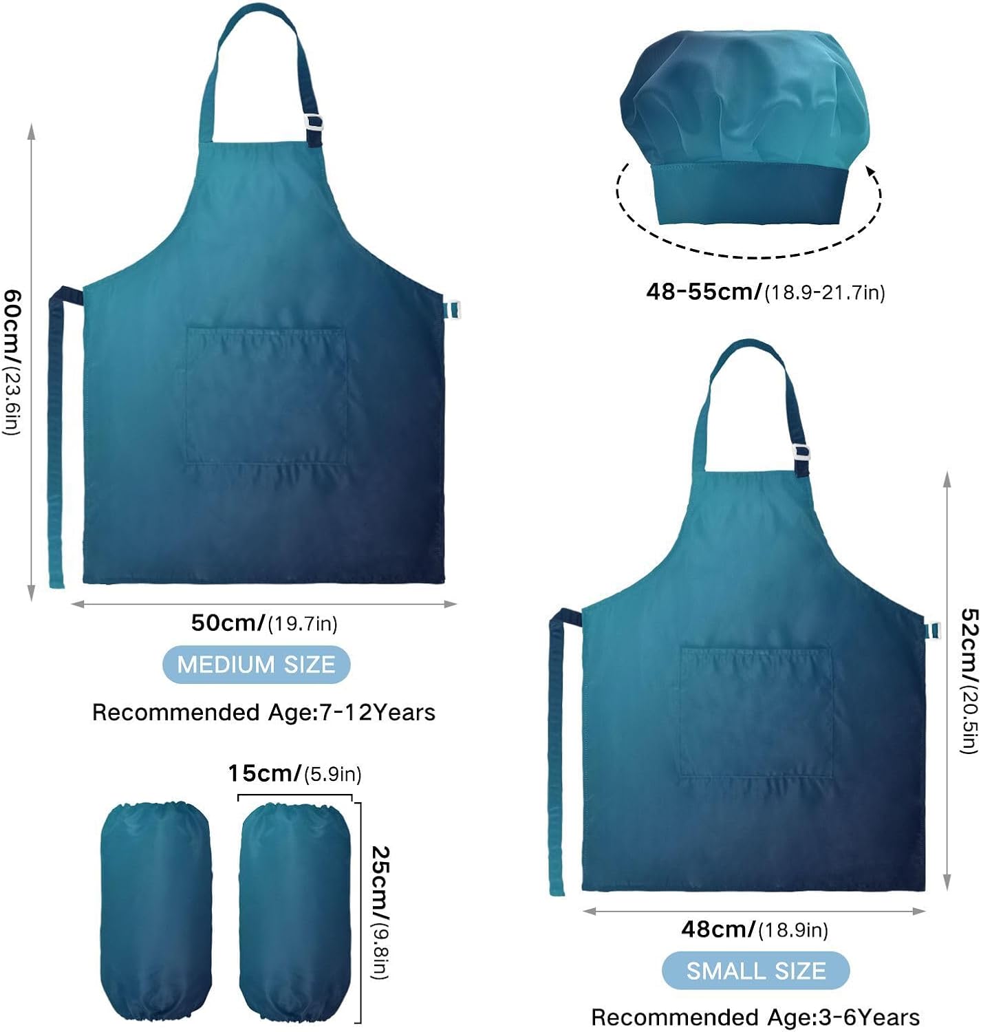 Dimensioni consigliate: S: 48 x 52 cm (età 3-6 anni). M: 50 x 59,7 cm (7-12 anni). La taglia può adattarsi alla maggior parte dei ragazzi e delle ragazze. Si prega di scegliere la taglia giusta in base alle dimensioni specifiche. Materiale di alta qualità: il grembiule da cucina per bambini è realizzato in poliestere, comodo, elegante, leggero e regolabile, impermeabile, facile da pulire. Impermeabile Caratteristica: Realizzato in poliestere, il set di grembiule per bambini è impermeabile. I bambini possono sentirsi liberi di imparare a cucinare e dipingere come preferiscono e possono mantenere i loro vestiti puliti allo stesso tempo. Ampia applicazione: il costume da chef per bambini da 3 pezzi è adatto per l'insegnamento della pittura e l'insegnamento della cucina, può essere applicato anche per corsi d'arte, costumi di Halloween, oggetti di scena teatrali, feste di compleanno e le belle attività della decorazione per feste a tema. Facile da pulire: il nostro prodotto è impermeabile e a prova di fuoriuscite. Basta strofinare, lavare in lavatrice e lavare a mano.