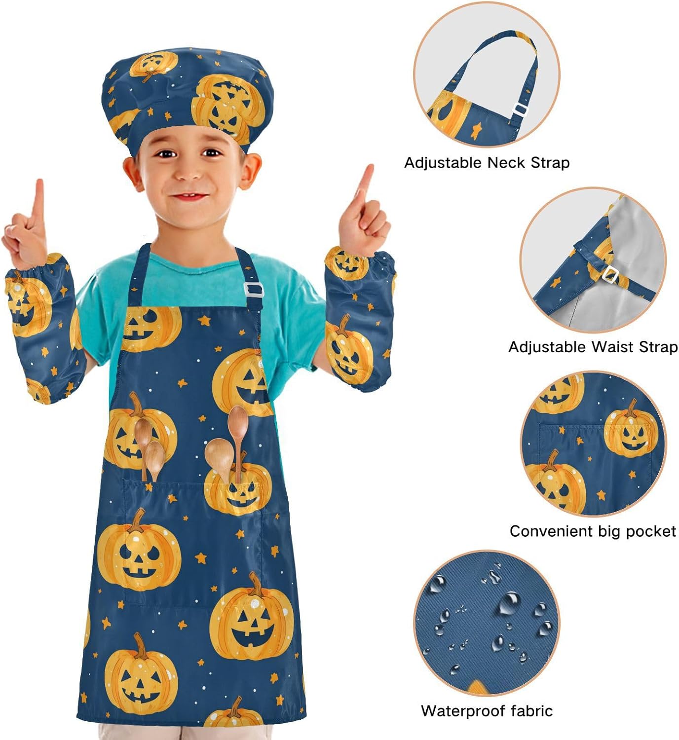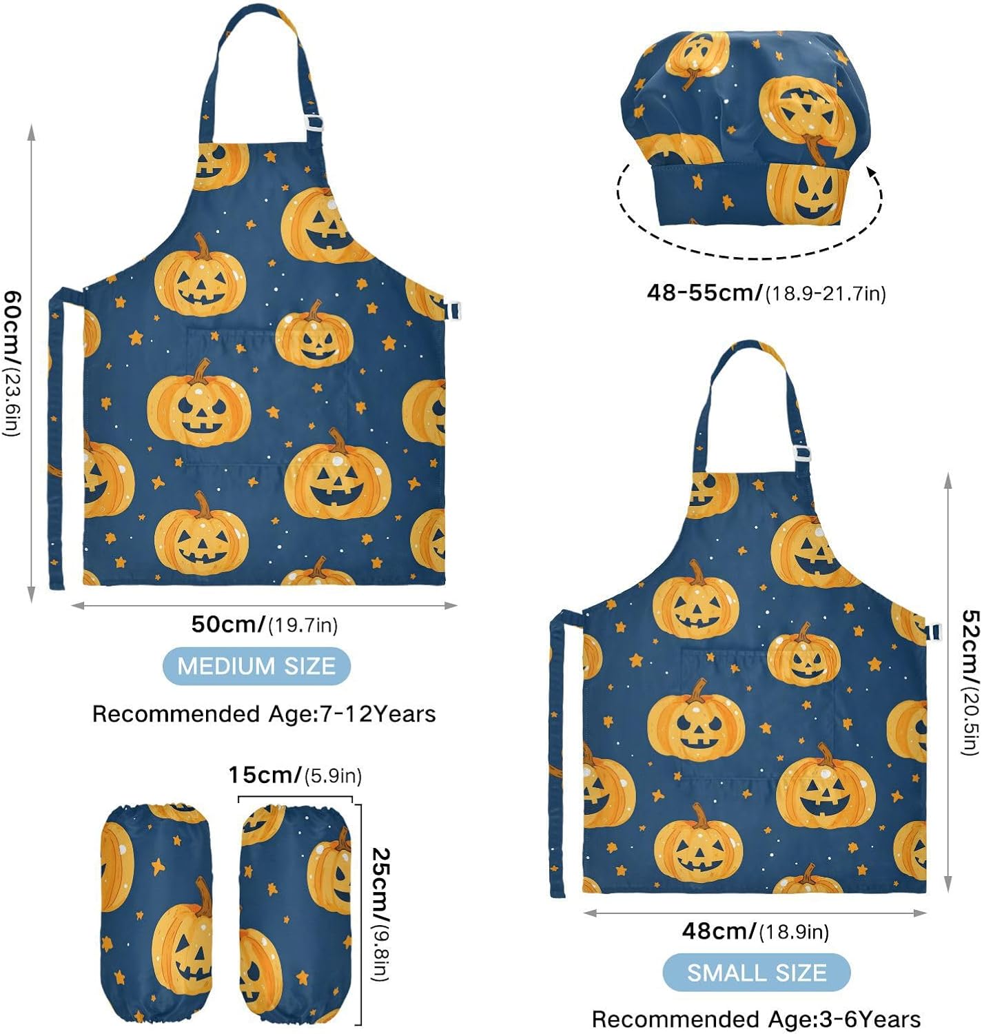 Dimensioni consigliate: S: 48 x 52 cm (età 3-6 anni). M: 50 x 59,7 cm (7-12 anni). La taglia può adattarsi alla maggior parte dei ragazzi e delle ragazze. Si prega di scegliere la taglia giusta in base alle dimensioni specifiche. Materiale di alta qualità: il grembiule per bambini è realizzato in poliestere, comodo, elegante, leggero e regolabile, impermeabile, facile da pulire. Protezione delle maniche con una grande tasca: due maniche possono proteggere i bambini da acqua, olio e pigmenti. Con grandi tasche decorative e funzionali, è comodo mettere alcuni strumenti quando si utilizza, adatto per imparare a cucinare, fare caramelle, dolci, ecc. Multiuso: i grembiuli per bambini non possono essere indossati per pittura, cucina, giardinaggio, lavaggio dei piatti, feste, arte, artigianato e attività scolastiche, ma anche per Natale, Ringraziamento, Halloween, San Patrizio, Capodanno, festa dei bambini, festival, vacanze, cene, compleanni e riunioni di famiglia. L'articolo include: il grembiule per bambini include 1 grembiule leggero, 1 cappello da chef e 2 maniche. Il grembiule da cucina per bambini può dare ai bambini una buona esperienza di utilizzo per cucinare o dipingere come fornelli o pittori professionisti.