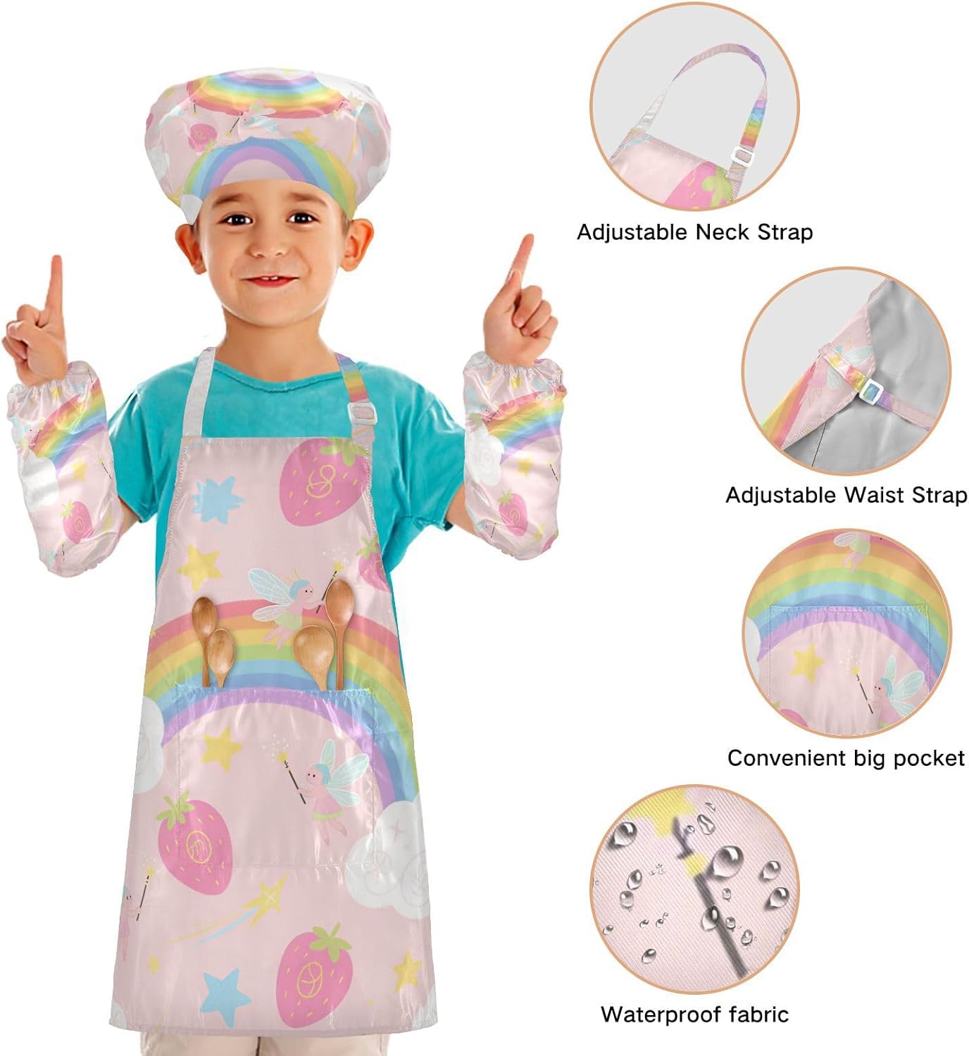 Dimensioni consigliate: S: 48 x 52 cm (età 3-6 anni). M: 50 x 59,7 cm (7-12 anni). La taglia può adattarsi alla maggior parte dei ragazzi e delle ragazze. Si prega di scegliere la taglia giusta in base alle dimensioni specifiche. Materiale di alta qualità: i grembiuli per bambini sono realizzati in poliestere, morbido tessuto impermeabile twill 290, dando una sensazione confortevole quando si indossa. Impermeabile Caratteristica: Realizzato in poliestere, il grembiule da cucina per bambini è impermeabile. I bambini possono sentirsi liberi di imparare a cucinare e dipingere come preferiscono e possono mantenere i loro vestiti puliti allo stesso tempo. Scenario applicabile: ideale per asilo, asilo, cucina, sala pittura, giardino, Halloween, Natale, abbigliamento del Ringraziamento, artigianato e attività di pittura artistica, festa di compleanno per incoraggiare i bambini a sviluppare la loro cucina, pittura, cottura, giardinaggio o altre abilità. L'articolo include: il grembiule per bambini include 1 grembiule leggero, 1 cappello da chef e 2 maniche. Il set di cappelli da chef per bambini può dare ai bambini una buona esperienza di utilizzo per cucinare o dipingere come fornelli o pittori professionisti.