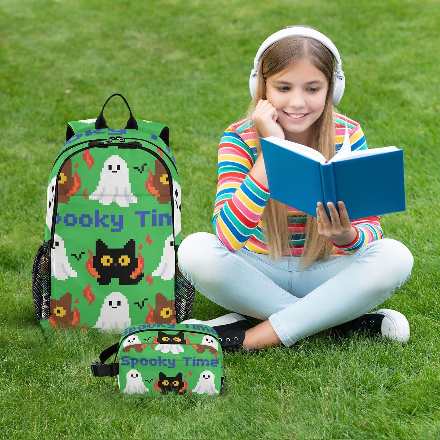 Dimensioni ombrello per bambini 35,5 '' in baldacchino, stand 65 cm quando chiuso, pesa 10,5 once. Adatto per bambini. Anti-UV. Rimani protetto dai dannosi raggi UV aggiungendo un tocco di dolcezza al tuo ensemble di giorni di pioggia. Striscia riflettente a 360°. Zaino con portapranzo per ragazzi La striscia riflettente a 360° può fornire luce ad alta visibilità durante la notte buia o nei giorni di pioggia per ricordare agli altri di evitare di ferire i tuoi bambini. Top di sicurezza Zaino e contenitore per il pranzo per ragazzi è liscio senza bordi taglienti, garantendo la sicurezza del bambino durante il gioco. Manico facile da impugnare. La borsa per libri per ragazze adolescenti con manico in plastica curva è progettata specificamente per i bambini, consente ai tuoi bambini di controllare facilmente l'ombrello anche in condizioni meteorologiche difficili. Coperture extra a coste Questo set di zaino e portapranzo ha un design con angoli arrotondati, impedisce ai bambini di essere pugnalati. Perfetto per rimanere preparati in viaggio, questo ombrello compatto e portatile è un accessorio indispensabile!