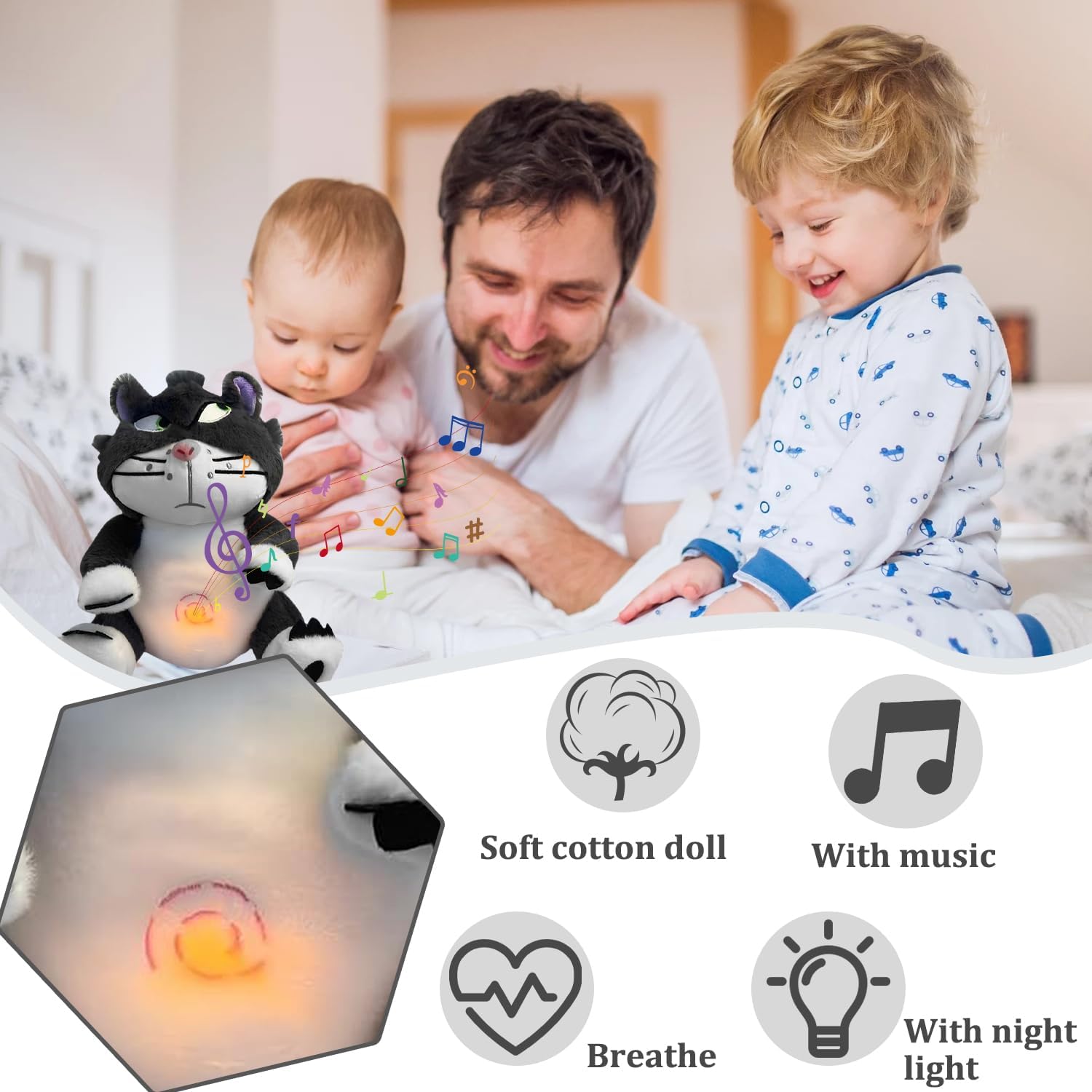🐨【Materiale di alta qualità】Il koala lenitivo è realizzato in peluche corto ultra morbido e resistente, che è morbido ed elastico e non si deforma facilmente. Cuciture di alta qualità, ogni dettaglio viene lavorato con cura. Il tessuto delicato sulla pelle fa sentire meglio la tua pelle, perfetta per coccolarsi e dormire. 🐨【Compagno di sonno rilassante】Questo koala peluche che respira addormentato con movimento respiratorio e musica fornisce suoni rilassanti e movimenti ritmici per confortare e calmare delicatamente il tuo bambino per creare un'atmosfera tranquilla e farlo addormentare delicatamente. 🐨【Luci soffuse e musica】Imitando i movimenti respiratori ritmici per calmare naturalmente il tuo bambino, il nostro koala che respira è dotato di musica e luci, aggiungendo un altro livello di tranquillità incentrata sul sonno per ragazzi e ragazze per aiutare a ottenere un riposo notturno migliore per tutta la notte. 🐨【Design portatile e accattivante】Il peluche lontre che respirano un design compatto e portatile, puoi portarlo facilmente con te ovunque vada il tuo bambino. Il peluche viene fornito con musica e luci, che possono suscitare la curiosità del tuo bambino e svolgere un ruolo educativo precoce nel riconoscimento del suono e nel tracciamento visivo. 🐨【Regalo premuroso】Questo peluche koala che respirano con luci e suoni è perfetto per neonati, bambini piccoli e bambini di tutte le età ed è un regalo amorevole per ragazzi e ragazze. Combina vista, udito e tatto per calmare i bambini nel modo in cui vogliono essere calmati e aiutarli ad addormentarsi.