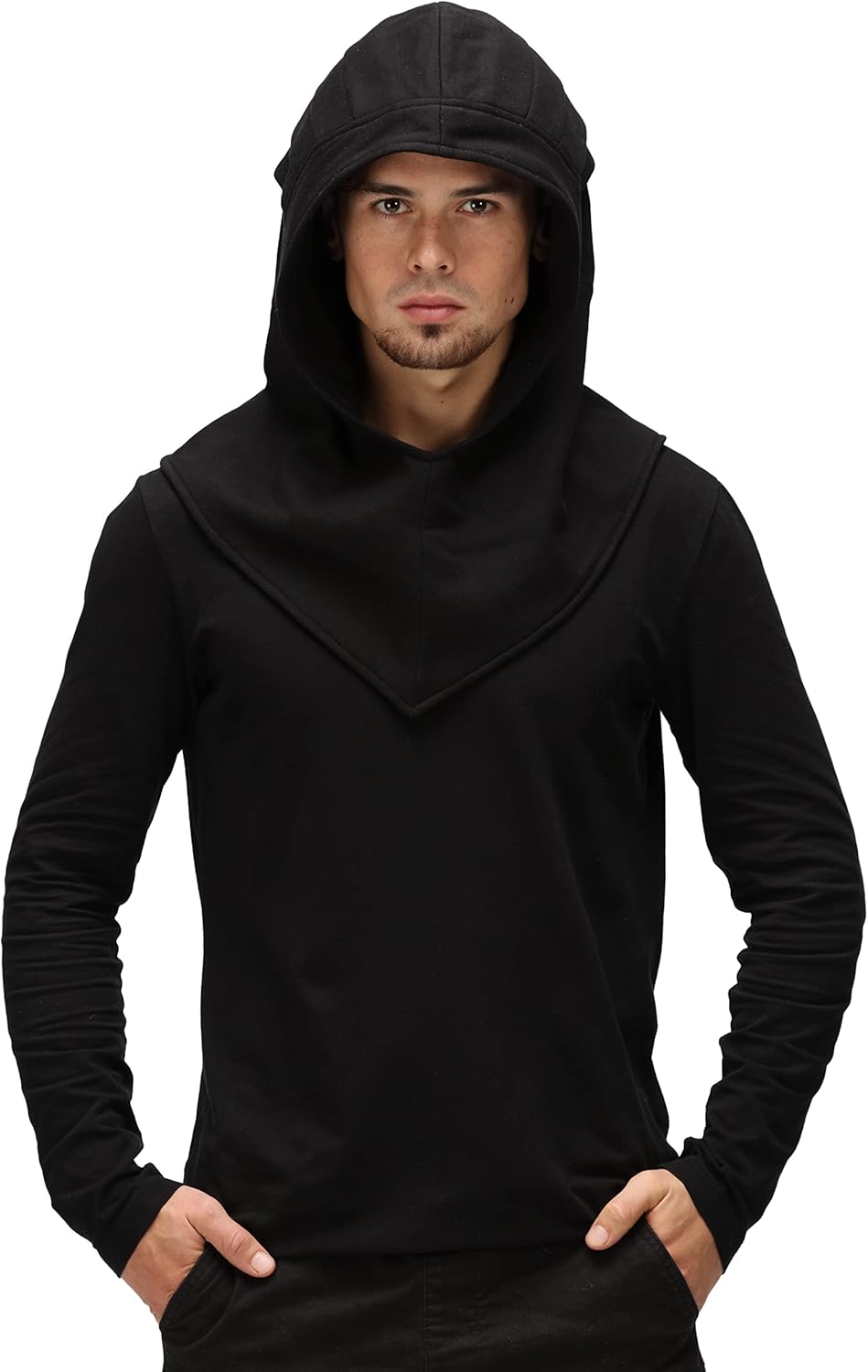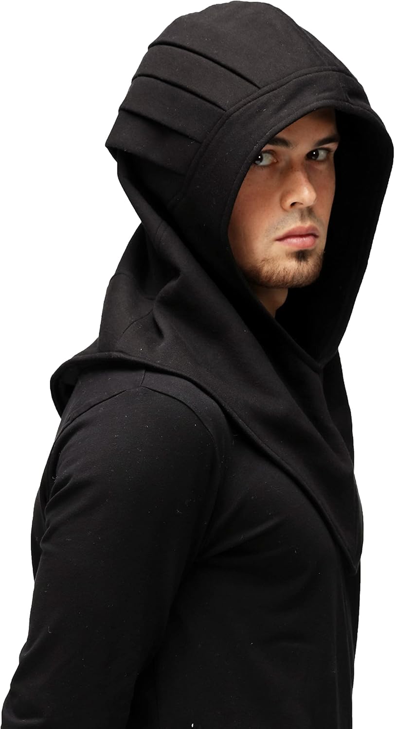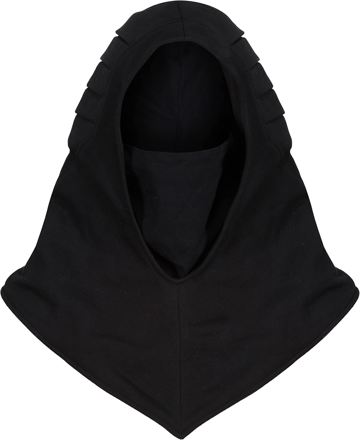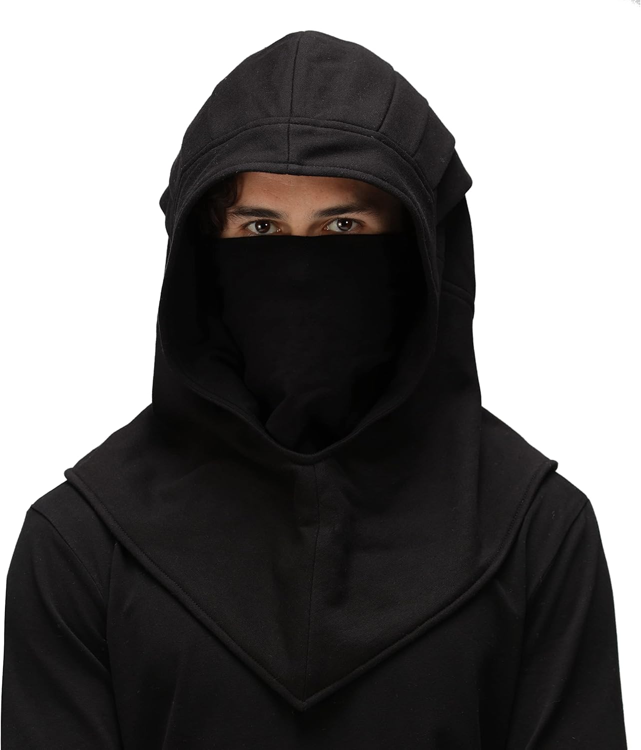 Può essere indossato per costumi, cosplay o abbigliamento casual. Progettato per adattarsi agli indumenti senza cappuccio e include una maschera facciale rimovibile.