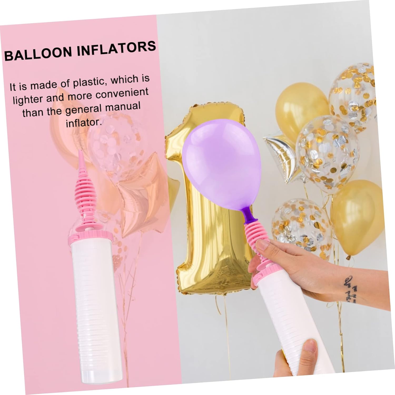 Pompa per palloncini portatile: realizzata in plastica di alta qualità, la pompa durerà a lungo, pompa per palloncini portatile Pompa per palloncini manuale: usa questo soffiatore per palloncini per riempire i palloncini più velocemente rispetto al soffiaggio a bocca, pompa per palloncini per feste Pompa ad aria gonfiabile: adatta per gonfiare palloncini, giubbotti di salvataggio e altri oggetti che necessitano di gonfiaggio, pompa manuale per gonfiabili Pompa per palloncini: un'eccellente utilità per tutti i lavoratori di palloncini, siano essi professionisti o dilettanti, pompa per palloncini Gonfiatore manuale per palloncini: di piccole dimensioni e leggero, comodo da trasportare e utilizzare in viaggio, pompa manuale per palloncini