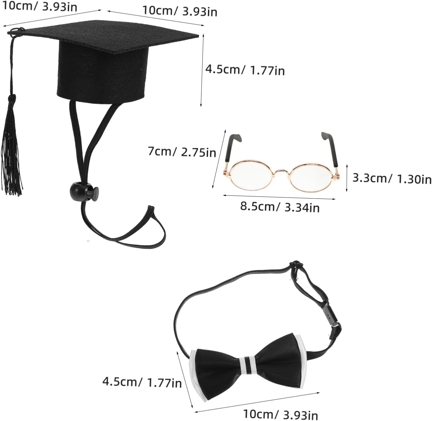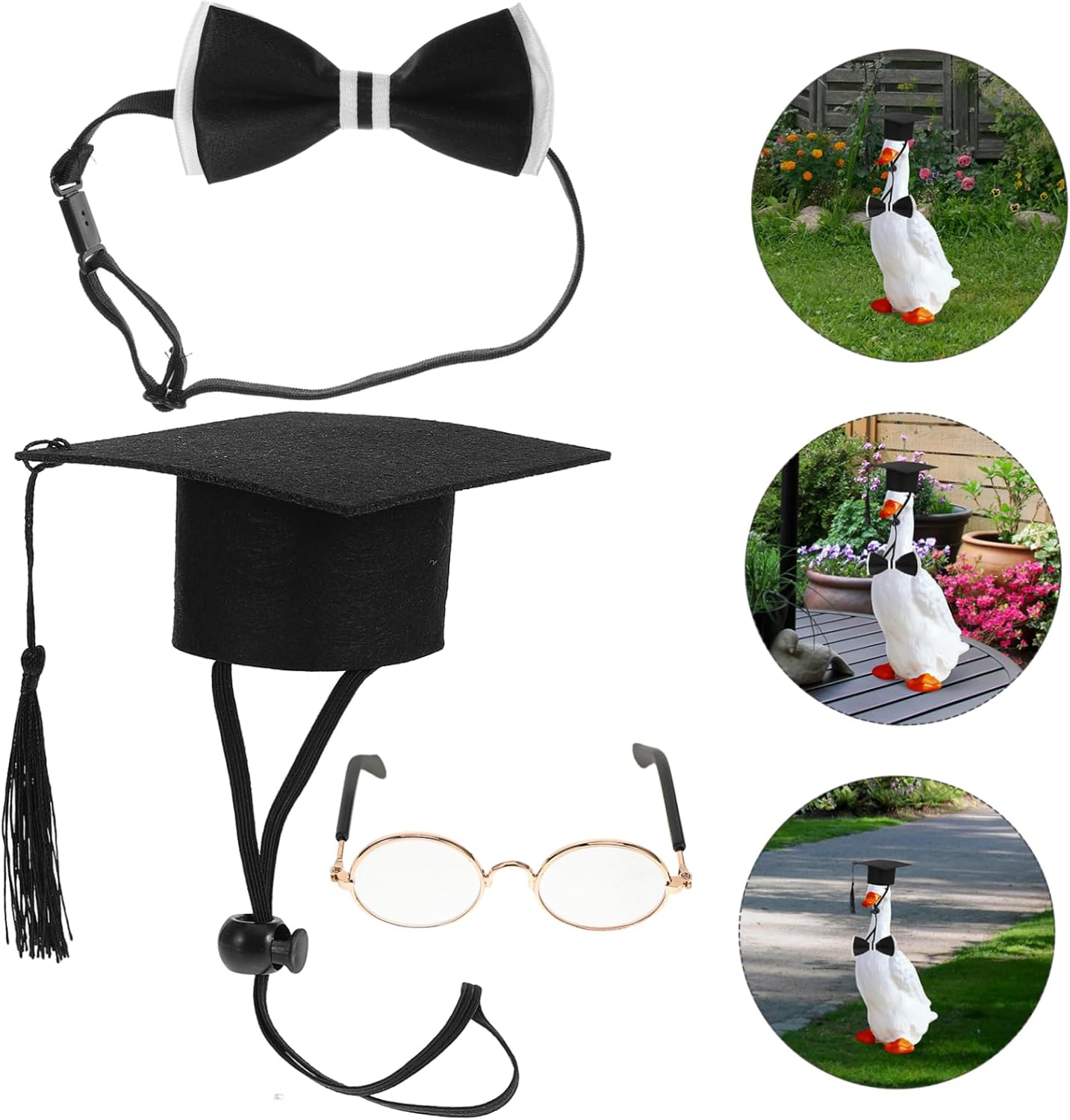 Il pacchetto include 1 x berretto da laureato 1 x occhiali da laureato 1 x Caratteristiche -Colore: costume -Design unico: il set di cappelli da laurea aggiunge un tocco festoso ai vestiti da festa di laurea - Dimensioni: 8,50X7,00X3,30 cm / 3,34X2,75X1,30 pollici (occhiali) accessorio per costume da festa per animali domestici -Installazione semplice: crea rapidamente un'atmosfera di festa di laurea con un cappello da laurea per l'oca da prato - Uso versatile: ideale per lauree scolastiche, così come per celebrazioni, ufficio e altri luoghi di laurea. -Materiale: poliestere, feltro, cappelli di plastica per animali domestici -Nota: adatto per il costume da laurea da oca da veranda da 23 pollici - Dimensioni: 10,00X4,50X2,00 cm / 3,93X1,77X0,79 pollici ( ) accessori per costumi di laurea -Atmosfera festosa: questa decorazione a forma di oca porta una scena alle cerimonie di laurea o alle feste di laurea come oggetti di scena per foto. - materiale durevole: garantisce la longevità e l'attrattiva visiva della decorazione, adatto a molteplici usi. - Dimensioni: 10,00X10,00X4,50 cm / 3,93X3,93X1,77 pollici (tappo) accessori per la laurea Descrizione della merce cappelli per animali domestici Questo set è realizzato con materiali affidabili, che garantiscono durata e comfort per il tuo animale domestico. cappello da laureato Il set include un grazioso cappello da laurea e cravatta, occhiali, progettati per adattarsi all'oca del portico. cappello da laureato dell'oca Questo adorabile set di costumi da laurea per animali domestici è per vestire la tua oca del portico per qualsiasi occasione festiva