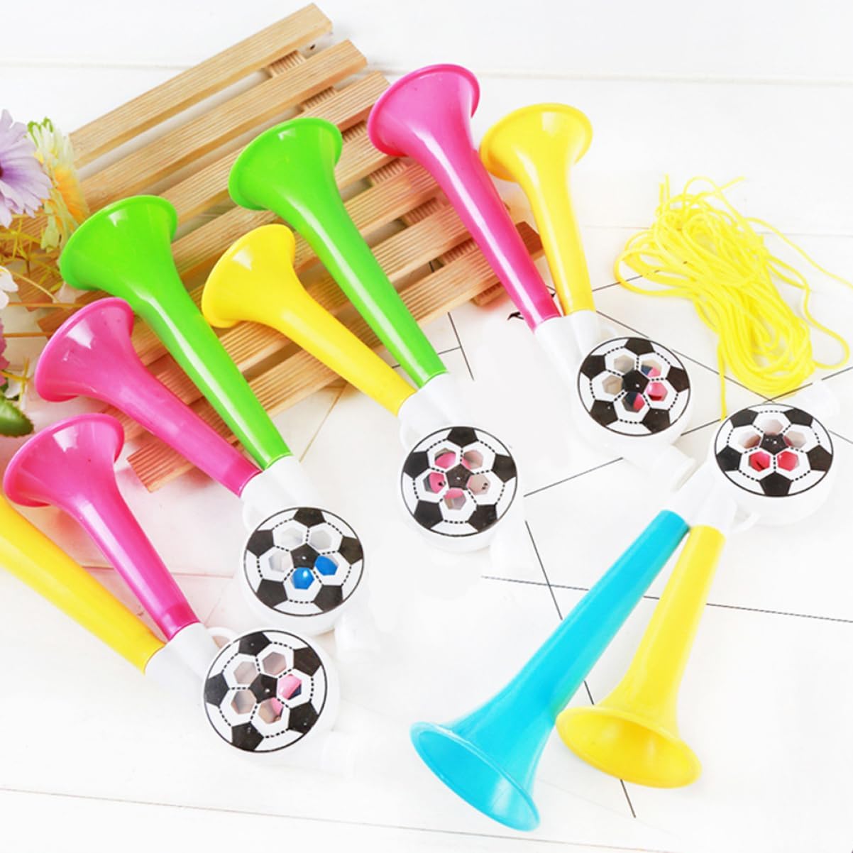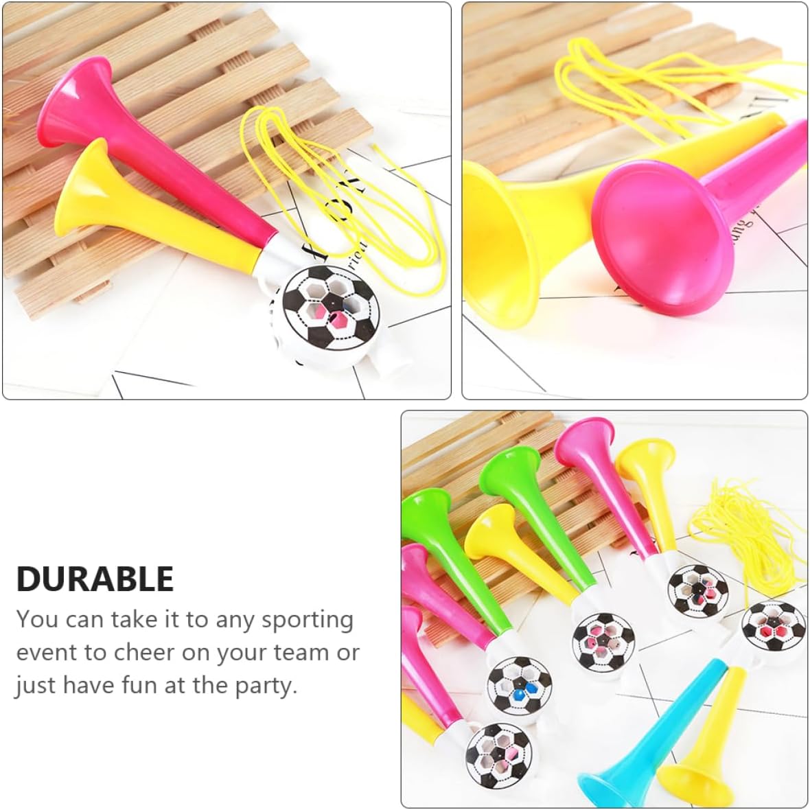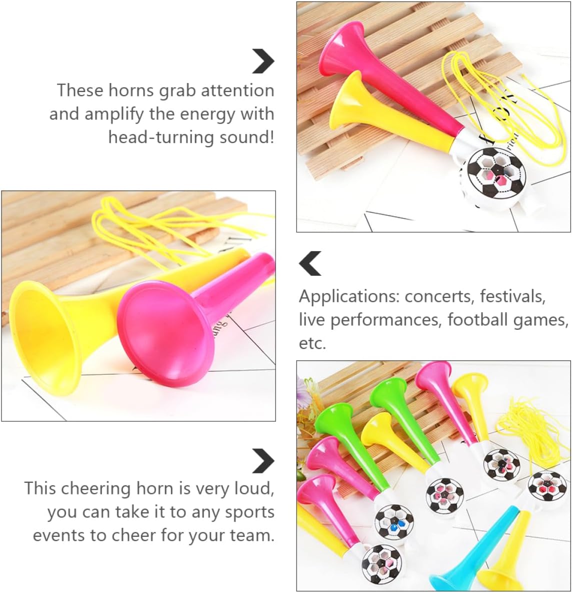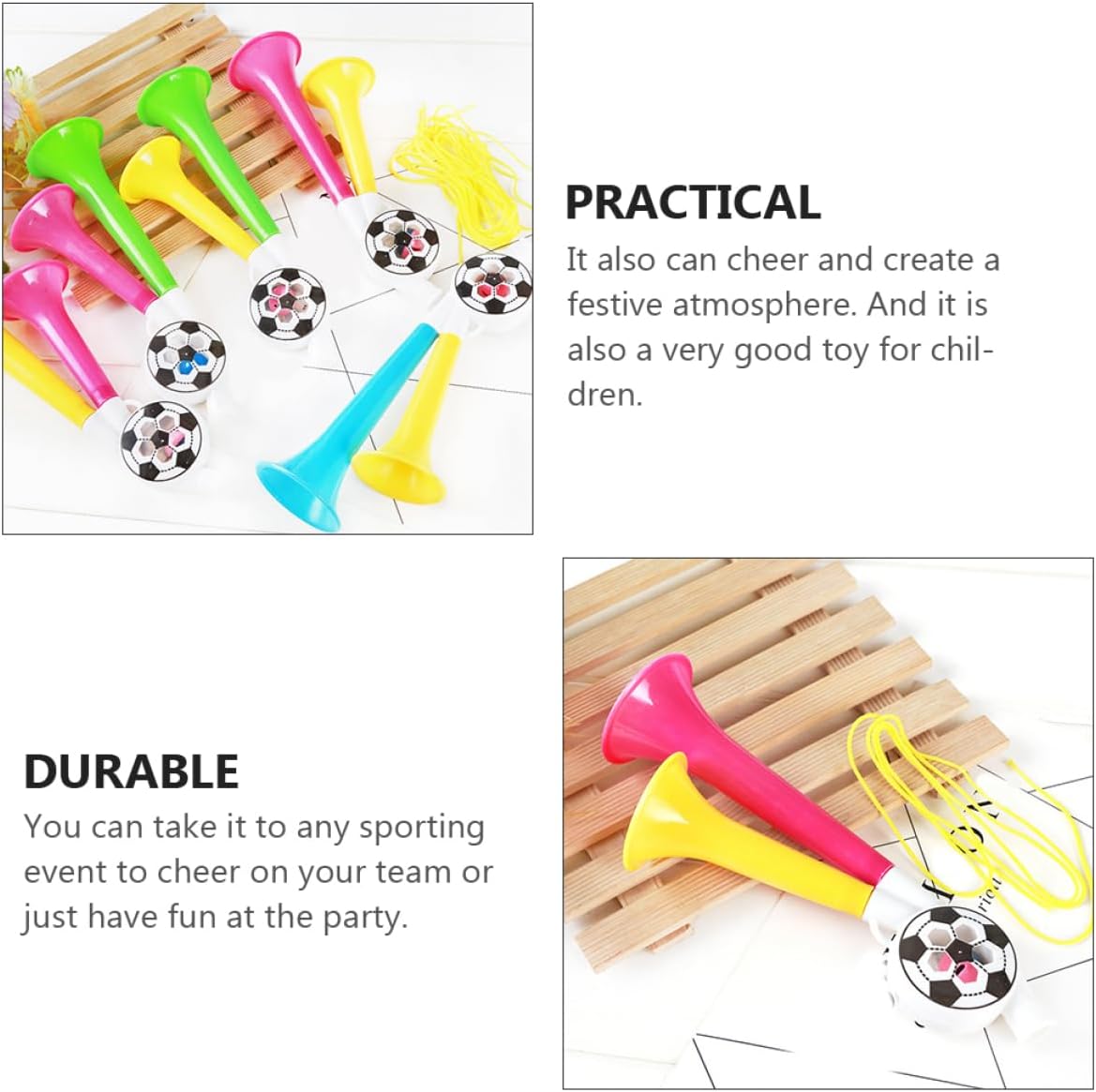 Giocattoli a tromba portatili: sorprendili con i suoni forti per partite sportive, feste, lauree e altro ancora, corno per il tifo Pompa a tromba d'aria: per celebrare feste ed eventi sportivi, rendendo la scena piena di energia e un'atmosfera giubilante, oggetti di scena per il tifo Corni di plastica: i colori vivaci cattureranno l'attenzione delle persone e ti faranno notare facilmente tra la , ottimi accessori per ravvivare la tua festa, oggetti di scena per creare rumore Applicazioni: concerti, festival, spettacoli dal , partite di calcio, ecc., giocattoli di tromba di plastica, tromba d'aria da Trombe d'aria per feste: questa tromba da festa può essere utilizzata anche come un giocattolo per , tromba da festa per