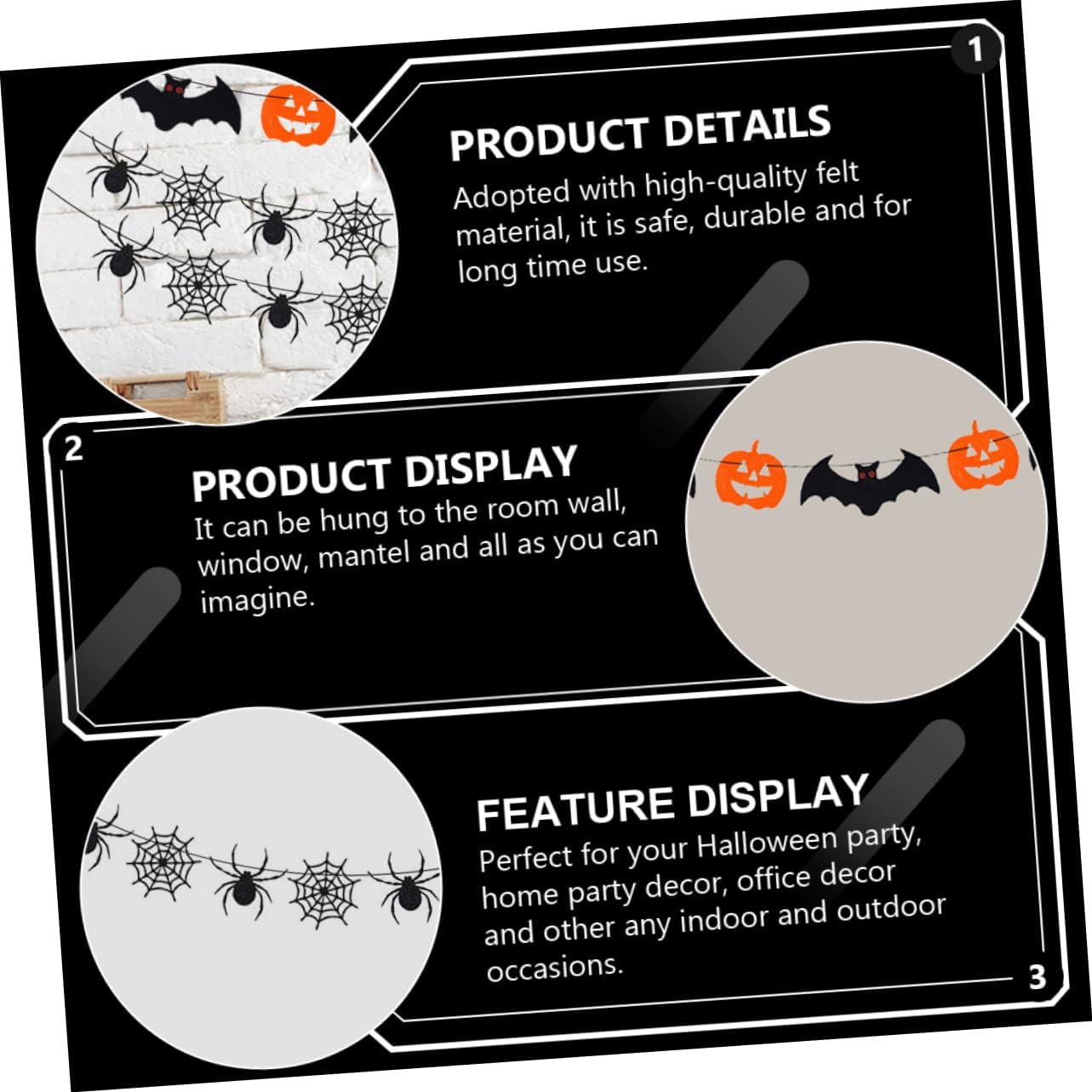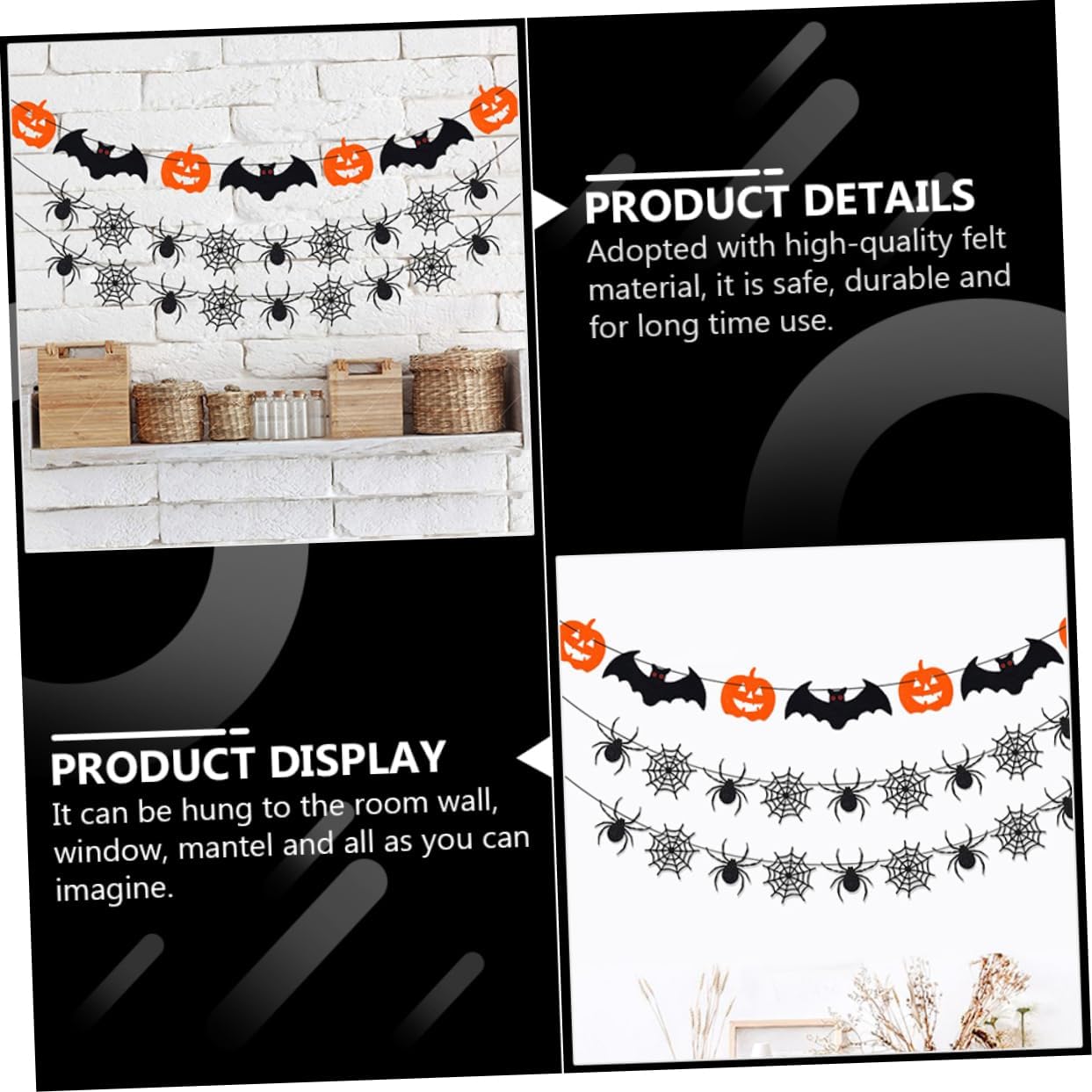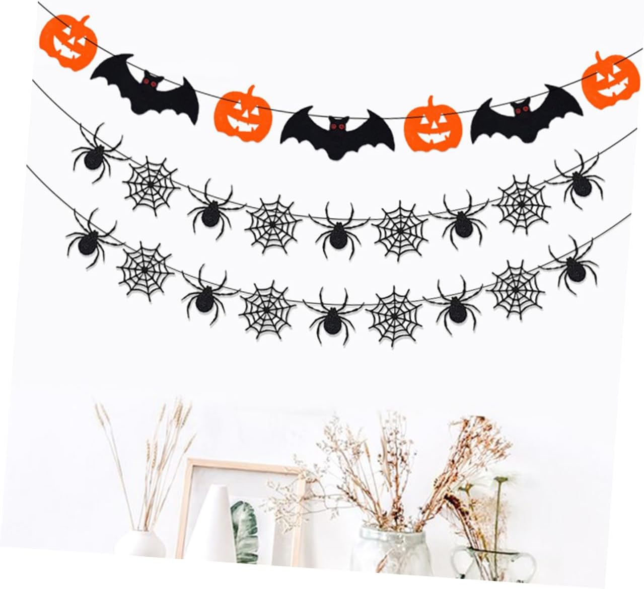Ornamenti di Halloween: possono essere appesi alla parete della stanza, alla finestra, alla mensola del camino e a qualsiasi cosa tu possa immaginare come uno striscione sospeso di Halloween. Striscioni per feste sospesi: possono essere appesi a pareti, finestre, rami, porte e altri luoghi, eccellenti decorazioni per interni o esterni, striscioni sospesi di Halloween. Oggetti di scena decorativi per il festival: questo banner riutilizzabile, puoi riciclarlo e metterlo insieme per il prossimo utilizzo, ciondolo a forma di zucca di Halloween. Ghirlanda di ragnatela sospesa - Decorazione per feste in maschera di Halloween, casa, ingresso, pub, ufficio, centro commerciale, mensola o muro, streamer di Halloween. Decorazioni per striscioni: contiene ricchi elementi di Halloween per creare una divertente festa di Halloween per te, oggetti di scena per la festa di Halloween.