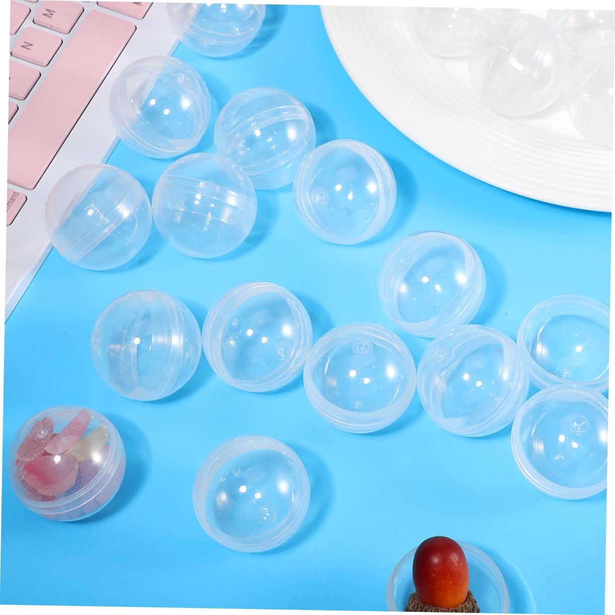 Elemento a sorpresa: crea indimenticabili con queste capsule riempibili, ideali per nascondere piccoli giocattoli, caramelle o premi, per deliziare e per gli adulti. Capsule giocattolo a forma di cartone animato, capsule rotonde vuote, contenitori in plastica Compatibilità: adatto a diversi distributori automatici, facile da usare e adattarsi a diversi temi, rendendoli versatili per adatti per capsule a sfera prezzo, piccole capsule rotonde Design ecologico: la riutilizzabilità consente più ricariche, favorisce la sostenibilità e allo stesso tempo offre infinite possibilità per capsule creative, vuote, capsule rotonde trasparenti Design salvaspazio: compatte e leggere, queste capsule sono facili da conservare e trasportare e garantiscono per uso personale e professionale, capsule automatiche in gomma da masticare, capsule rotonde vuote Design a sorpresa creativo: porta tensione alle tue feste con queste custodie rotonde. Sono ideali per creare esperienze interattive e sorprendere gli ospiti con tesori nascosti. Capsule vuote trasparenti, capsule automatiche vuote