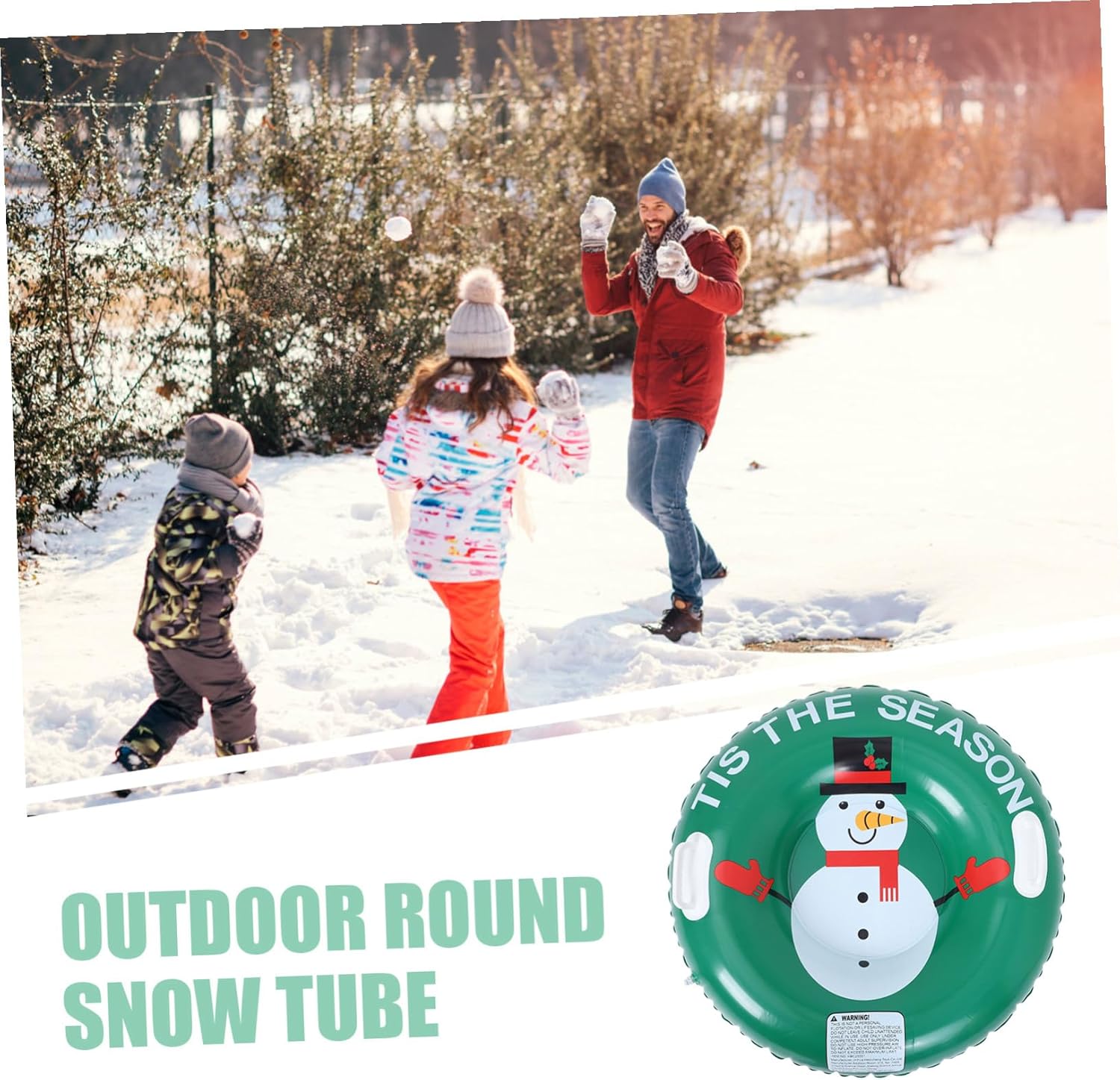 Indispensabili per tutta la famiglia all'aria aperta: i tubi gonfiabili per slittino sono versatili e adatti sia per adulti che per bambini come tubi da neve per lo slittino, come tubi da neve portatili e come tubi per gli sport invernali Gonfiaggio e stoccaggio rapidi: la slitta da neve portatile è dotata di un sistema di gonfiaggio e sgonfiaggio rapido, che la rende facile da trasportare, riporre e preparare per avventure spontanee in slitta all'aria aperta. robusta slitta per l'inverno, snowtube per uso esterno Materiali: i materiali ispessiti dello snowtube sono resistenti alle crepe e al freddo, garantendo che i ciclisti di slittino godano di calore e comfort nelle loro attività all'aperto con slittino da neve, scivoli all'aperto e snowtube per adulti Forma festosa: i tubi da slitta con design a pupazzo di neve aggiungono un tocco in più alla neve e rendono indimenticabili gli snowtube invernali Esperienza per viaggi in famiglia e feste stagionali Vestibilità universale: questo pneumatico gonfiabile per slittino è adatto a bambini, neonati e adulti e supporta utenti di tutte le età. È lo pneumatico da slittino per famiglie, lo pneumatico da neve per l'inverno e lo pneumatico da neve per i bambini piccoli