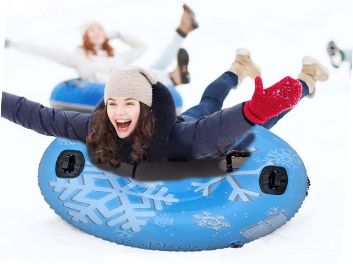 Slitta da neve gonfiabile: le maniglie rinforzate su due lati garantiscono una presa sicura e una manovrabilità in modo che rimanga saldamente in posizione durante lo slittino. Tubo da neve in PVC per pneumatici da neve per carichi pesanti: è caratterizzato da resistenza alle basse temperature e lunga durata, non devi preoccuparti di problemi di sicurezza, slitta da neve gonfiabile con tubo da sci: può essere piegato e imballato dopo lo sgonfiaggio. Arrotolalo nelle borse quando non lo usi, risparmia spazio ed è facile da trasportare. Slitta da neve invernale all'aperto Tubo da sci gonfiabile in PVC: il tubo da neve da sci è la scelta migliore per divertirsi allenandosi all'aperto in inverno. Pneumatico da neve gonfiabile per tubo da sci all'aperto: in inverno puoi portarlo con la tua famiglia e trascorrere un piacevole inverno. slitta da neve in pvc