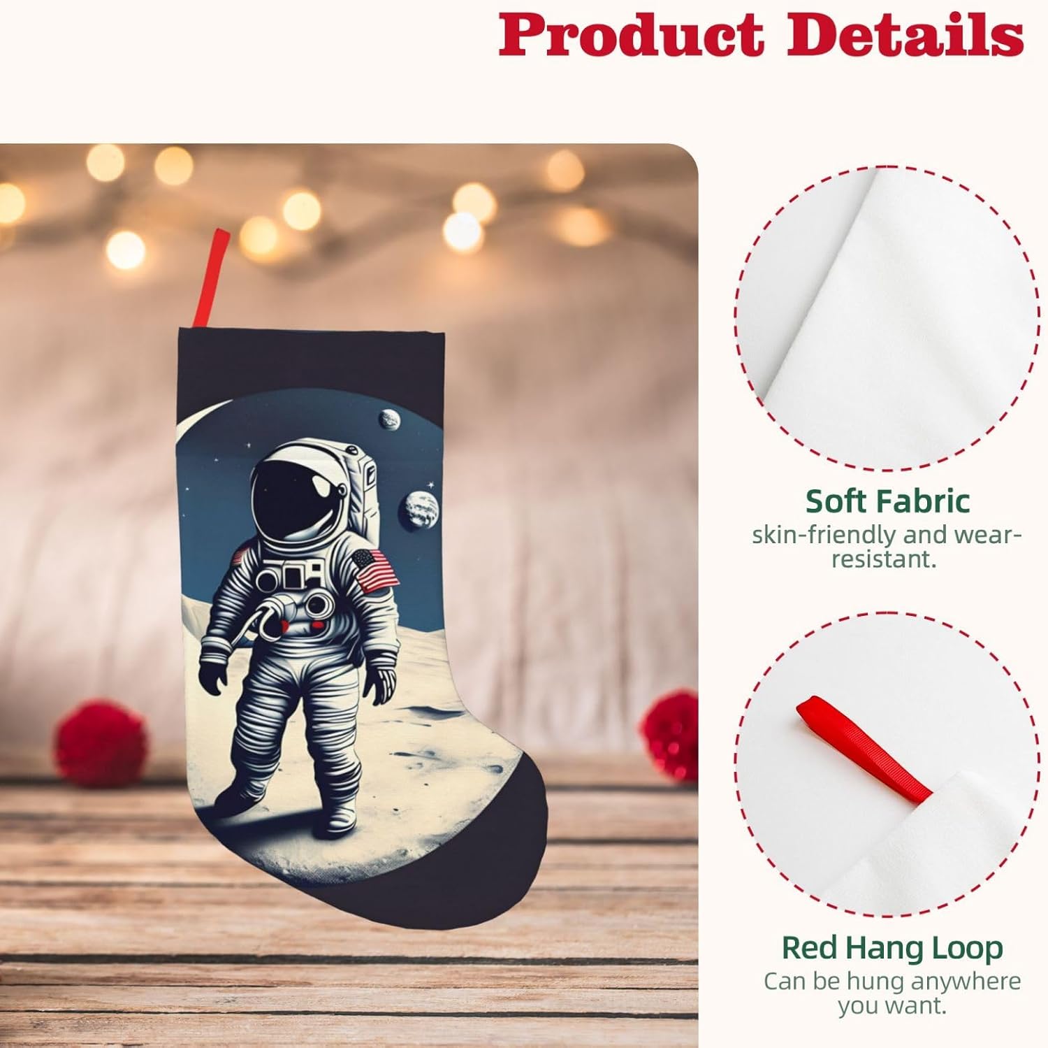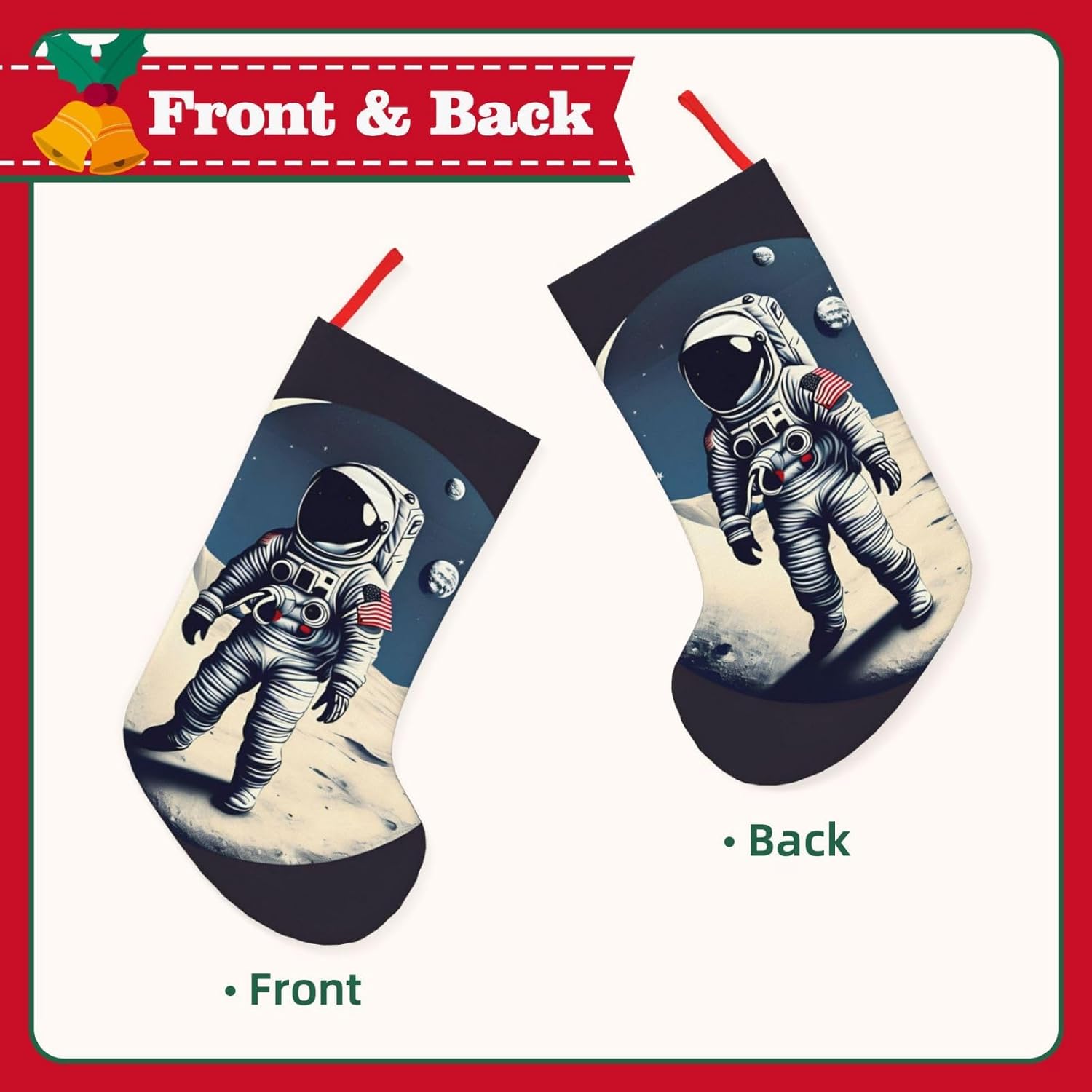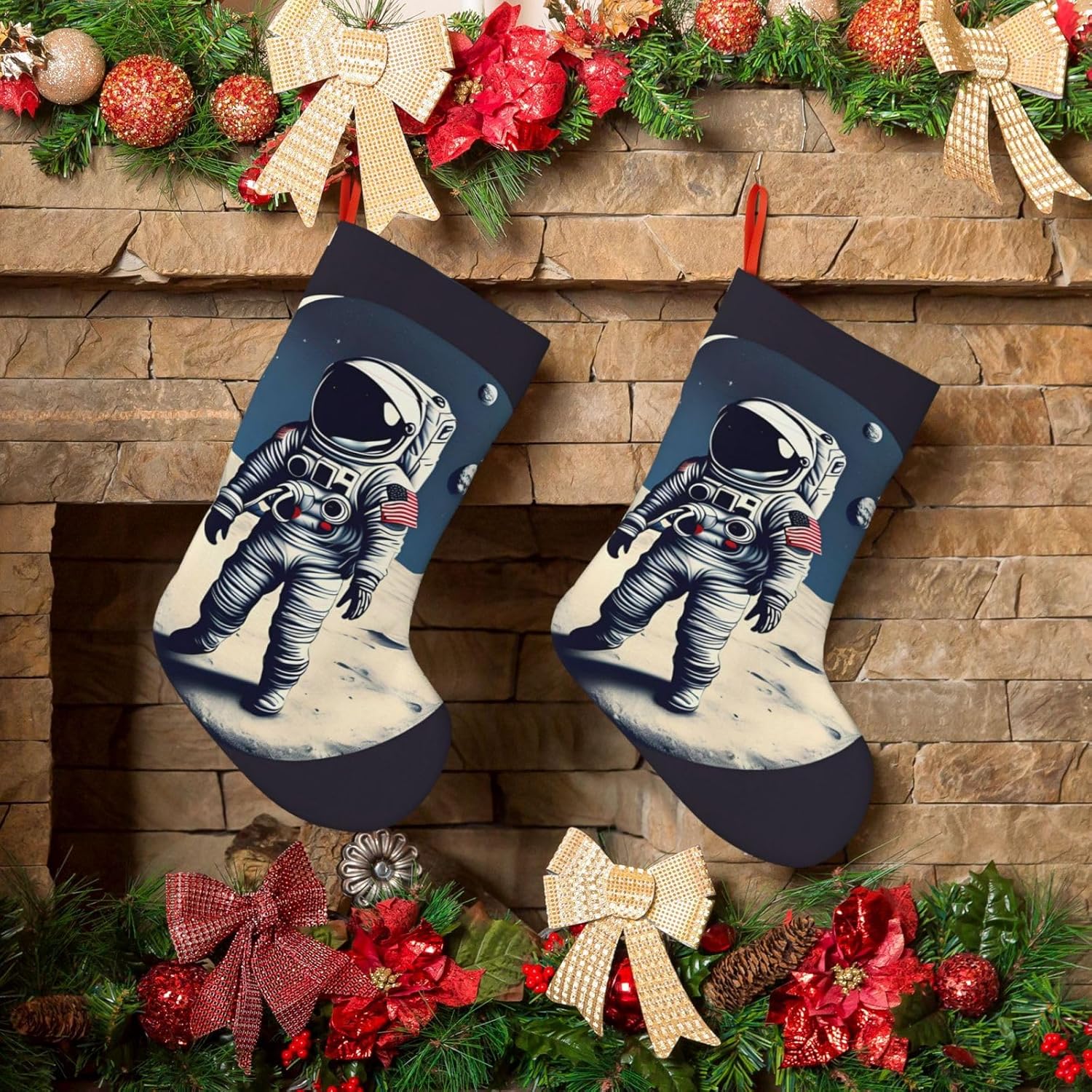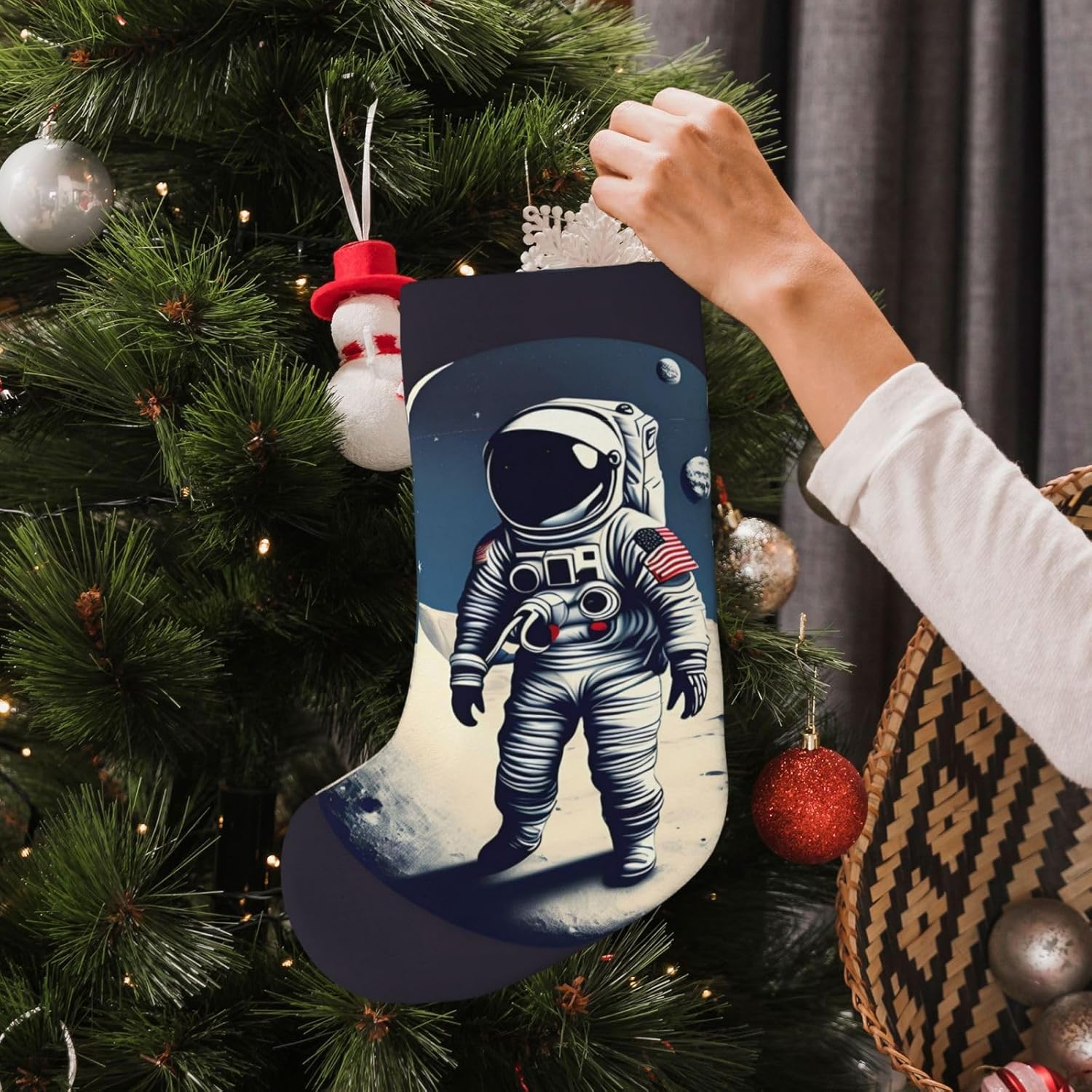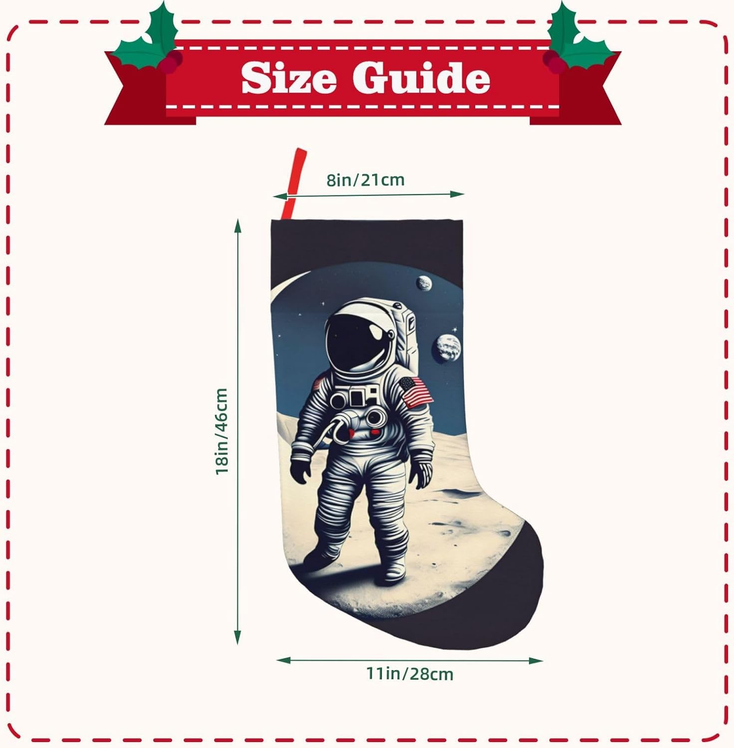 KoNsev Calza di Natale da 45,7 cm per ragazzi e ragazze, grandi calze di Natale per vacanze in famiglia, festa di Natale, stampa astronauta sulla luna