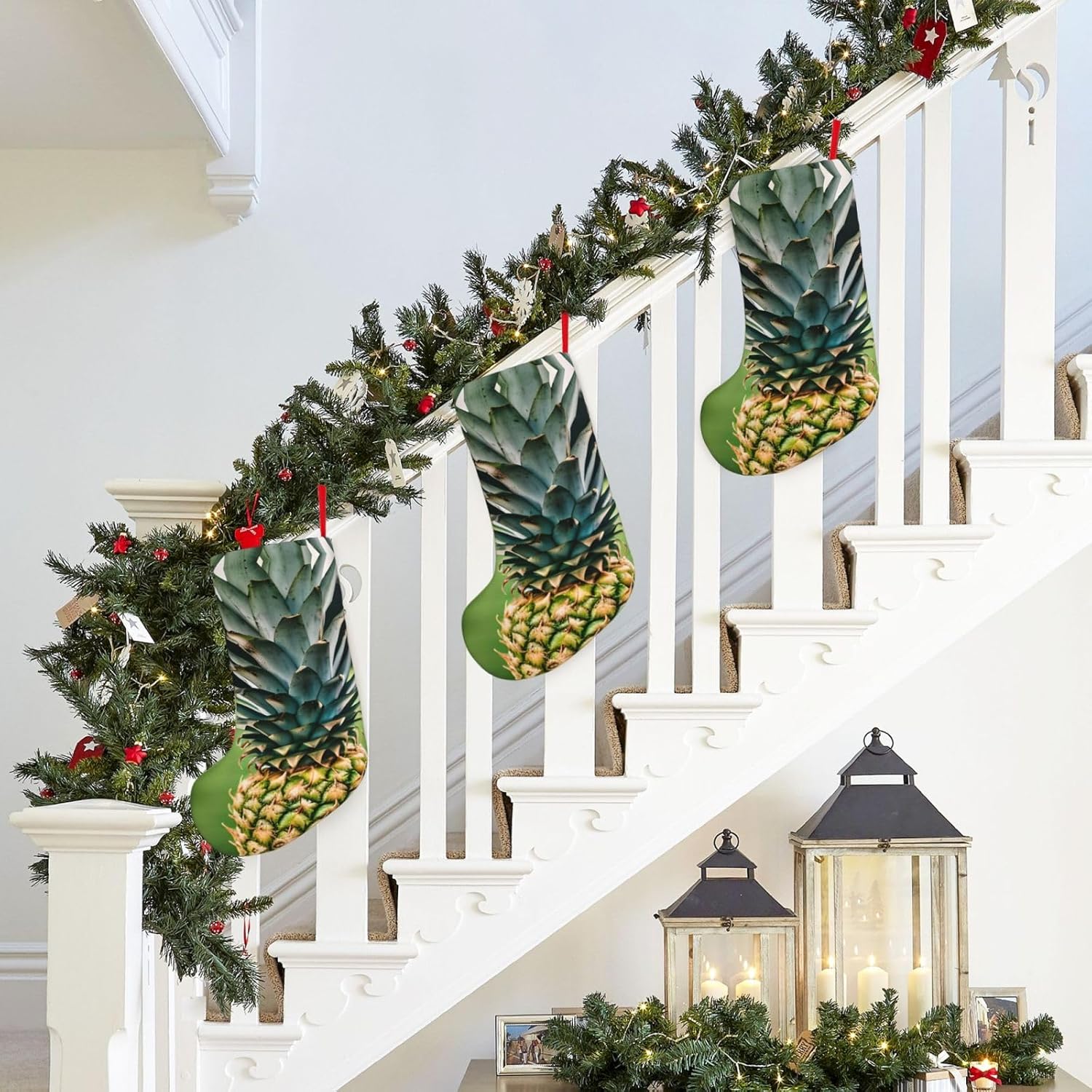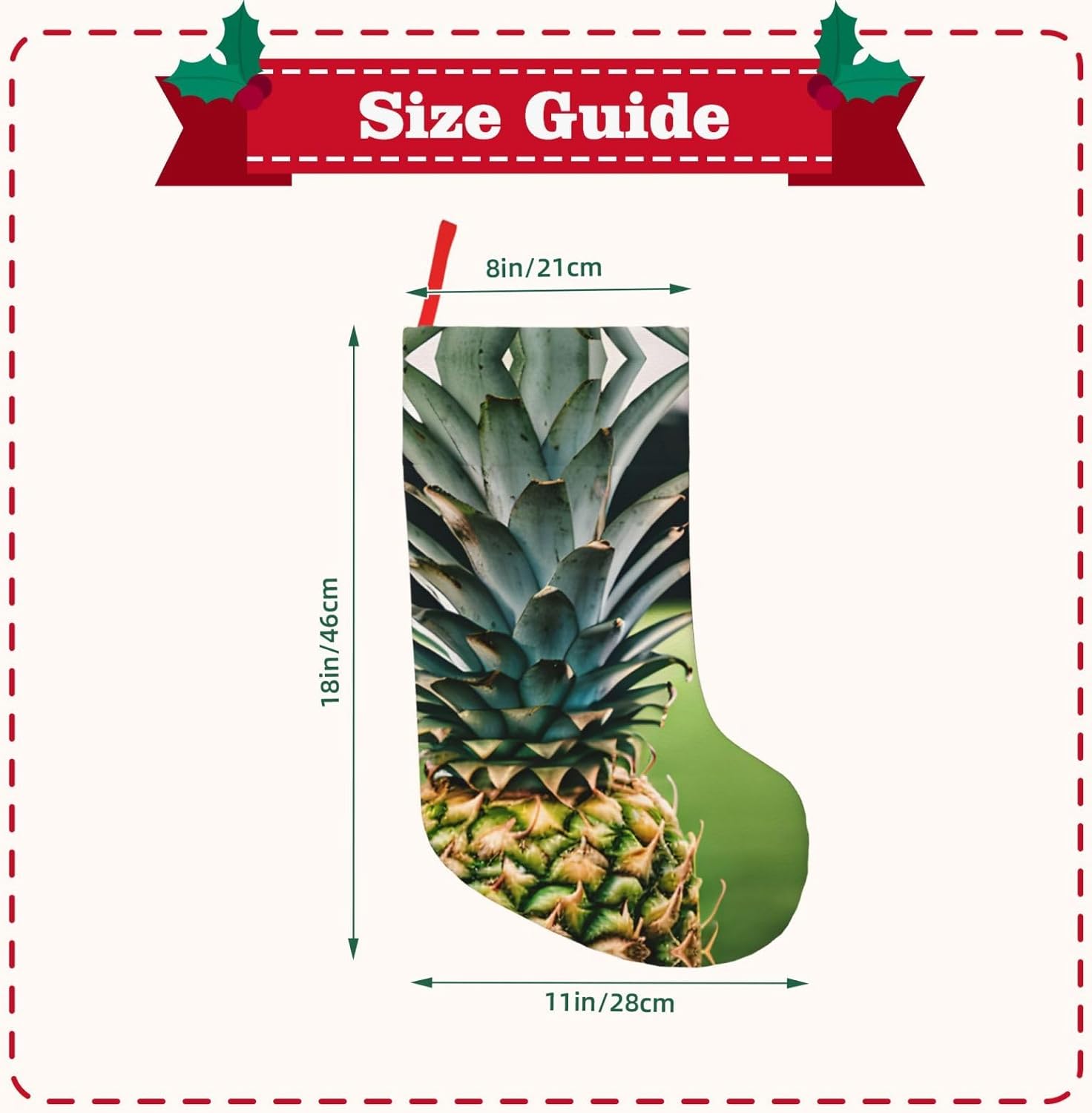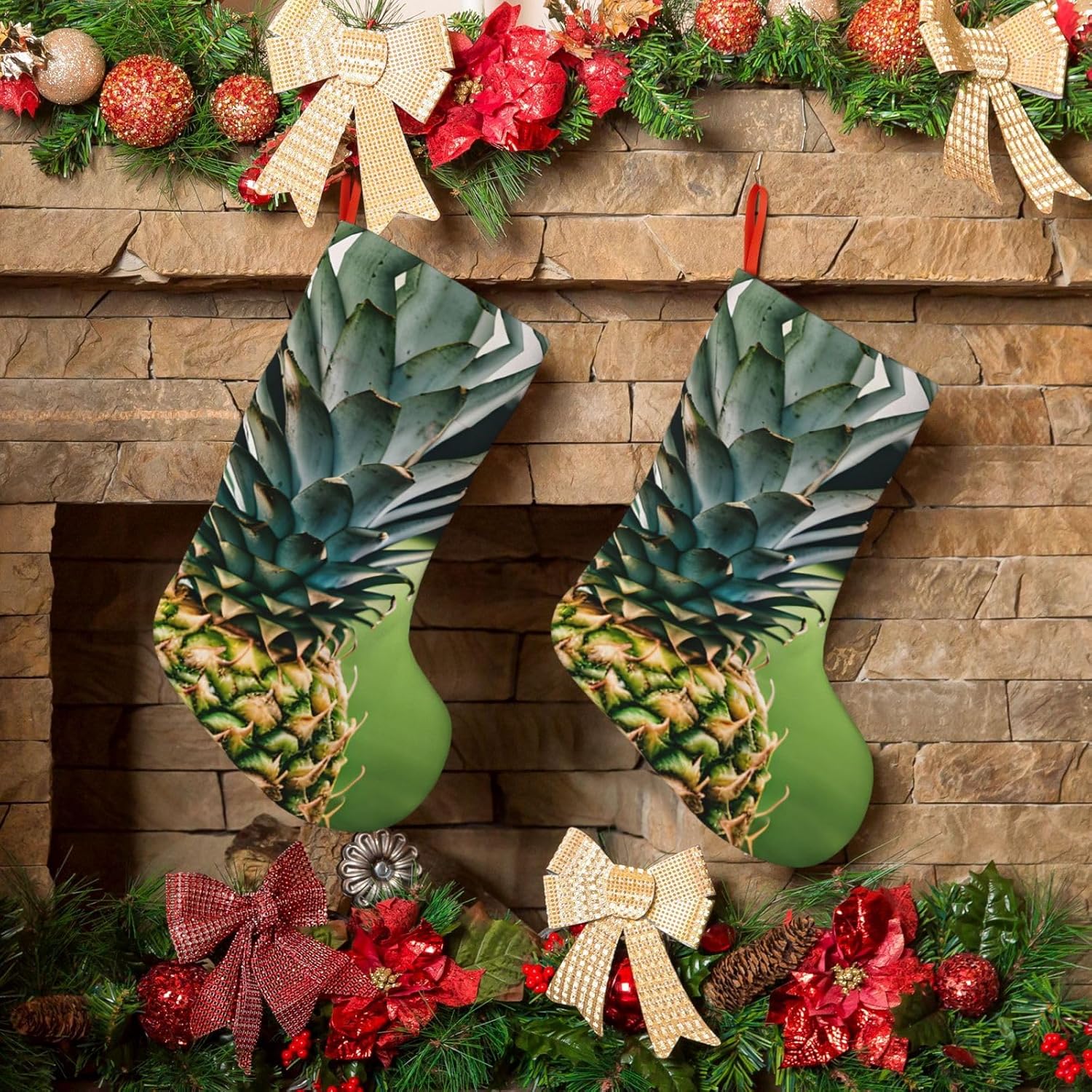 KoNsev Calza di Natale da 45,7 cm per ragazzi e ragazze, grandi calze di Natale per vacanze in famiglia, festa di Natale, stampa con ananas