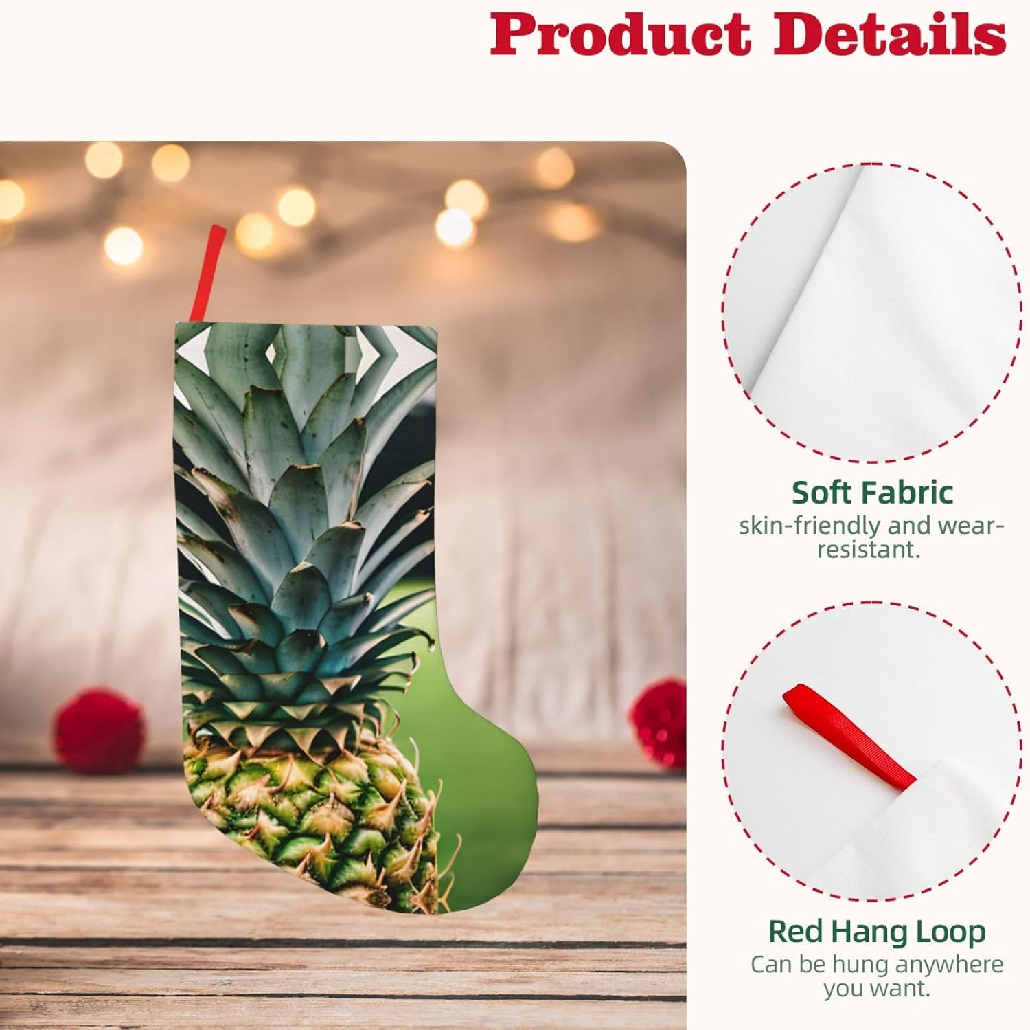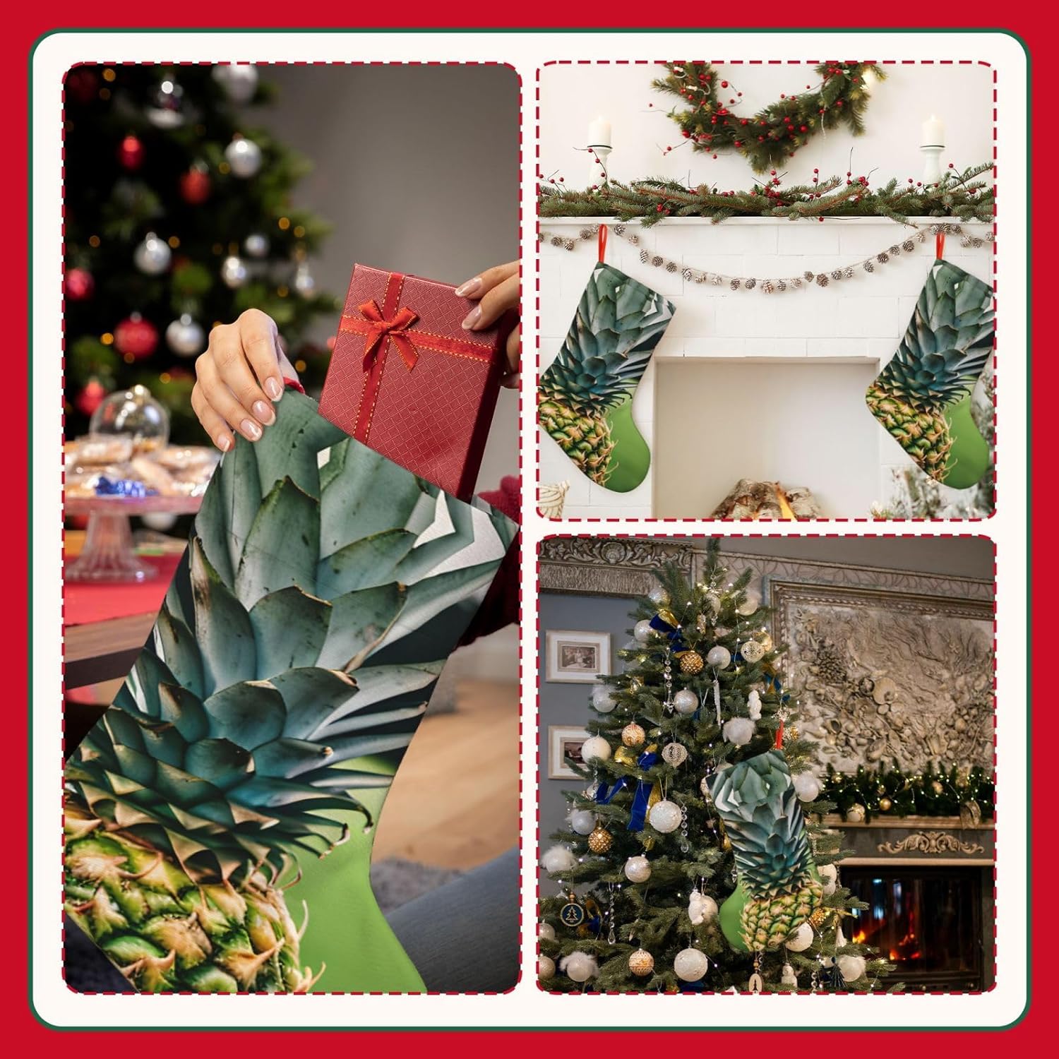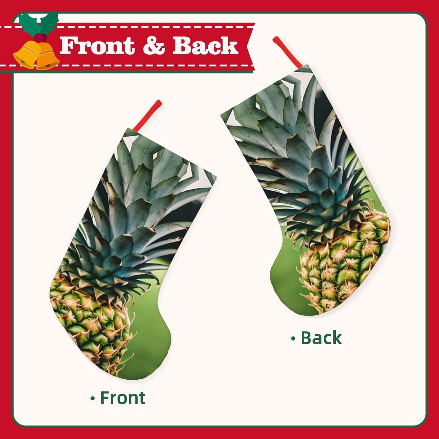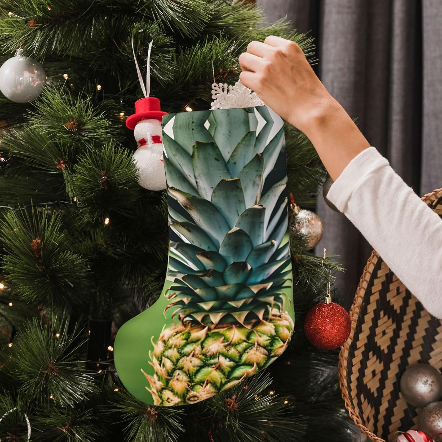 KoNsev Calza di Natale da 45,7 cm per ragazzi e ragazze, grandi calze di Natale per vacanze in famiglia, festa di Natale, stampa con ananas