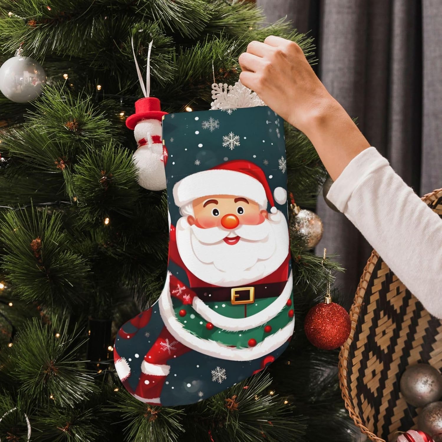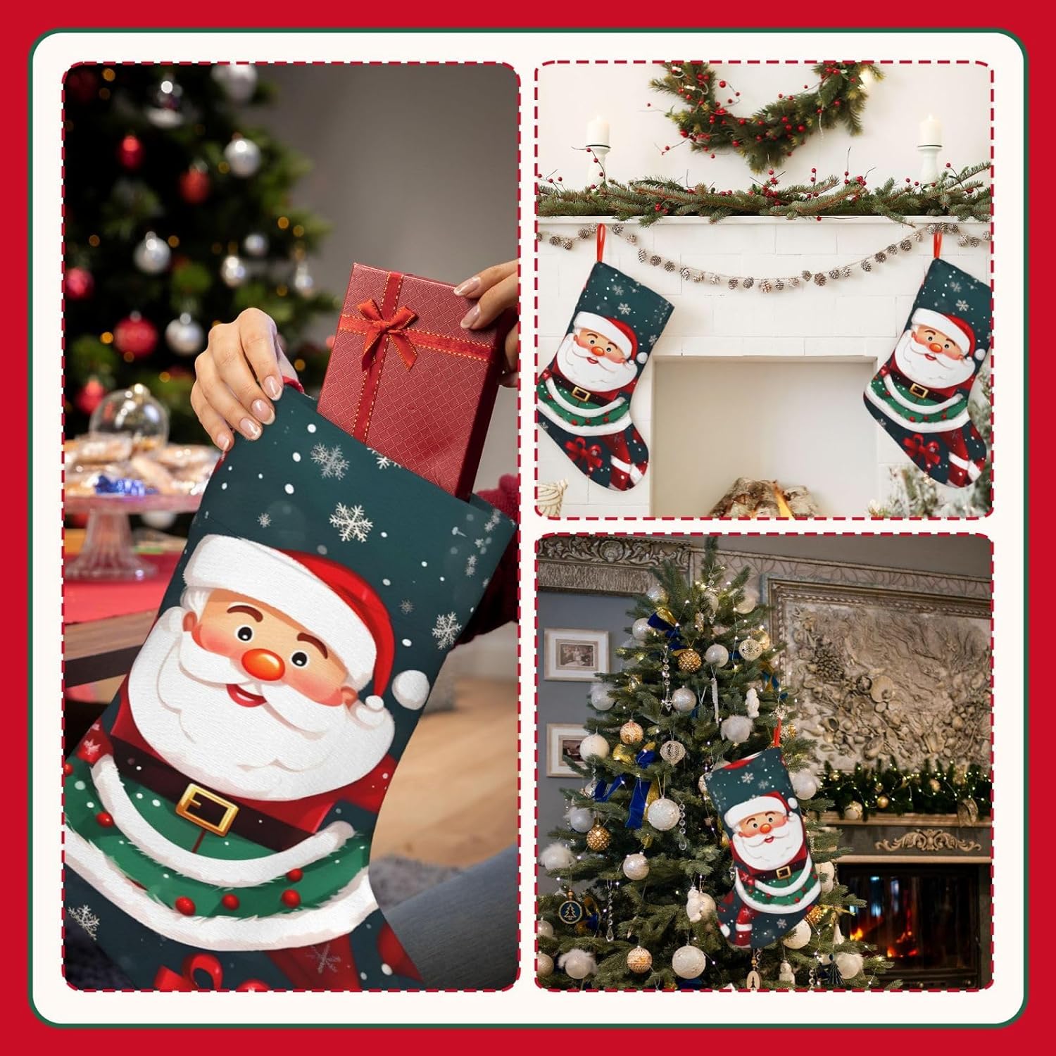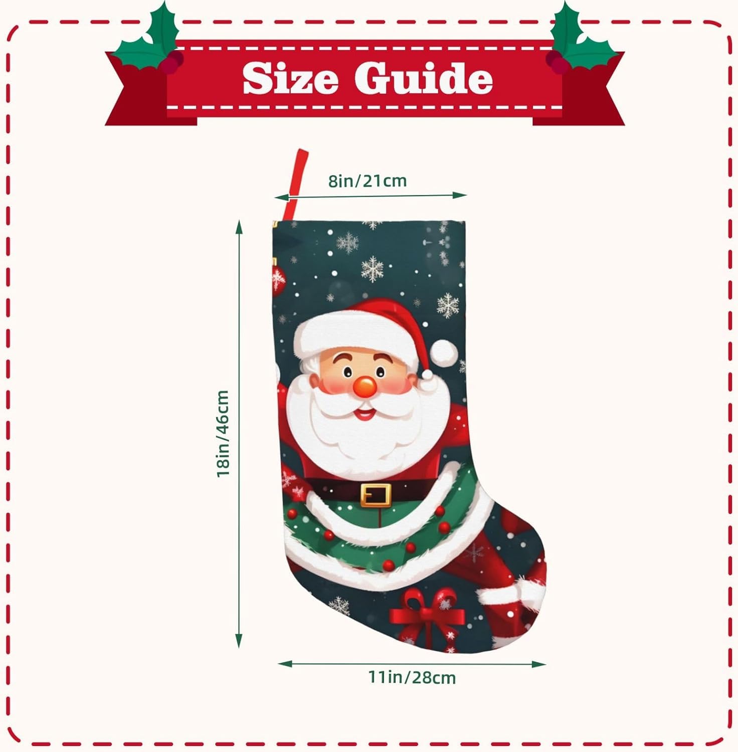 KoNsev Calza di Natale da 45,7 cm per ragazzi e ragazze, grandi calze di Natale per vacanze in famiglia, festa di Natale, stampa con Babbo Natale