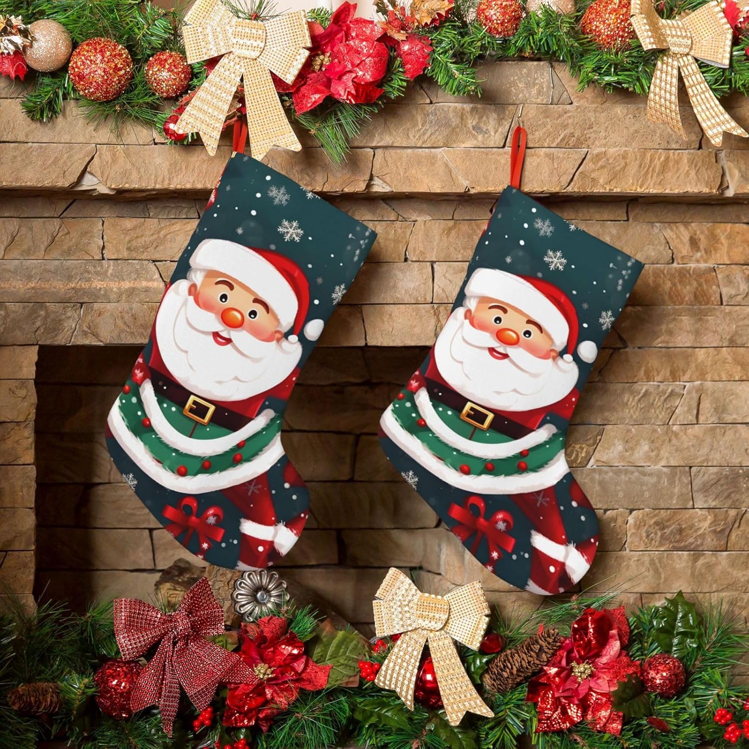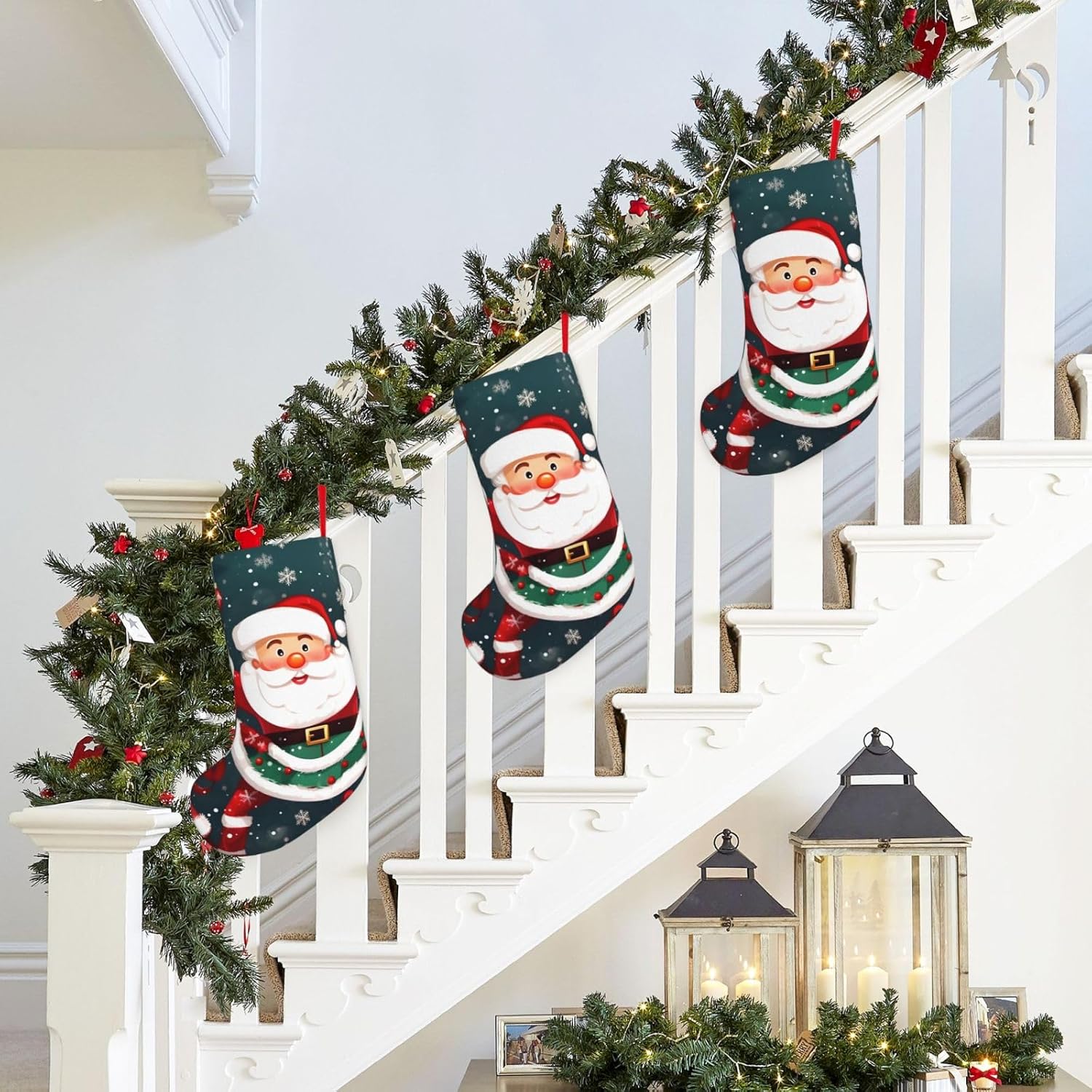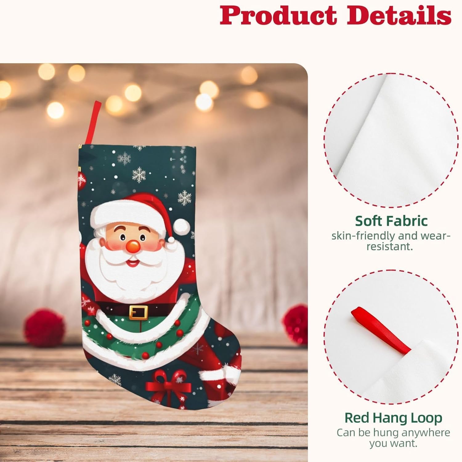 KoNsev Calza di Natale da 45,7 cm per ragazzi e ragazze, grandi calze di Natale per vacanze in famiglia, festa di Natale, stampa con Babbo Natale