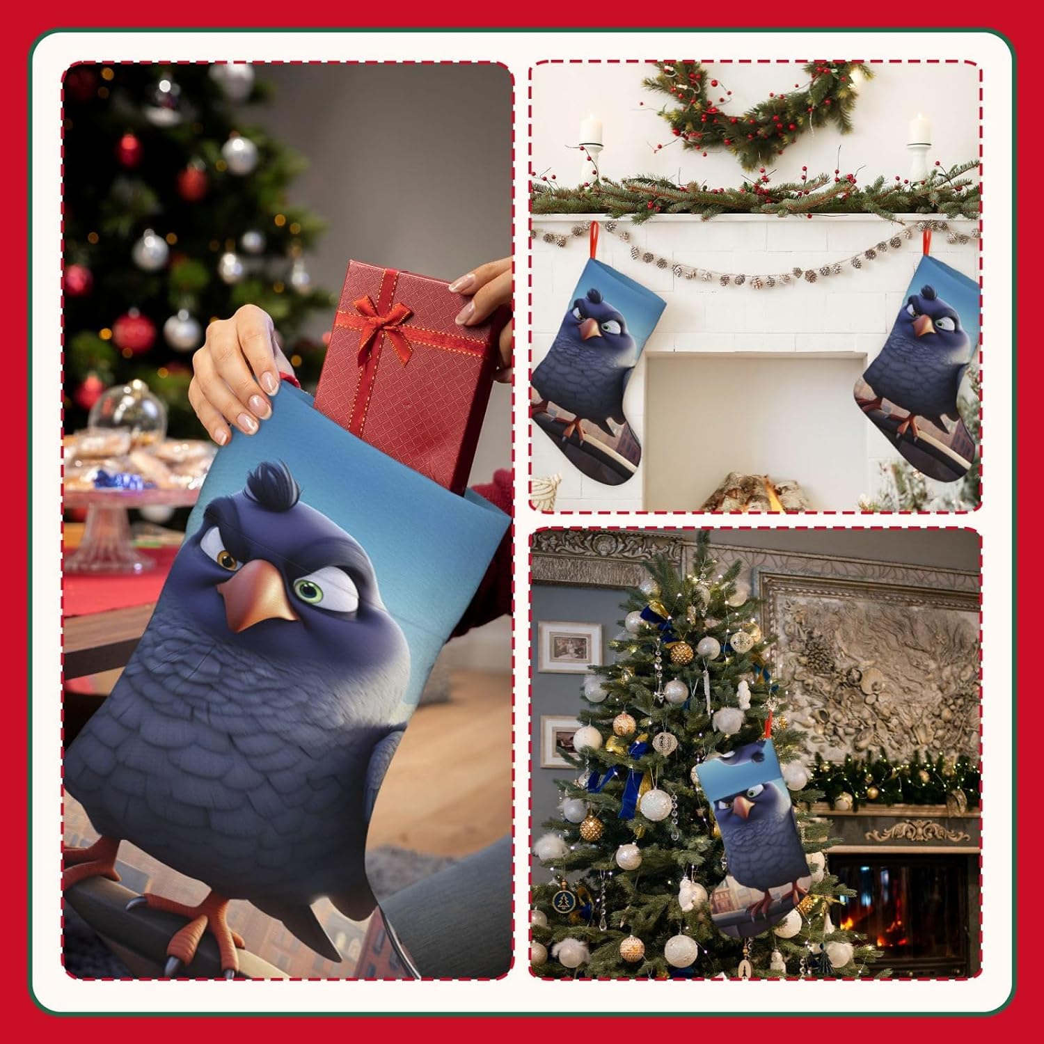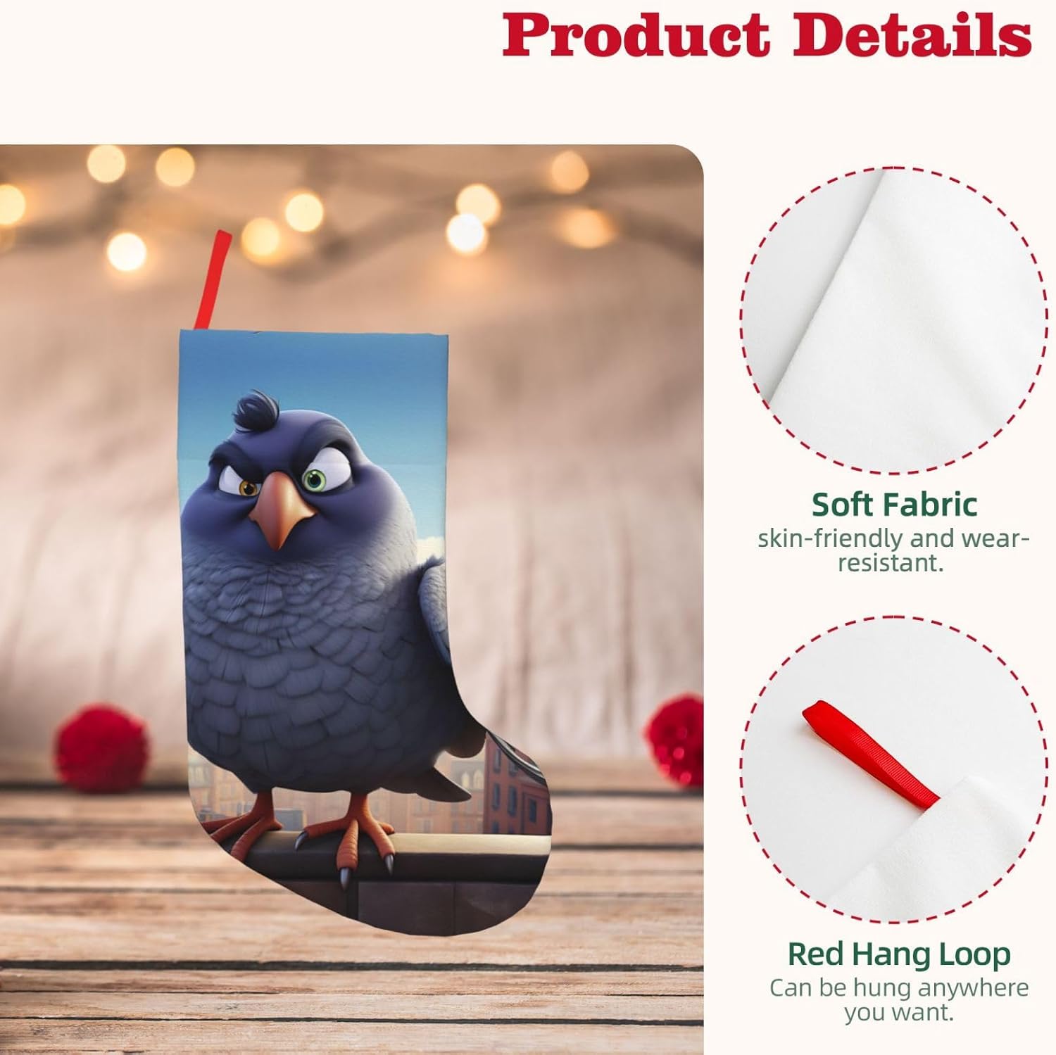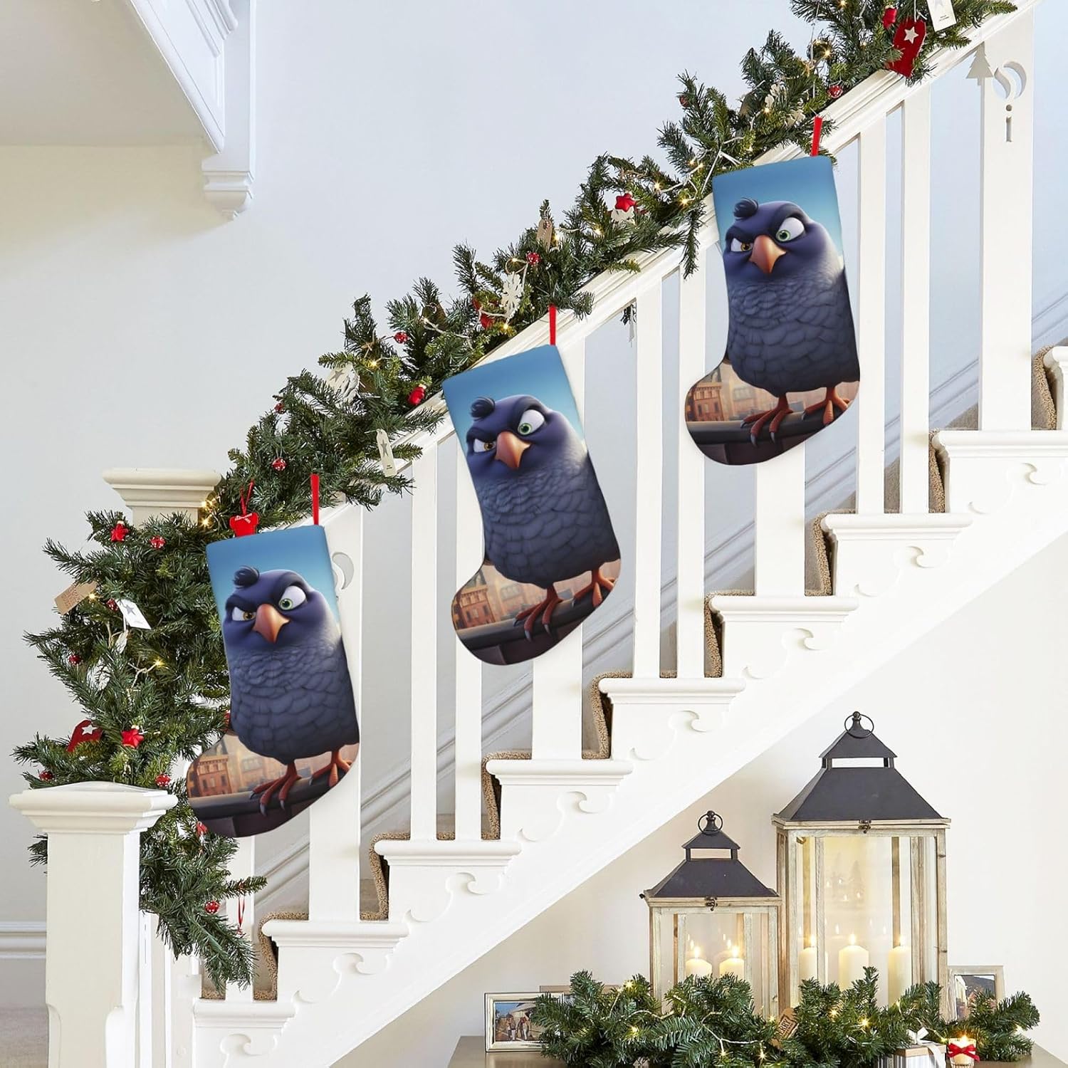 KoNsev Calza di Natale da 45,7 cm per ragazzi e ragazze, grandi calze di Natale per vacanze in famiglia, feste di Natale, stampa con piccioni