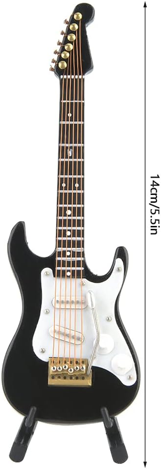 Decorazione per chitarra compatta: delicato modello di mini chitarra elettrica in legno da 14 cm con supporto, perfetto per tavoli e scaffali. È una buona opera d'arte Durevole ed elegante: realizzato in legno di tiglio di alta qualità con superficie liscia e lucida. Combina valore artistico con la funzionalità della decorazione domestica/ufficio. Design leggero da 94 g DISPLAY VERSATILE: ideale per la decorazione di studi musicali, vetrine di collezionisti d'arte e stanze di musicisti. Dimensioni portatili di 14 cm/5,5 pollici, adatto per librerie/espositori da scrivania Regalo perfetto: viene fornito in una squisita confezione regalo pronta per compleanni/anniversari. Popolare per gli amanti della chitarra e l'arte Pacchetto completo: include 1 modello di chitarra adatto al supporto espositore. Squisita fattura, aspetto realistico, dotato di una delicata confezione regalo