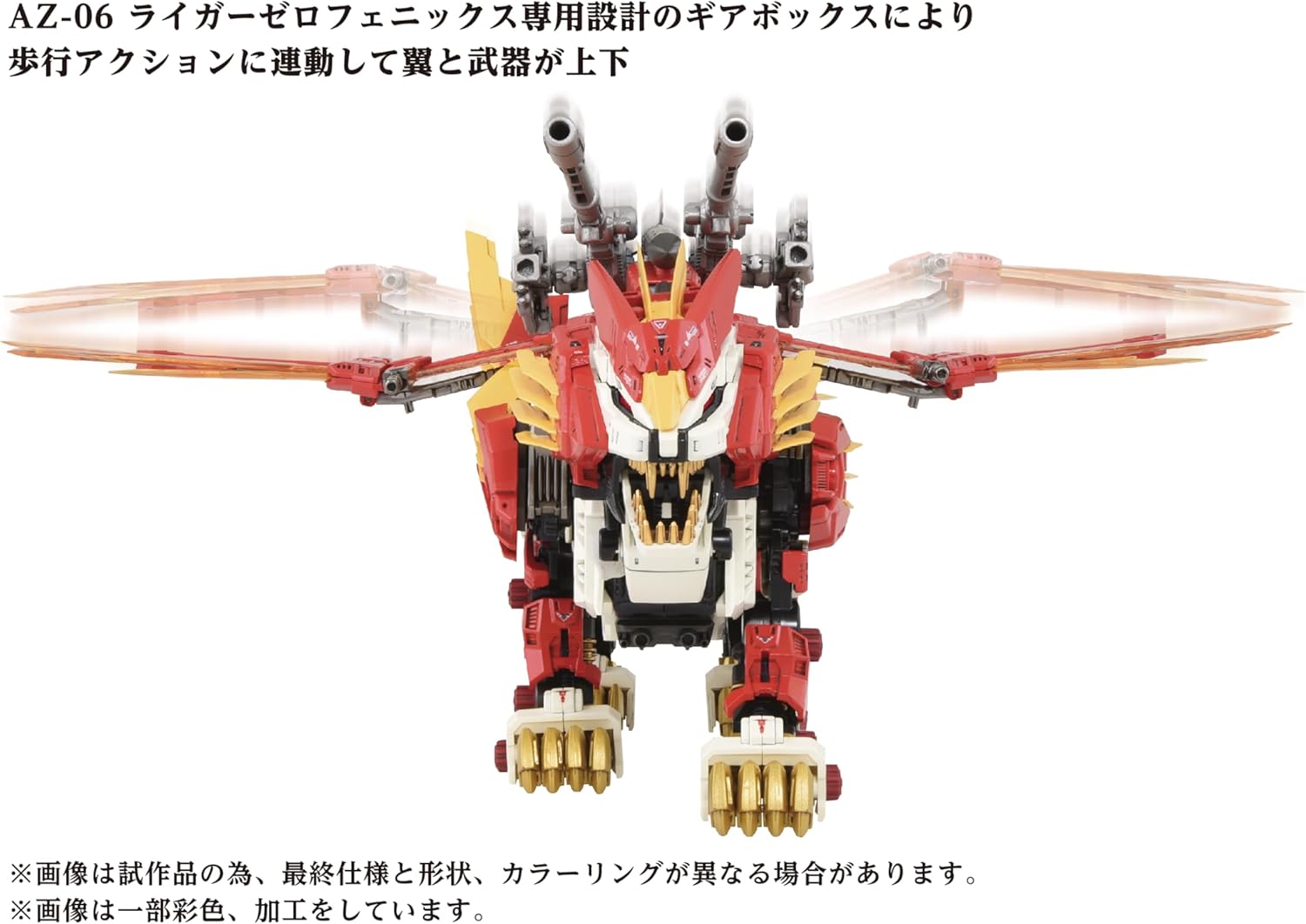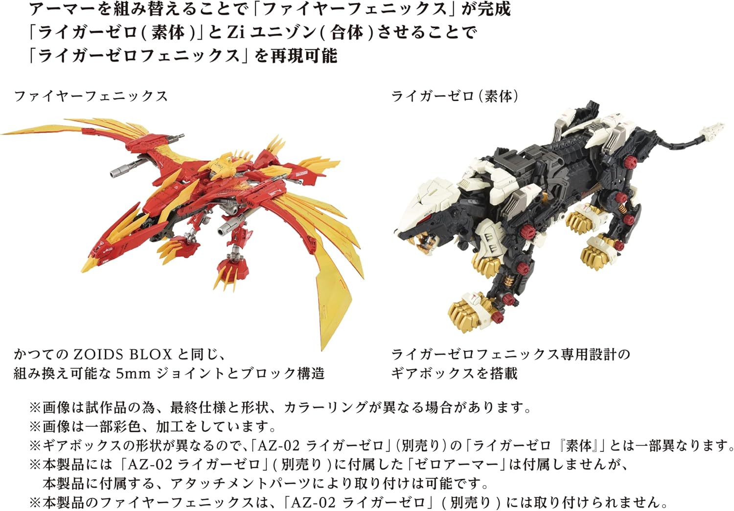 Un modulo di importazione Takara Tomy Combina il corpo base Liger Zero con Fire Phoenix Con movimento realistico Include una figura in scala 1:72 di RD Richiede 2 batterie LR03 (AAA), non incluse