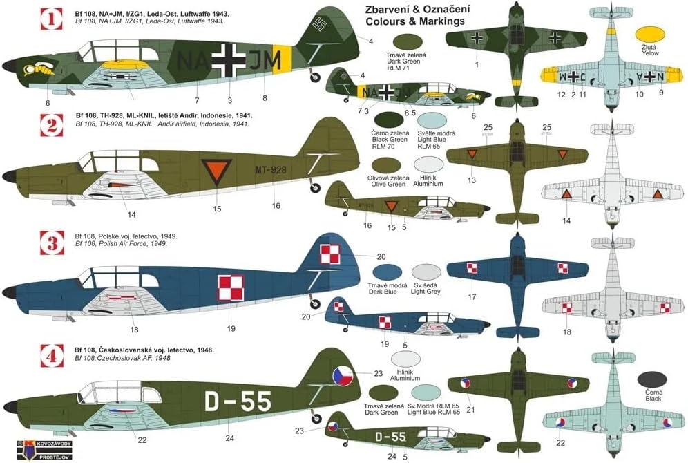 Kit aereo Messerschmitt Bf 108 "Taifun" in scala 1/72 - Modello KOVOZAVODY PROSTEJOV.Il Messerschmitt Bf 108 un aereo monomotore leggero da turismo e collegamento sviluppato dalla casa tedesca Bayerische Flugzeugwerke, meglio nota come Messerschmitt. Progettato negli anni '30, il Bf 108 divenne un velivolo versatile e innovativo per l'epoca, utilizzato sia in ambito civile che militare.Caratteristiche principaliRuolo: Aereo da turismo, trasporto leggero e collegamento.Equipaggio: 1-2 persone (pilota e passeggero) con possibilit di trasportare fino a 4 occupanti.Motore:Motore a pistoni Argus As 10C, un V8 raffreddato ad aria da circa 240 CV.Velocit massima: Circa 305 km/h.Autonomia: Fino a 1.000 km.Struttura: Monoplano ad ala bassa con carrello retrattile.Sviluppo e utilizzoIl Bf 108 fu progettato inizialmente come aereo sportivo per competizioni e turismo avanzato. Fece il suo debutto nel 1934 durante la Challenge International de Tourisme, una competizione aerea internazionale, dove si distinse per la sua velocit e design moderno.Successivamente, il velivolo venne adattato anche per usi militari, in particolare come:Aereo da collegamento per ufficiali e personale durante la Seconda Guerra Mondiale.Addestratore per piloti.Caratteristiche distintiveInnovazioni tecnologiche: Per l'epoca, il Bf 108 era estremamente avanzato, con caratteristiche come il carrello retrattile e una fusoliera aerodinamica in metallo.Prestazioni: Elevata velocit e manovrabilit lo rendevano adatto per lunghe distanze e atterraggi in spazi ridotti.Affidabilit: Fu apprezzato per la sua robustezza e semplicit di manutenzione.VariantiBf 108 A: La versione iniziale, prodotta in pochi esemplari e utilizzata per competizioni aeree.Bf 108 B: La versione principale, con miglioramenti aerodinamici e un motore pi potente.Nord 1000 Pingouin: Una versione prodotta su licenza in Francia dopo la guerra.Impiego storicoIl Bf 108 fu utilizzato dalla Luftwaffe come aereo di collegamento durante la Seconda Gue