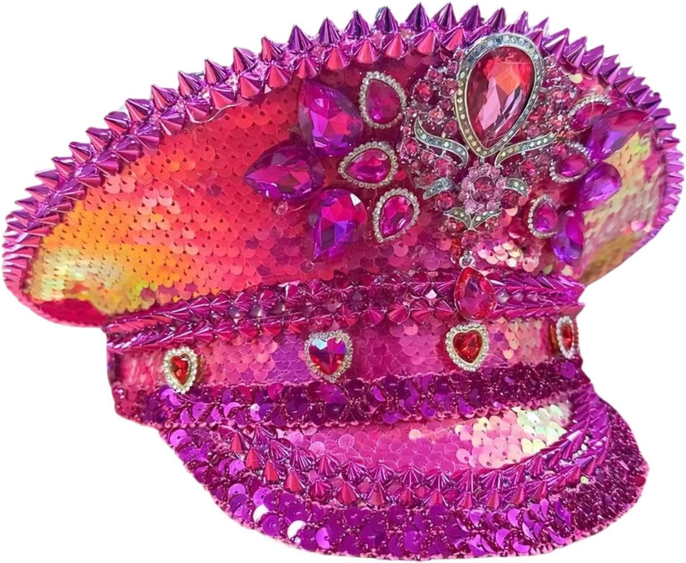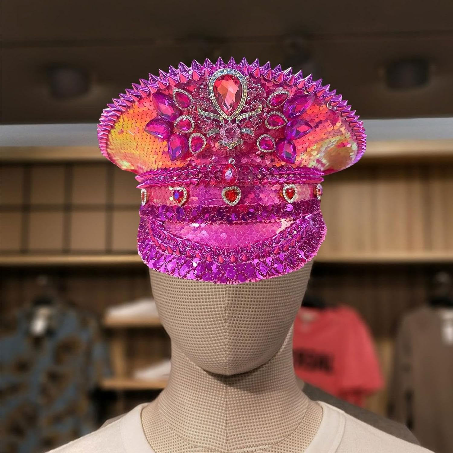 【Vestibilità comoda】: Il cappello da discoteca è progettato per adattarsi a circonferenze della testa di 56 cm-58 cm/22,05 pollici-22,83 pollici, offrendo una vestibilità aderente ma comoda per la maggior parte degli adulti 【Design accattivante】】: Decorato con strass e borchie, questo cappello da festa con paillettes presenta una parte superiore piatta che lo rende un accessorio straordinario La confezione include: ogni confezione include 1 cappello in costume nella confezione. Anche una scelta regalo per famiglie e amici in occasione di compleanni, vacanze, festival, ecc.
