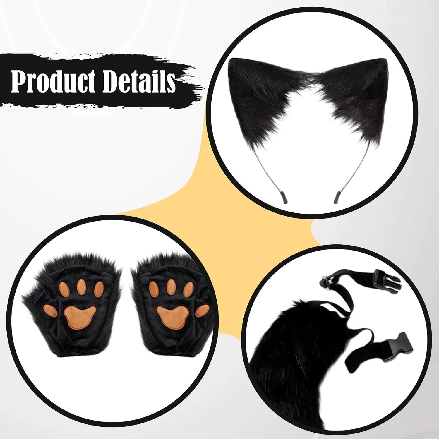 【Materiale di alta qualità】Il set di orecchie e coda di è realizzato in peluche di alta qualità, affidabile, leggero e comodo al tatto 【Facile da indossare】Questo set di copricapi con orecchie di animali è facile da indossare e da togliere, permettendoti di vestirti rapidamente. La coda ha una cintura regolabile, adatta a persone diverse 【Set Cosplay Animale】: Grazioso set di costumi con orecchie e coda di animali, include 1 fascia per le orecchie, 1 coda e 1 paio di guanti con zampe, ottimo per il cosplay di un gatto o di una 【Ampie occasioni】Il set cosplay di orecchie e coda è ampiamente adatto per Halloween, feste, carnevali, spettacoli teatrali, oggetti di scena per foto, spettacoli, feste a tema, travestimenti, giochi di ruolo, ecc. 【Ottimo regalo】Questo grazioso e accattivante set di orecchie e coda di gatto è una meravigliosa scelta regalo per amici e familiari in occasione di compleanni, feste, festività, riunioni, ecc.